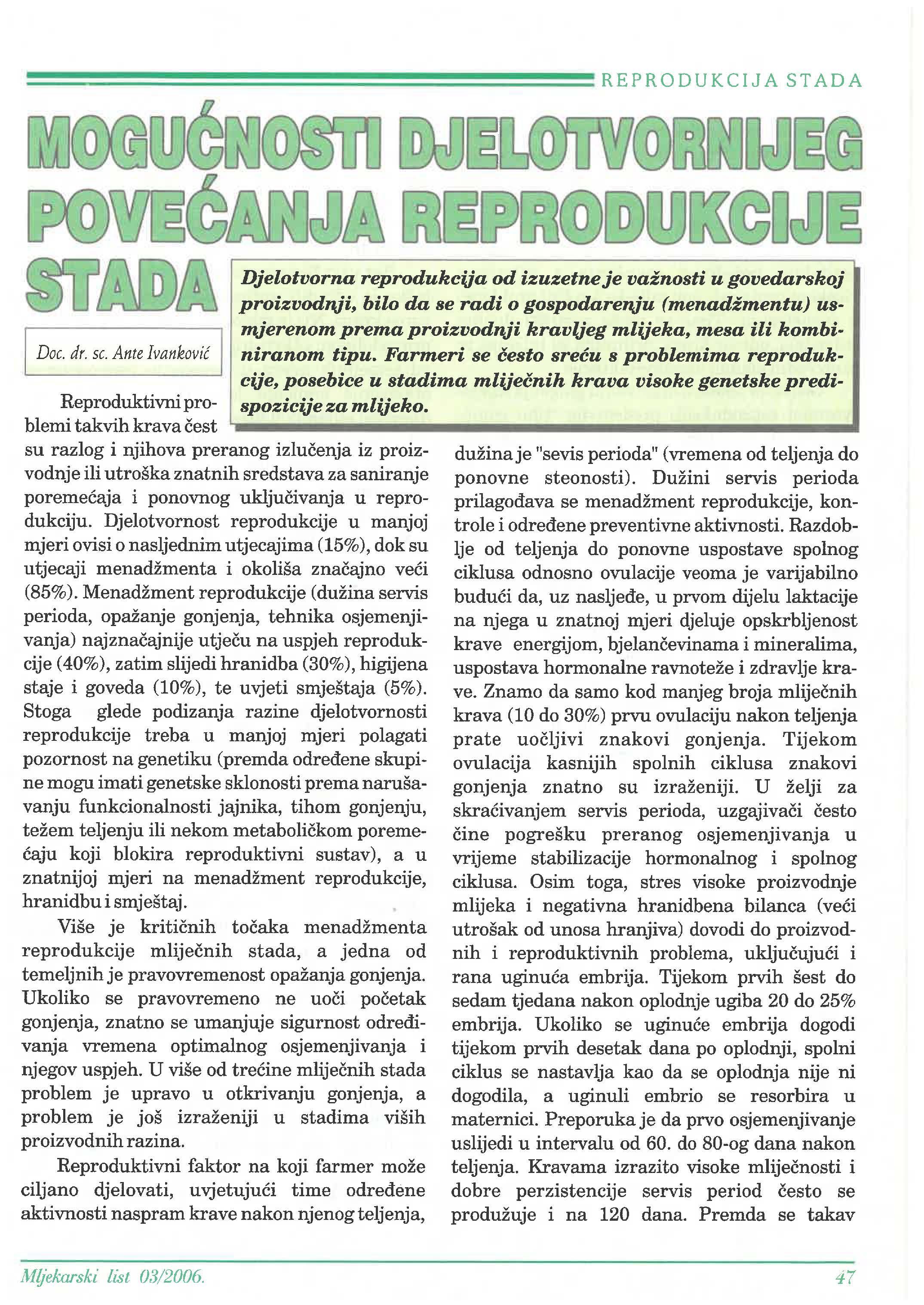 REPRODUKCIJA STADA djelotvornijeg reprodukcije stada _____________________ .47