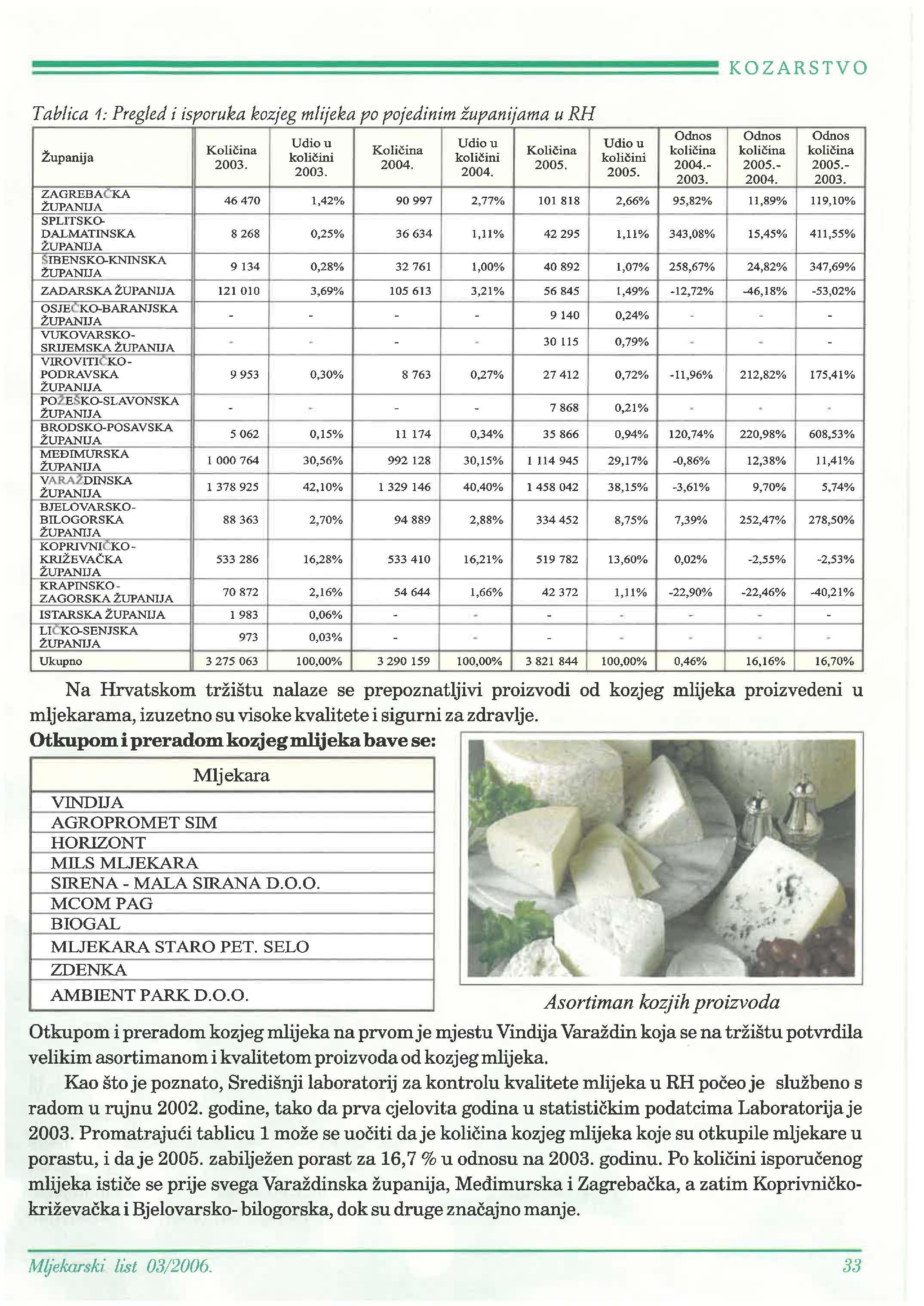 Kao rezultat toga iznijeti su podatci o proizvodnji mlijeka u 2004. godini: