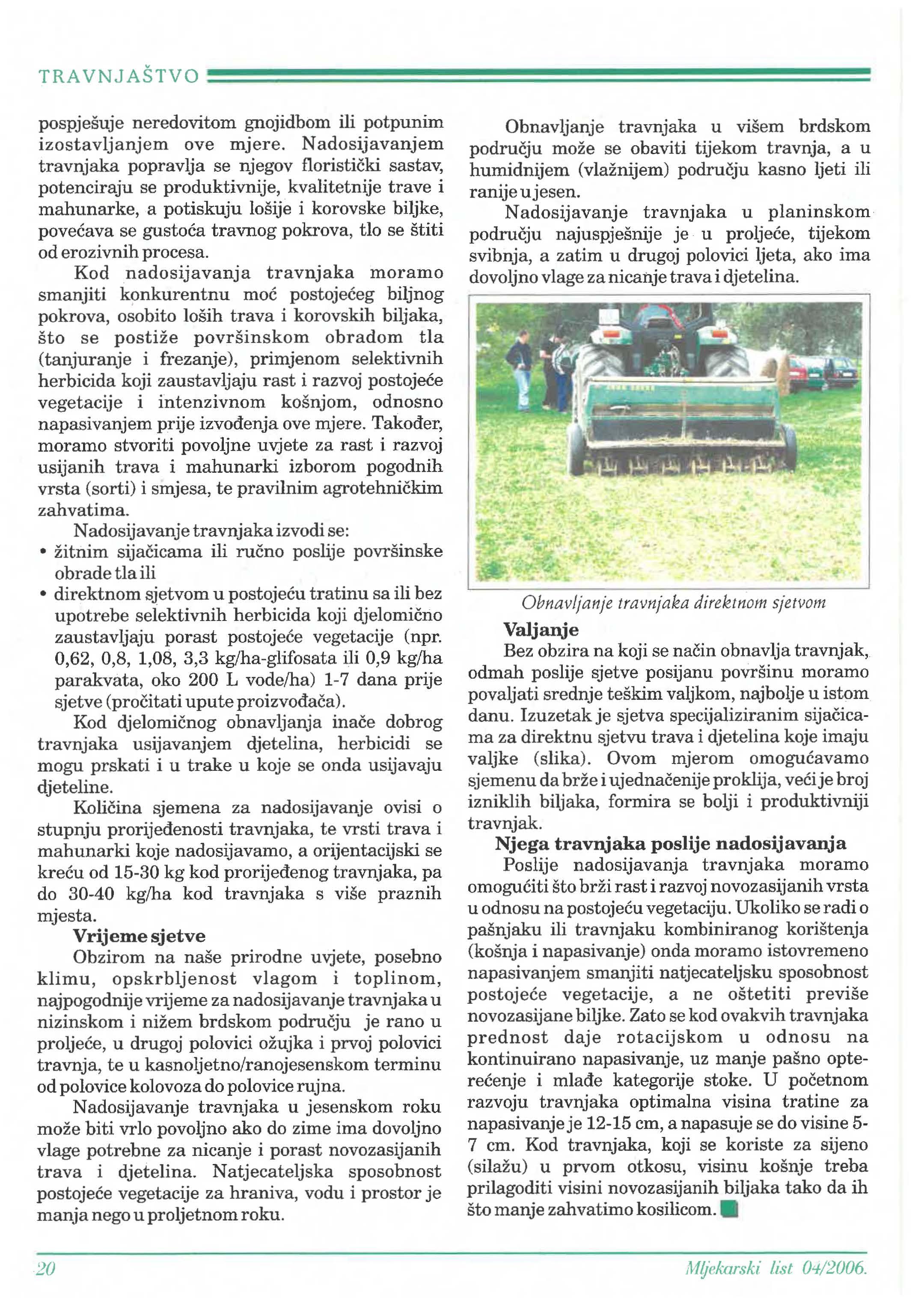 Obnavljanje (nadosijavanje) travnjaka (livada i pašnjaka) ________________________ I 9