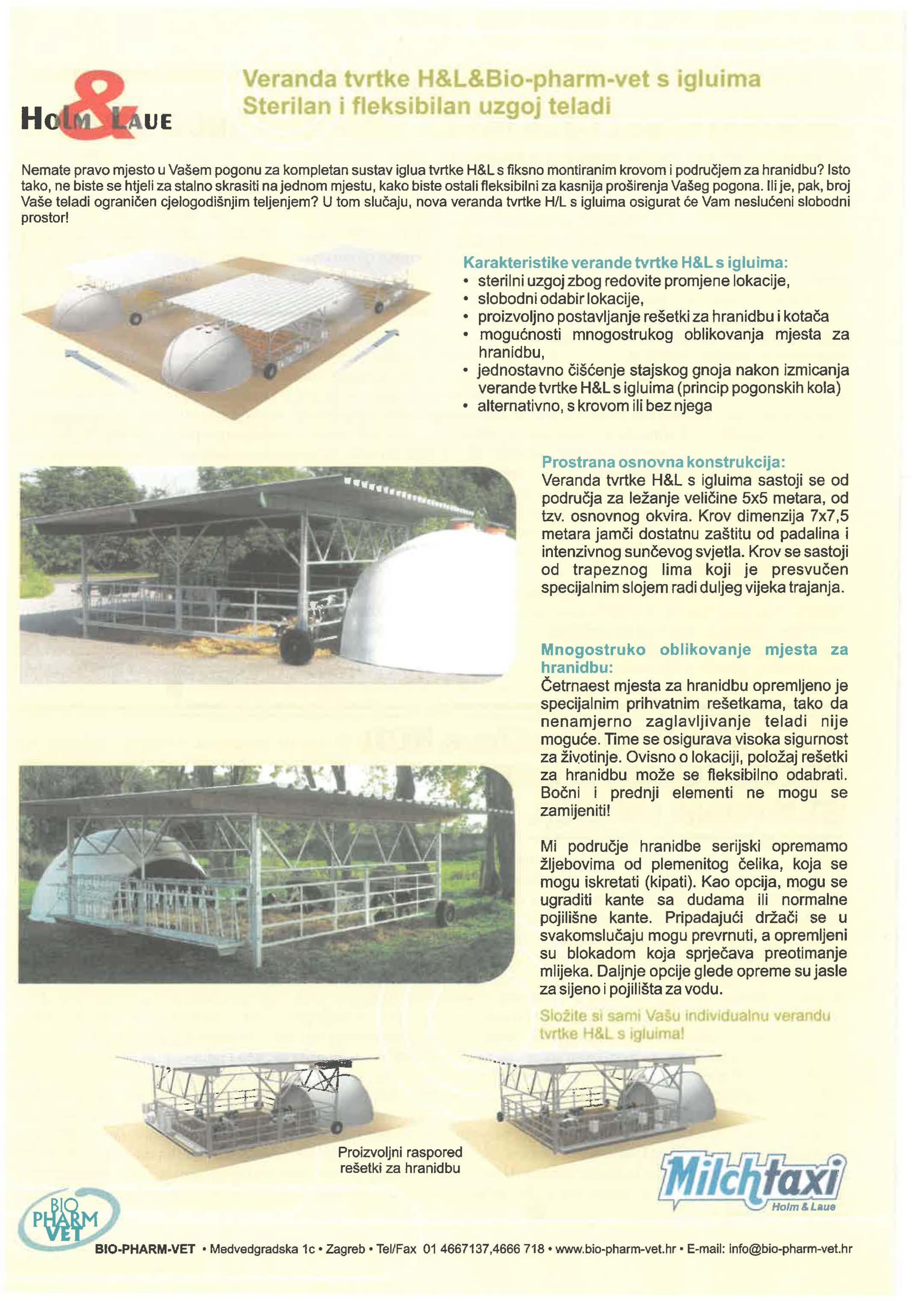 Nemate pravo mjesto u Vašem pogonu za kompletan sustav iglua tvrtke H&L s fiksno montiranim krovom i za hranidbu? Isto tako, ne biste se htjeli za stalno skrasiti na jednom mjestu, kako biste ostali fleksibilni za kasnija proširenja Vašeg pogona. Ili je, pak, broj Vaše teladi cjelogodišnjim teljenjem? U tom nova veranda tvrtke H/L s igluima osigurat Vam slobodni prostor!