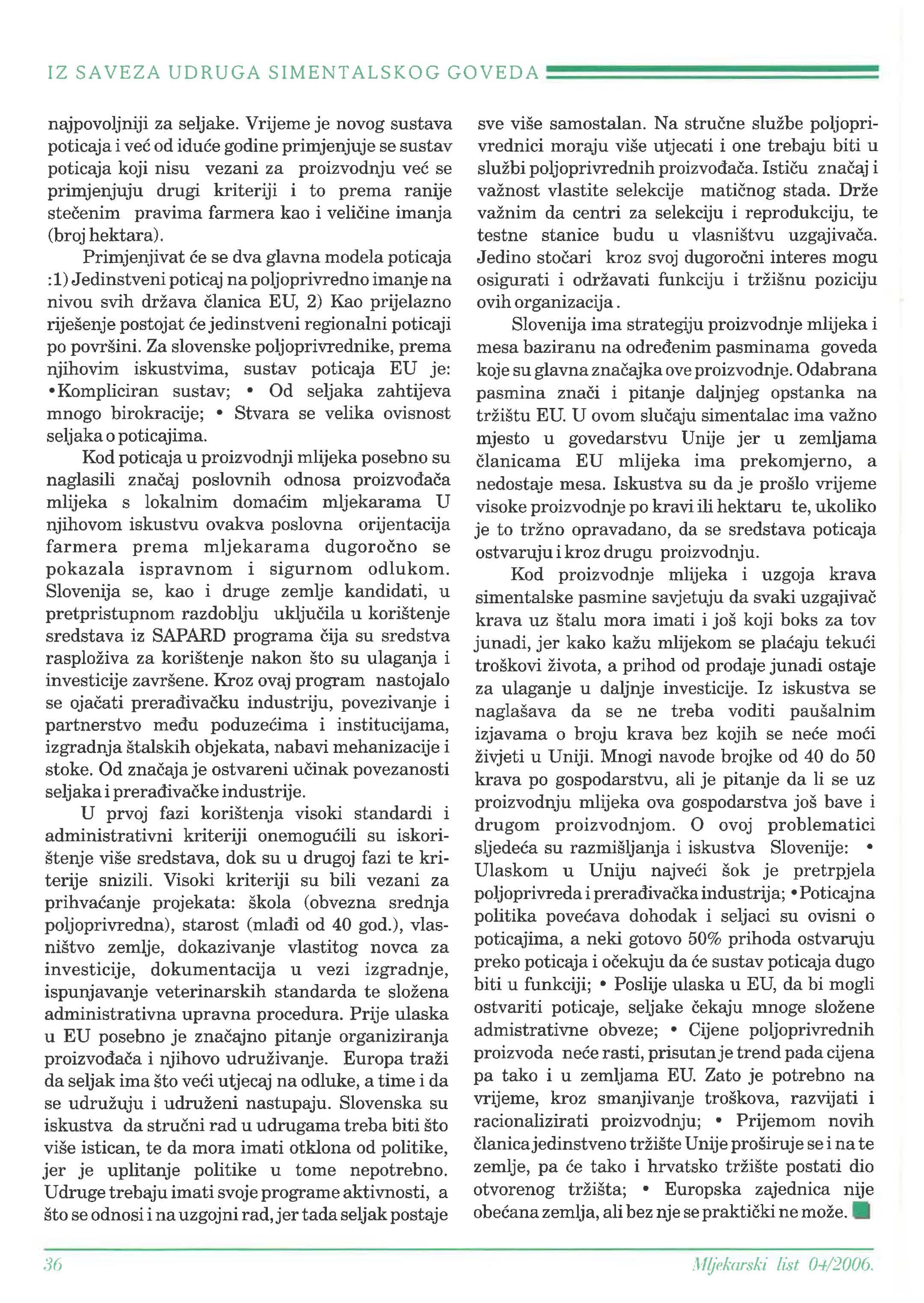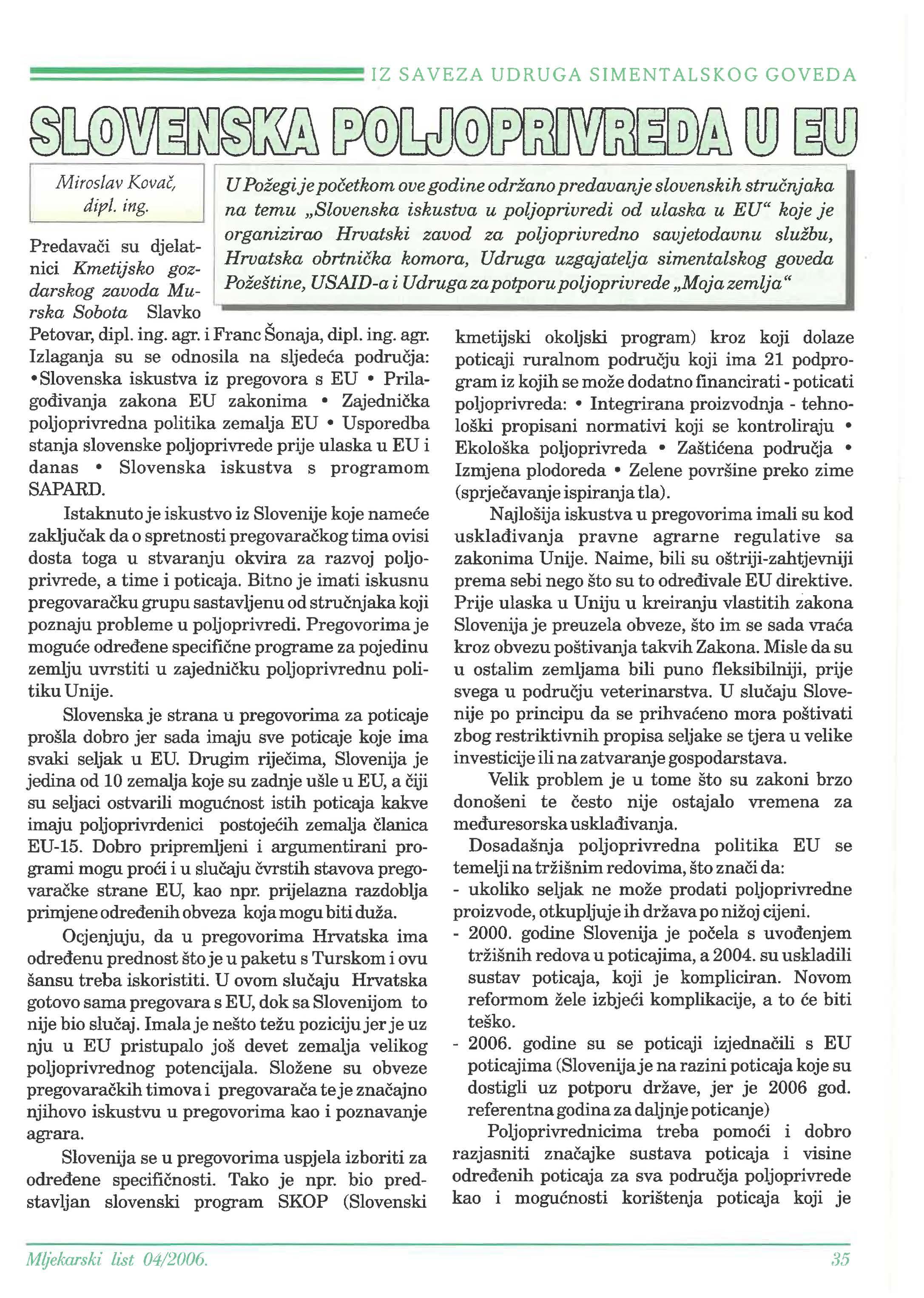 IZ SAVEZA UDRUGA SIMENT ALSKOG GOVEDA Slovenska poljoprivreda u EU ________________ 35