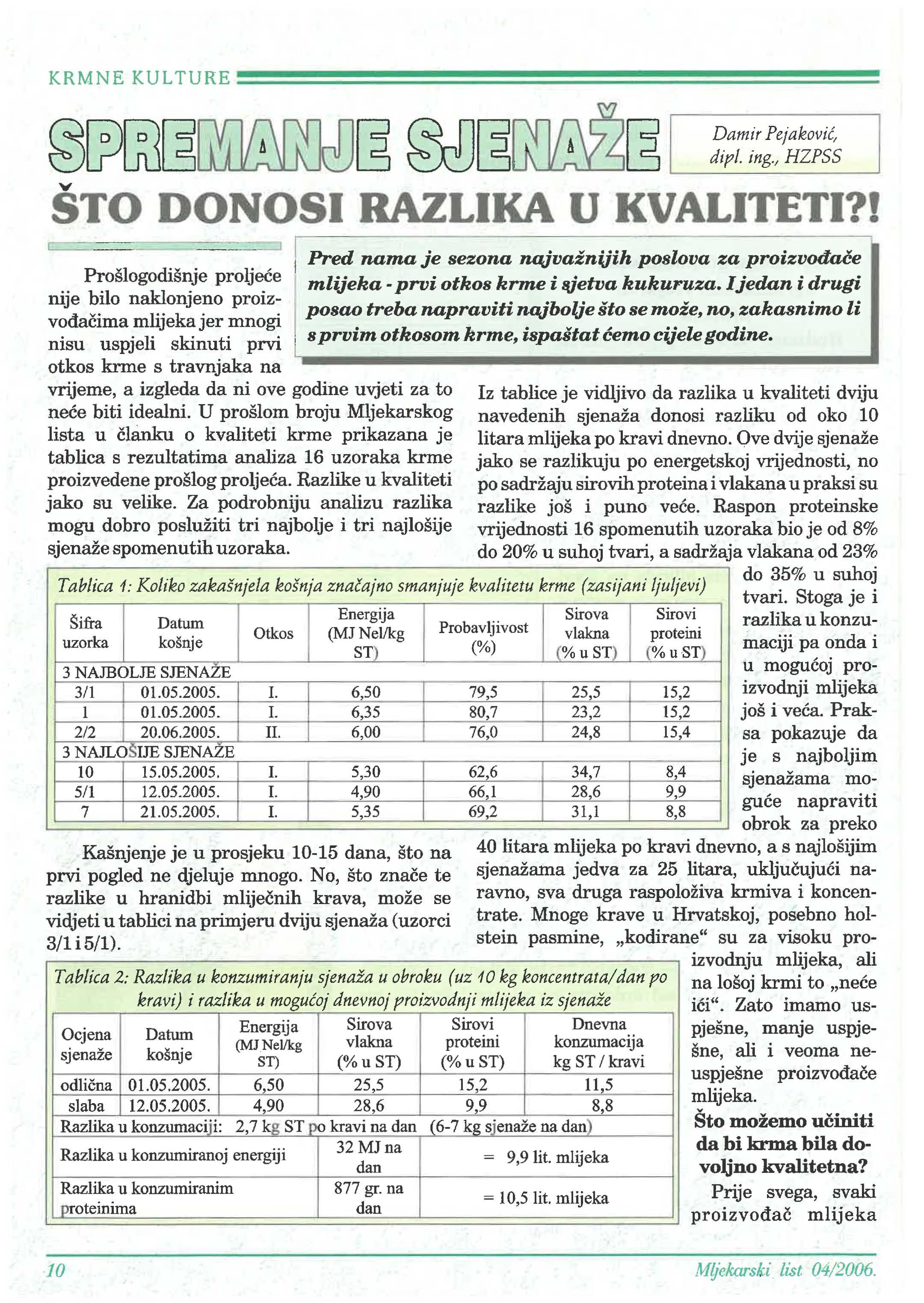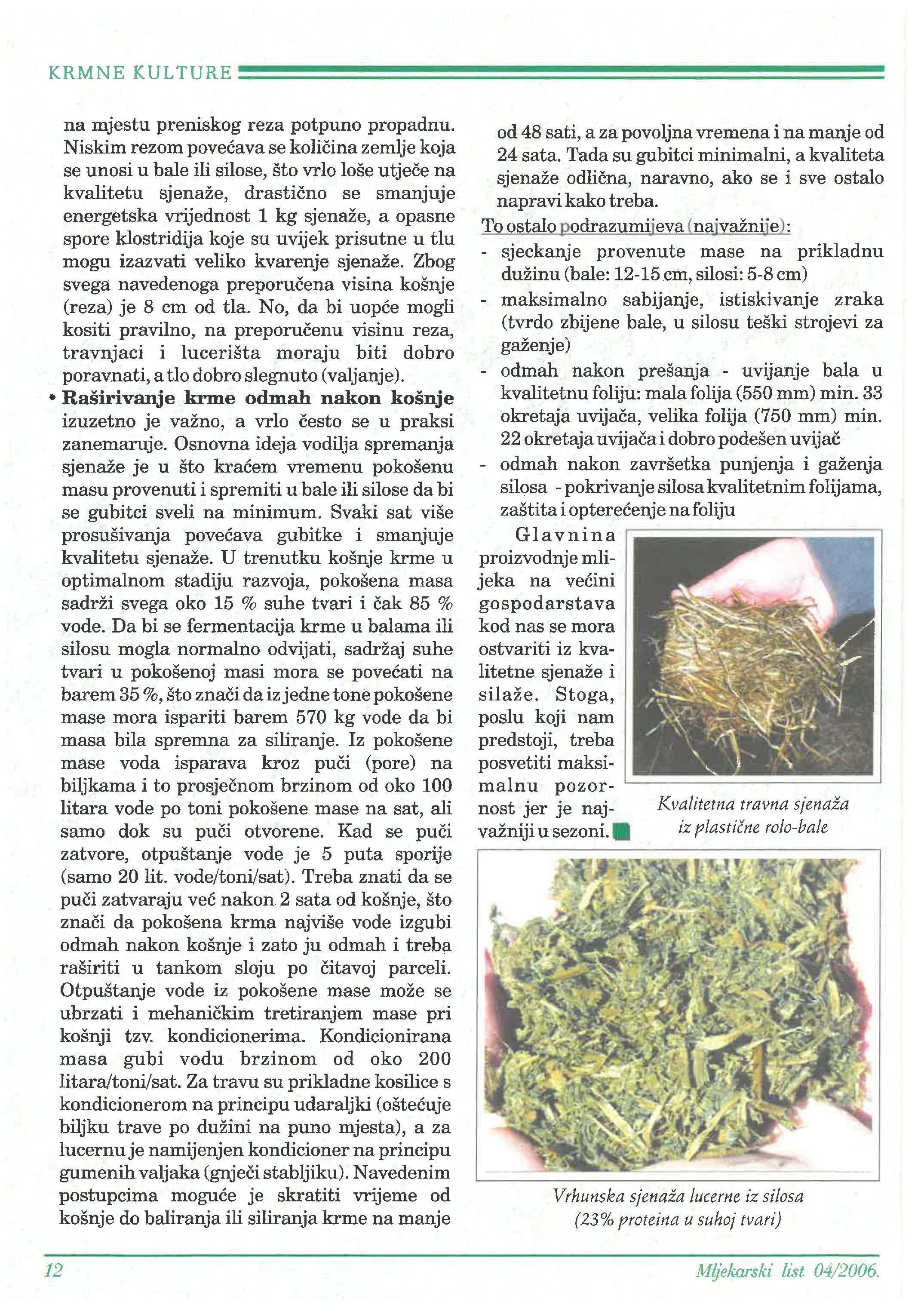 hrpe, no u nedovoljnoj tako da se nije mogla koristiti u obroku tijekom cijele godine kao energetska komponenta voluminoznog dijela obroka. U to vrijeme se u hranidbu uvoditi i sjenaža.