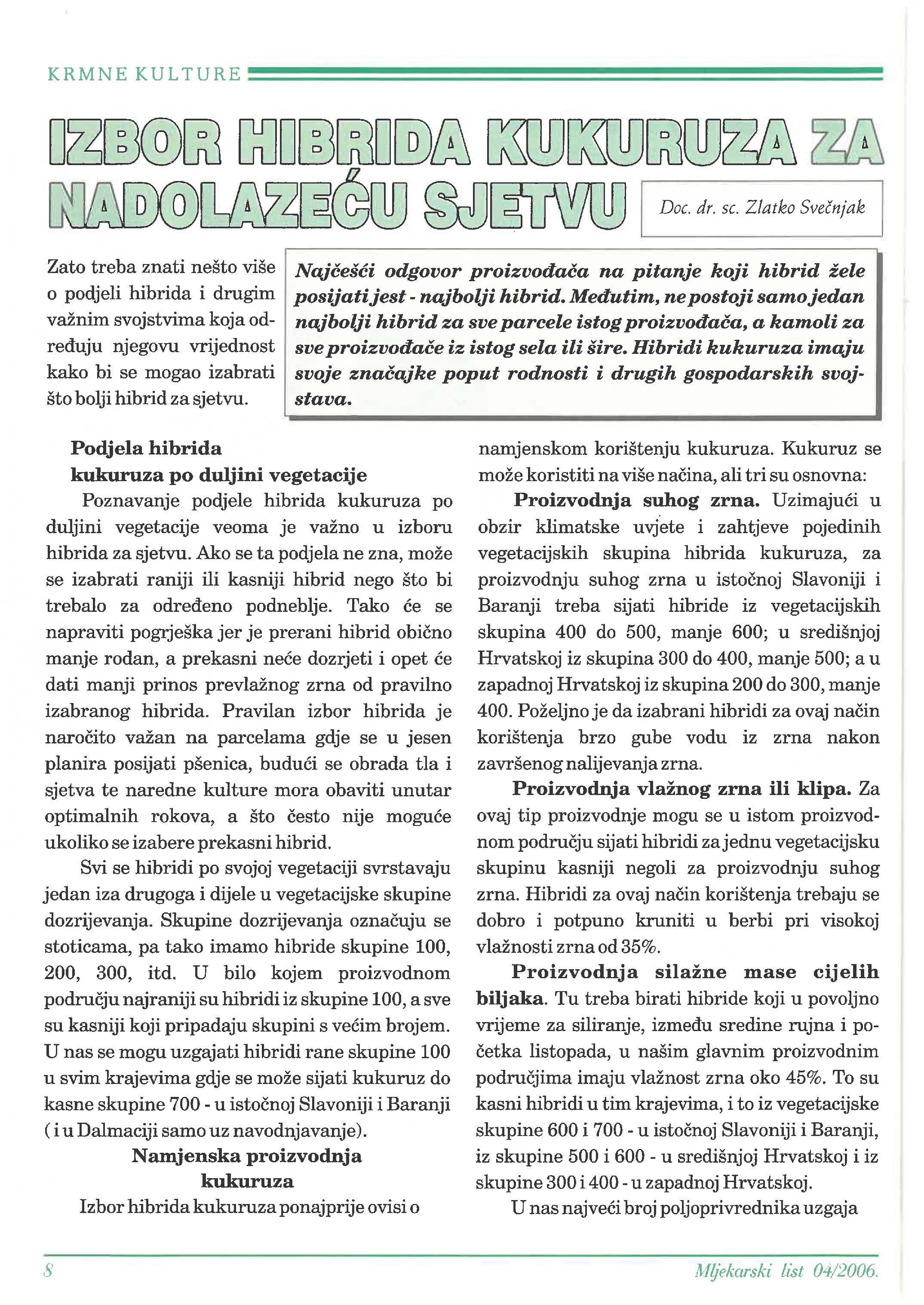 Izbor hibrida kukuruza za sjetvu _ _ _ _ _ _ 8