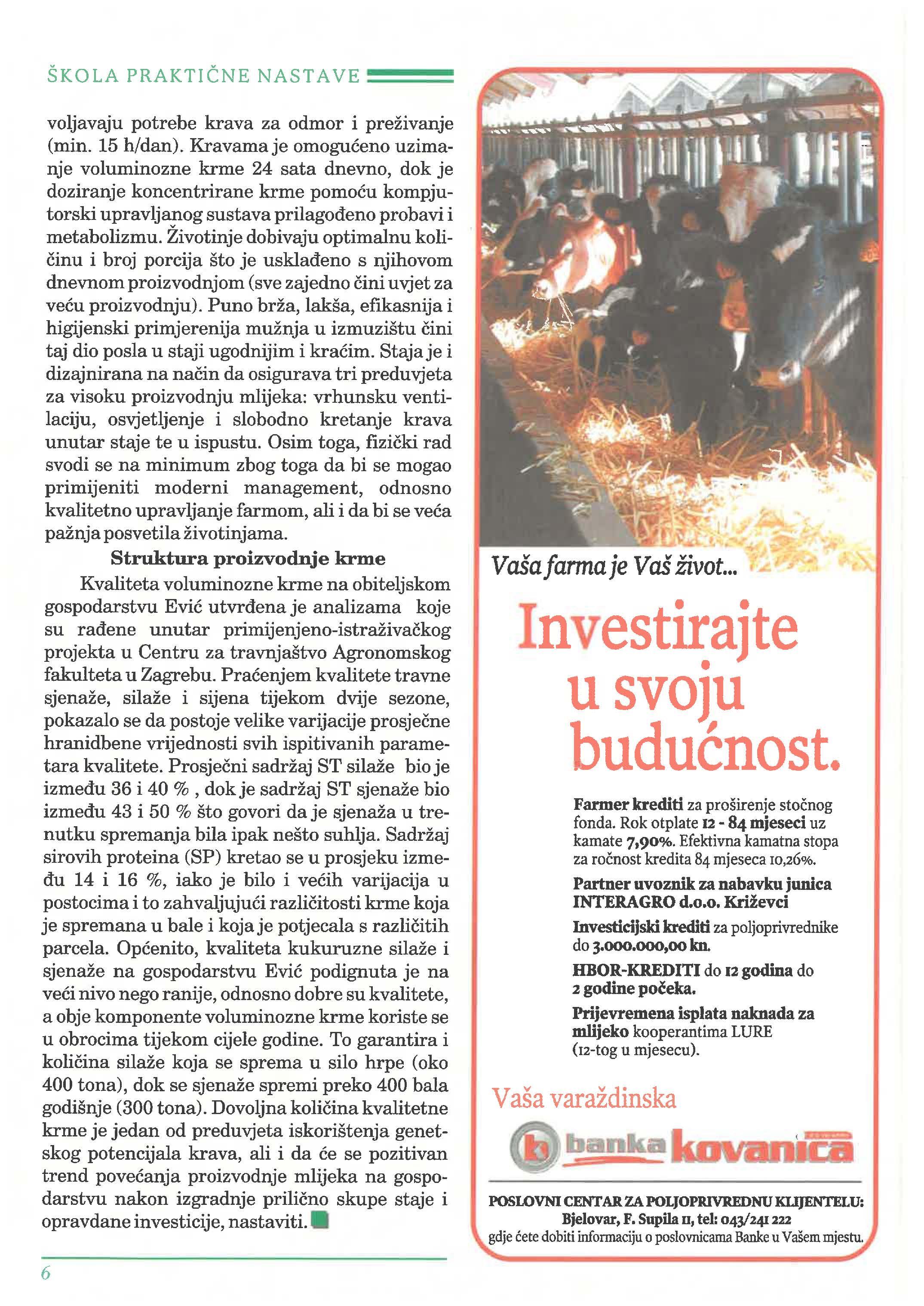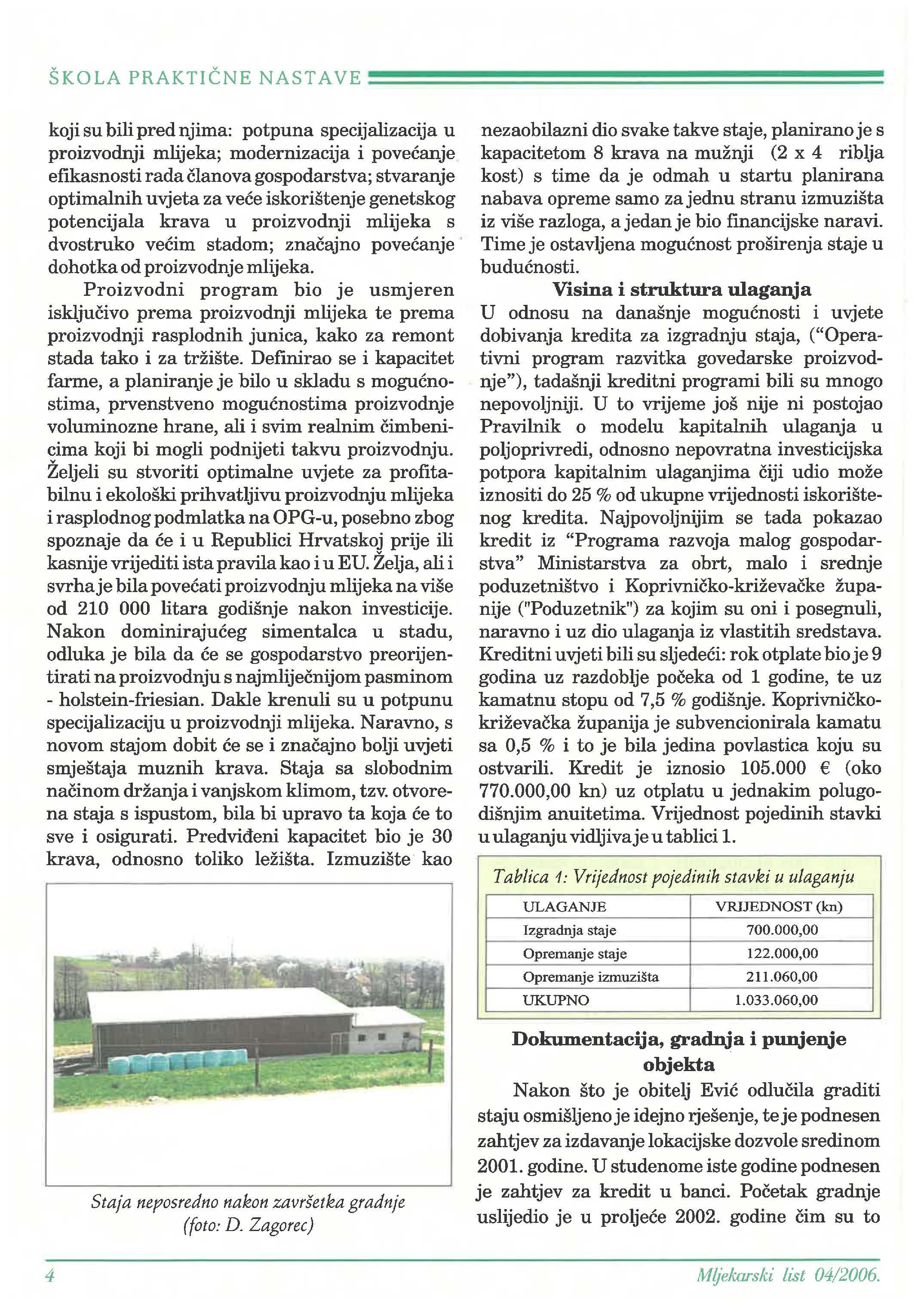 planiralo svoju u modernoj poljoprivrednoj proizvodnji. Kako kod još i danas prevladava tradicionalno gospodarenje u proizvodnji mlijeka, koje se prenosi iz generacije u generaciju, uz mnoštvo nerješenih problema od kojih je nedostatak zemlje te njena rascjepkanost, svakako odluka za bilo kakvu veliku investiciju nije bila nimalo laka.