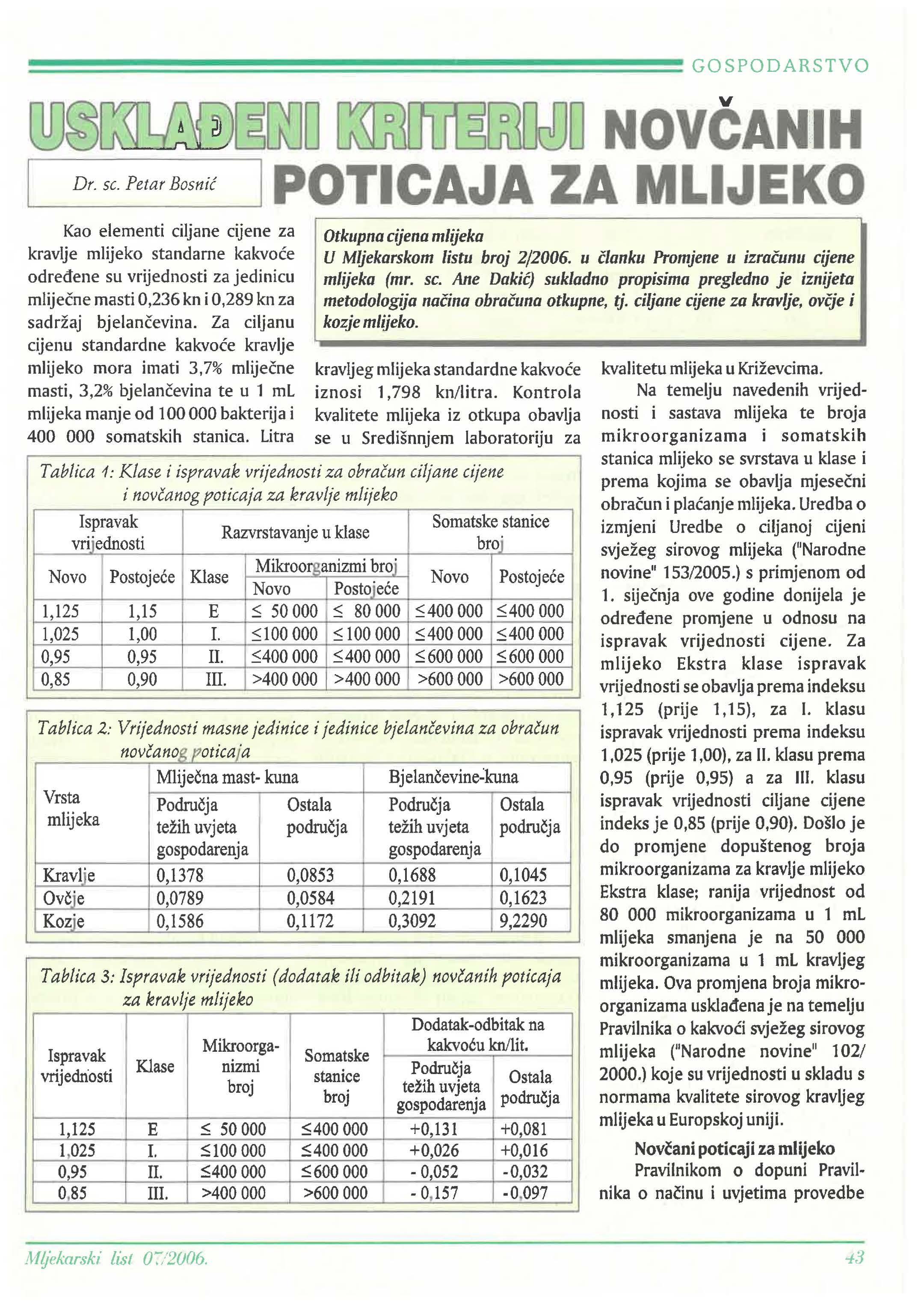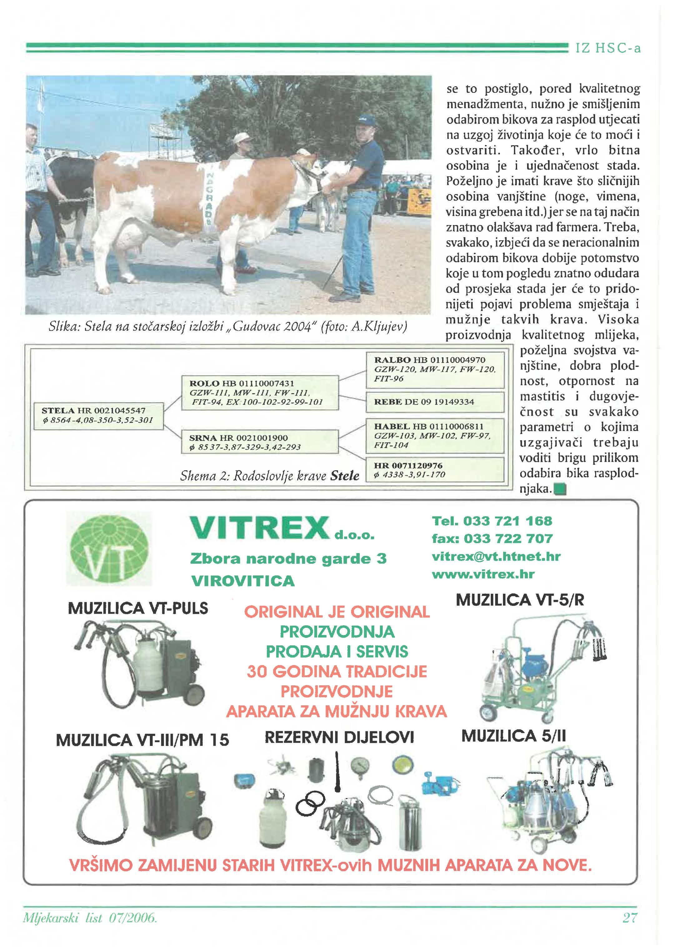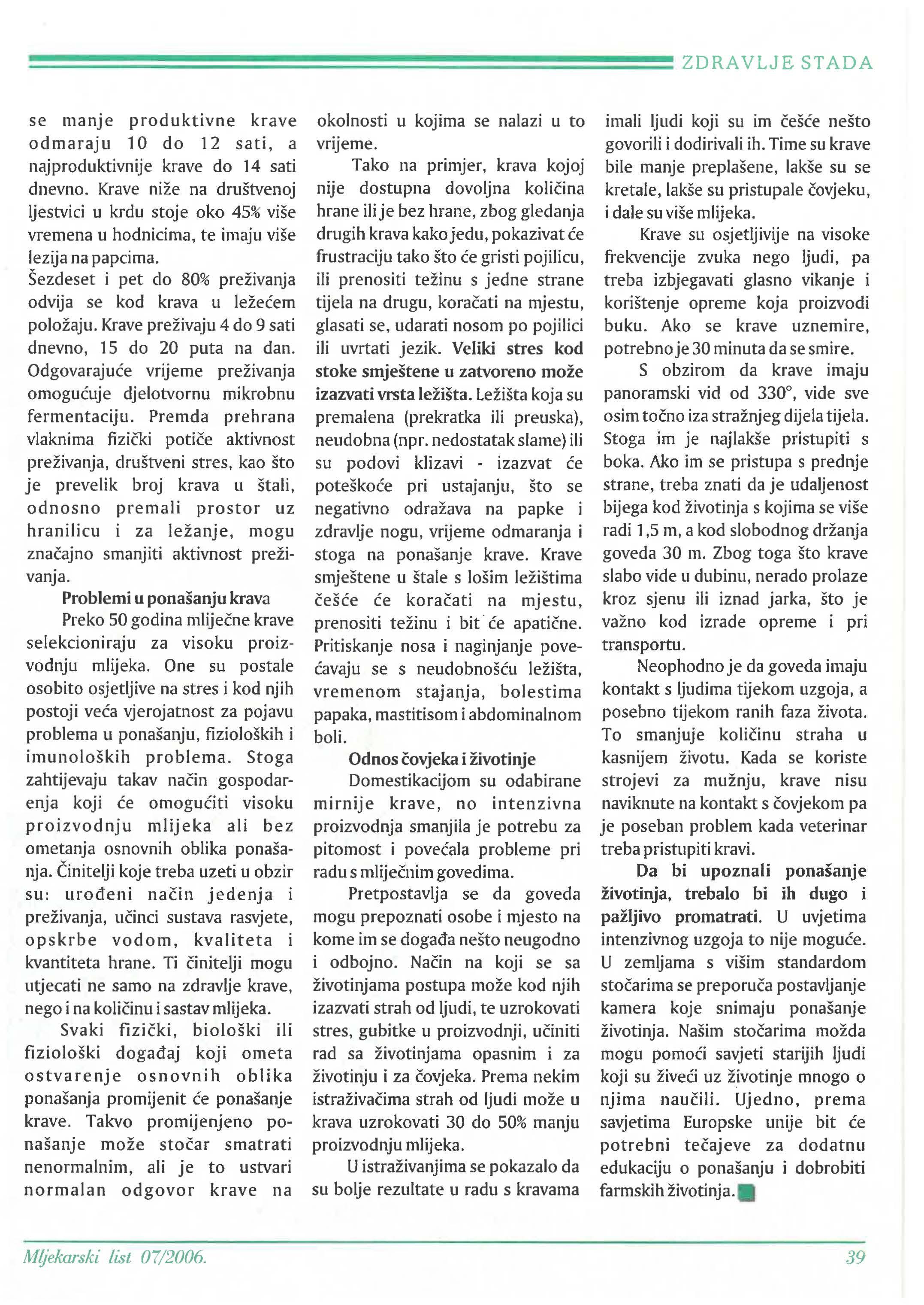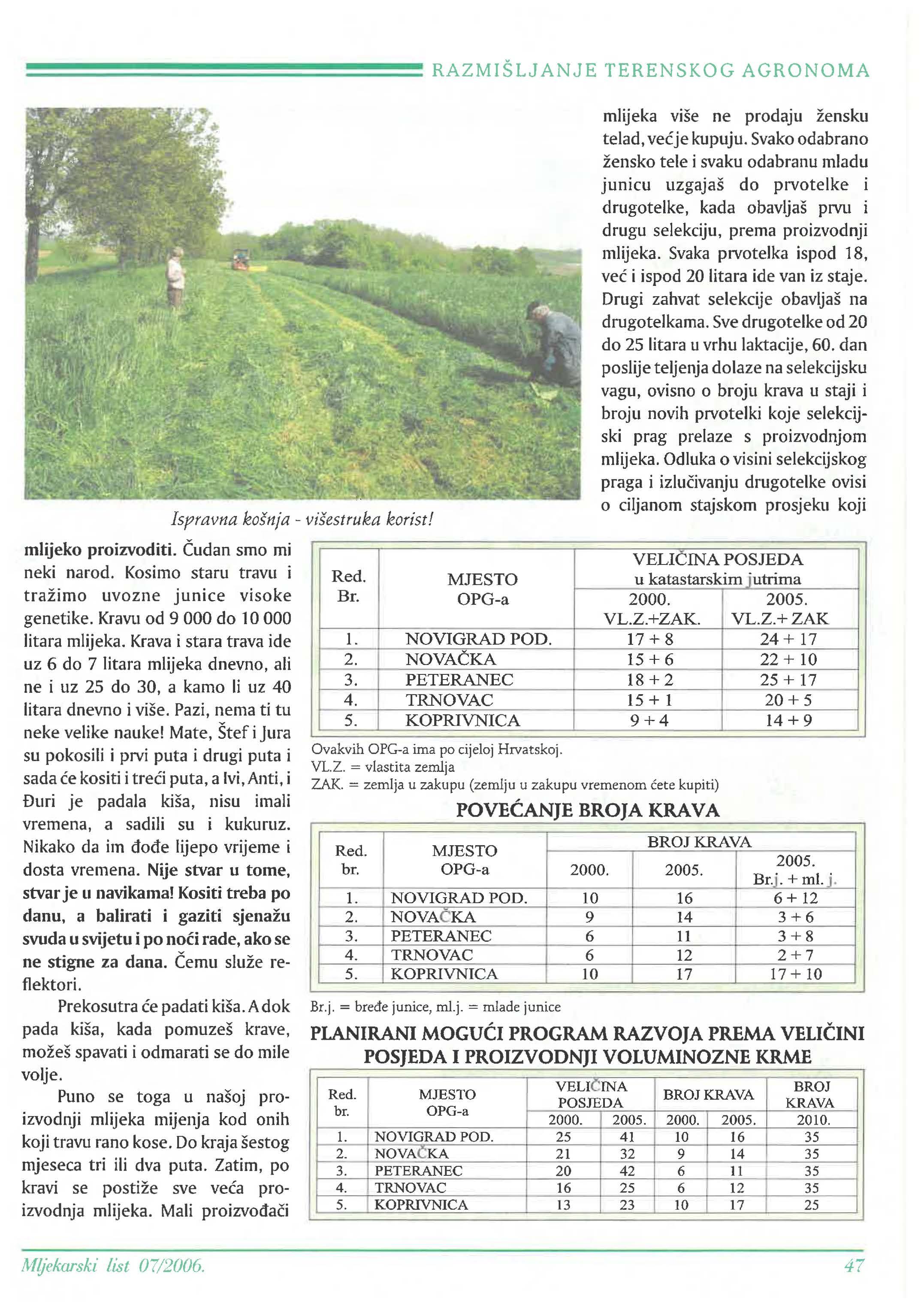 formacije i korisne savjete, ponajprije u segmentu mljekarske proizvodnje. U tu svrhu spremni smo prii dopunjavati koncepciju Lista, ovisno o prilikama i potrebama naših Poseban naglasak dat izgradnji novih i adaptaciji farmi, tehnologiji i upravljanju farmama, zdravlju stada, procesa i rezultata pregovora s Europskom unijom, tržištu stoke, te nezaobilaznoj kvaliteti mlijeka. Molimo vas da i vi aktivno svojim mišljenjima i prijedlozima sudjelujete u radu i pripremi Mljekarskog lista. UREDNIŠTVO