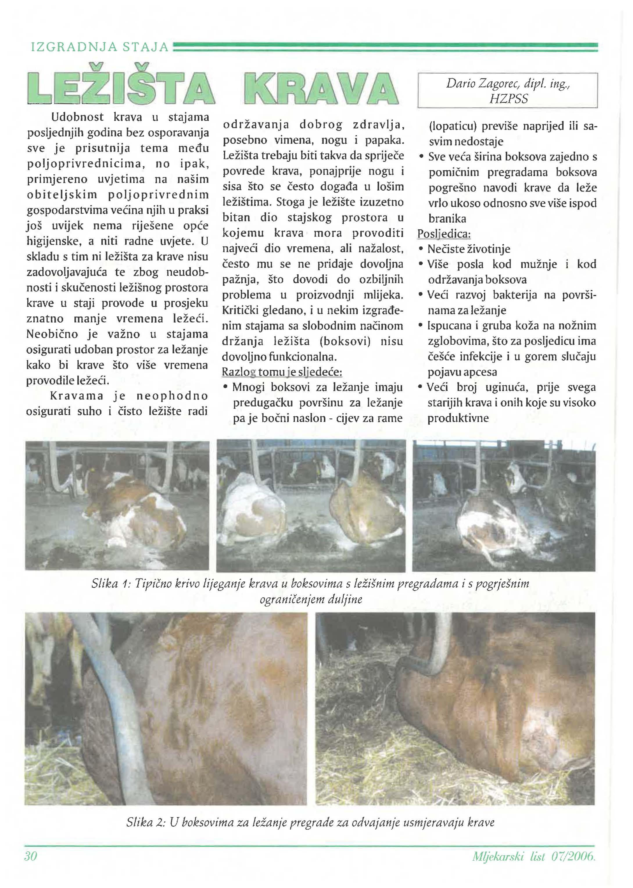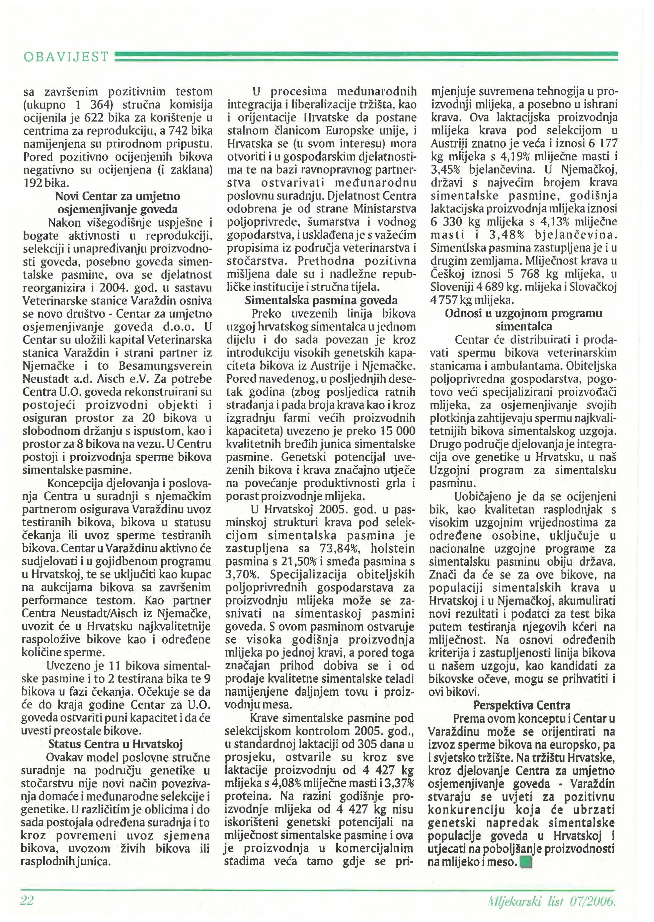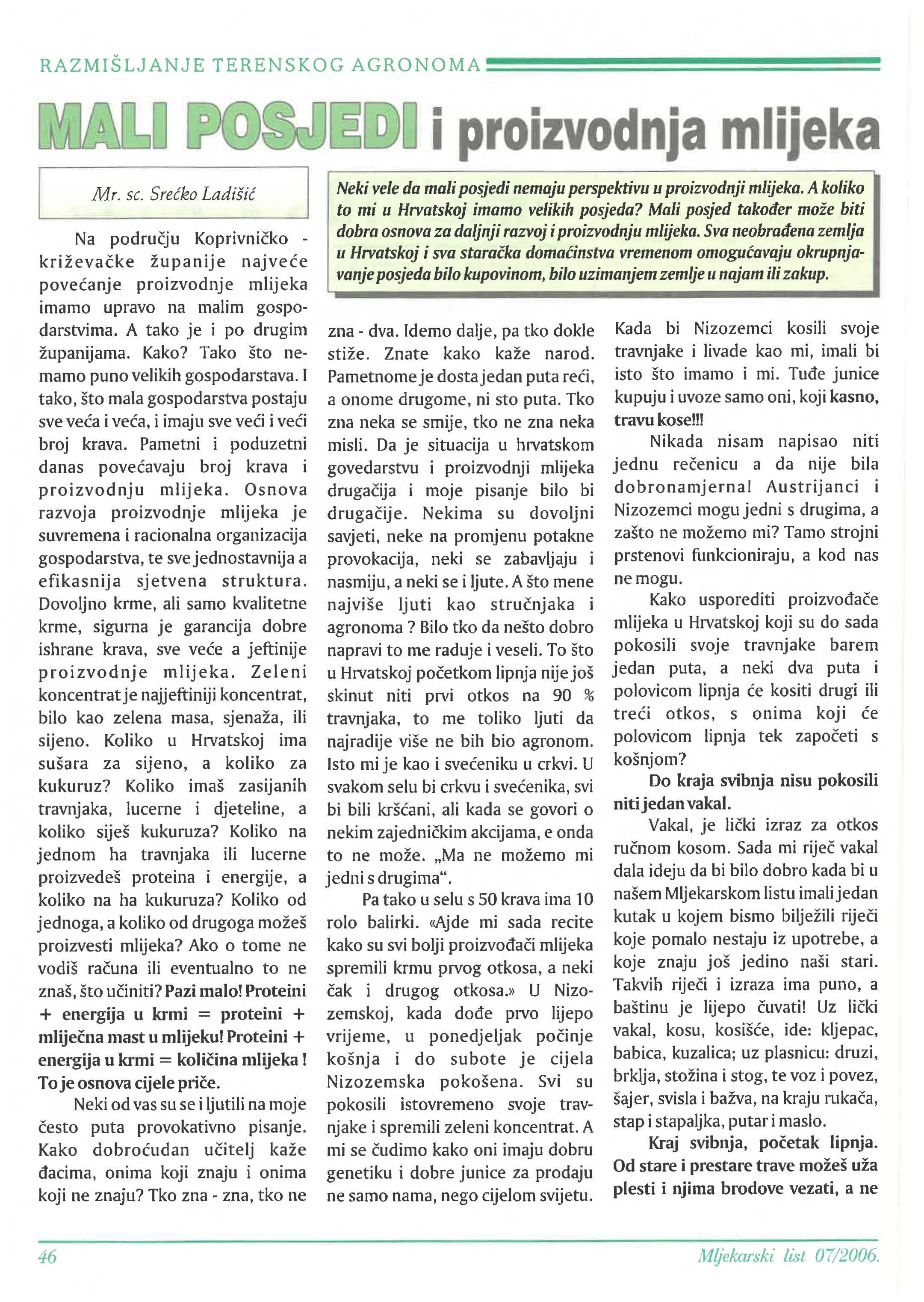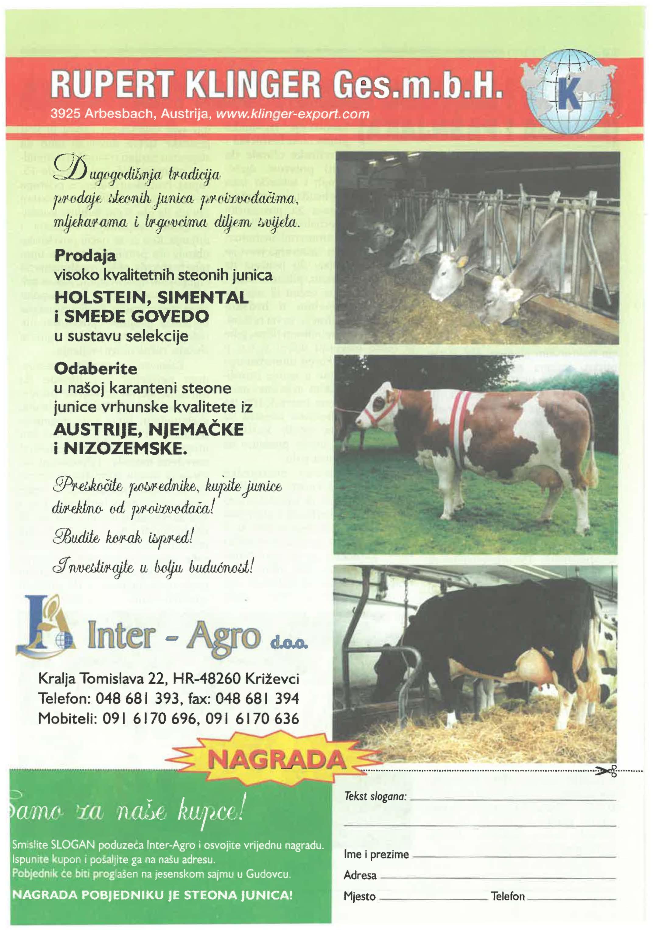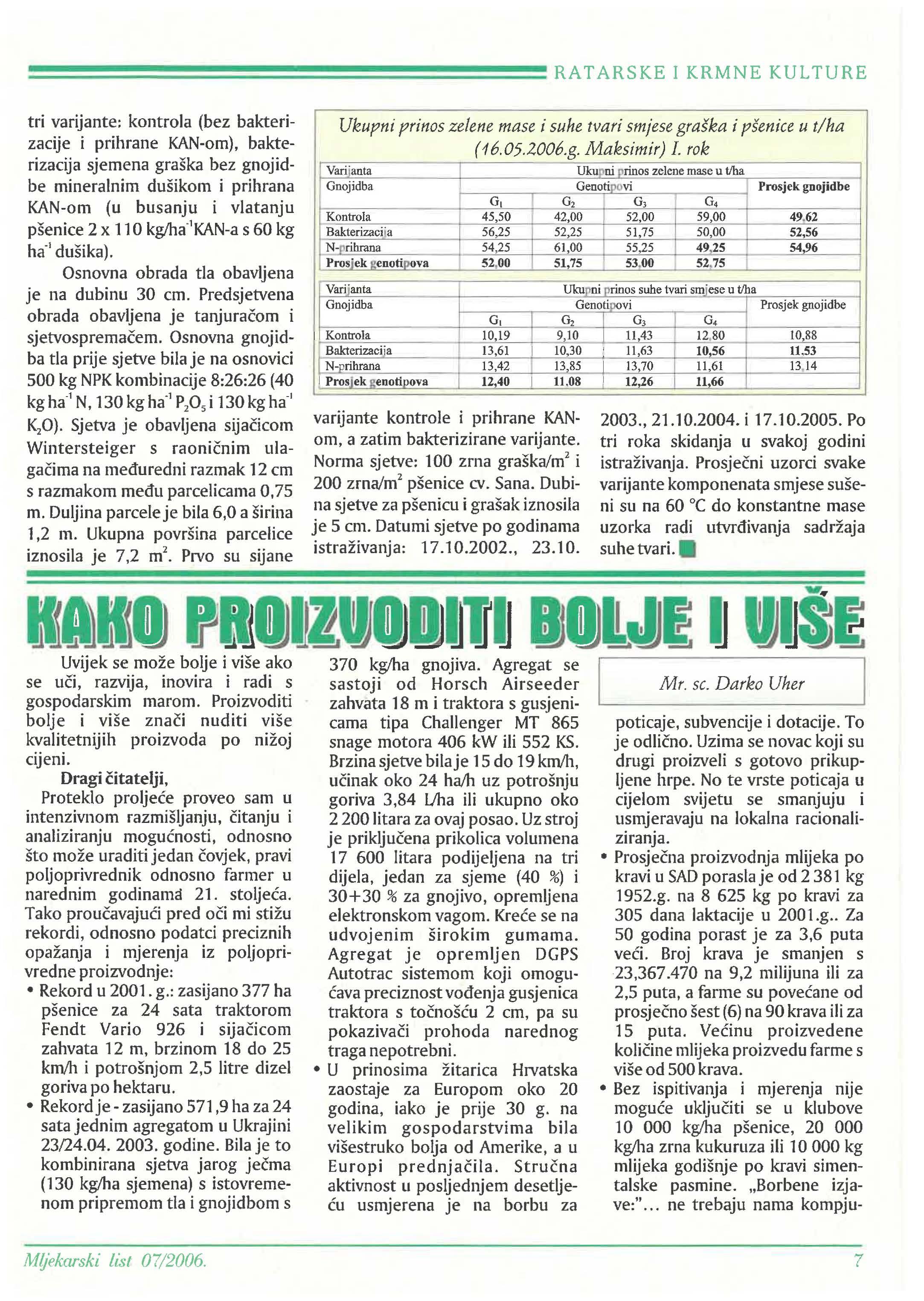 formacije i korisne savjete, ponajprije u segmentu mljekarske proizvodnje. U tu svrhu spremni smo prii dopunjavati koncepciju Lista, ovisno o prilikama i potrebama naših Poseban naglasak dat izgradnji novih i adaptaciji farmi, tehnologiji i upravljanju farmama, zdravlju stada, procesa i rezultata pregovora s Europskom unijom, tržištu stoke, te nezaobilaznoj kvaliteti mlijeka. Molimo vas da i vi aktivno svojim mišljenjima i prijedlozima sudjelujete u radu i pripremi Mljekarskog lista. UREDNIŠTVO