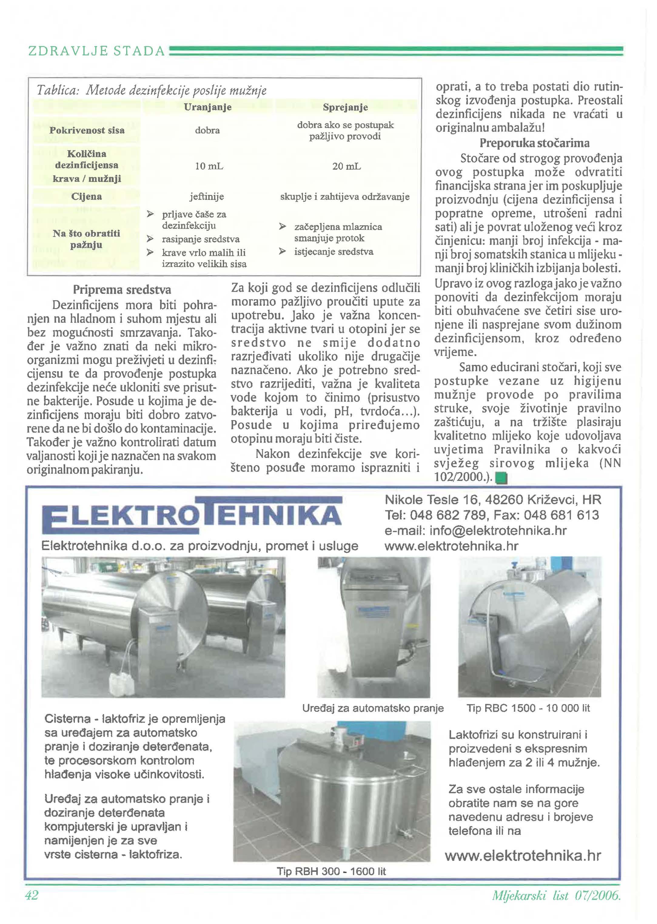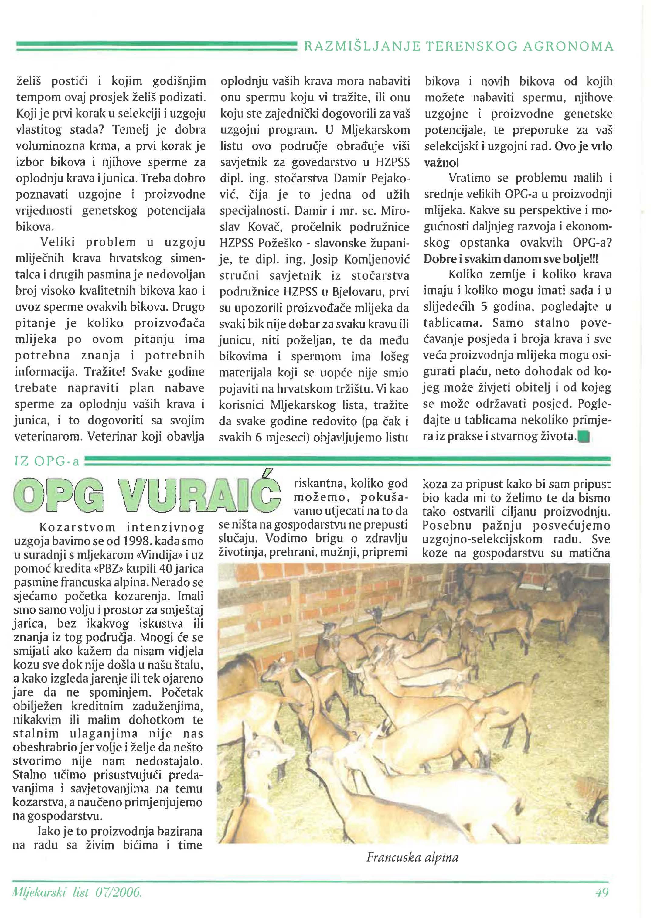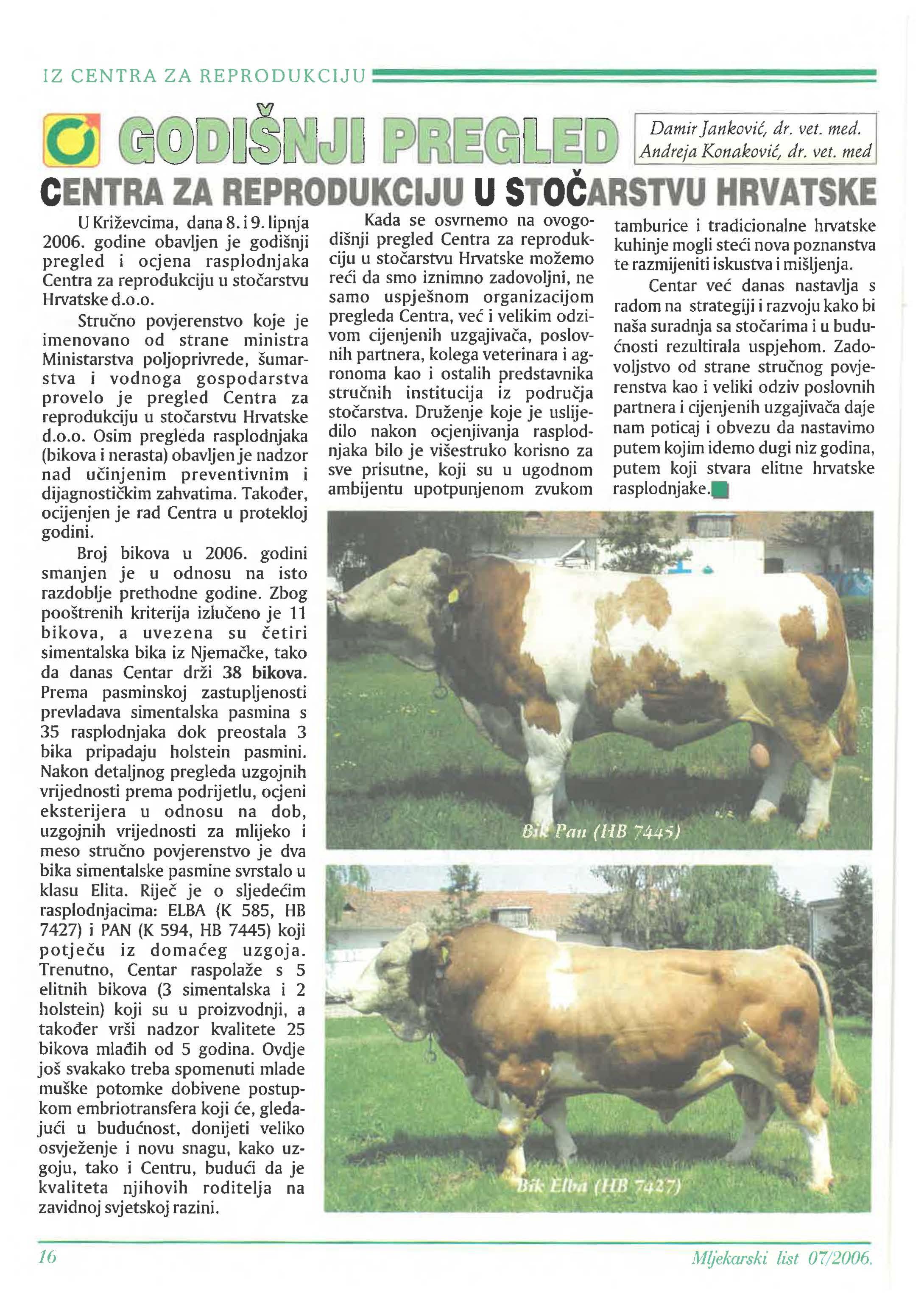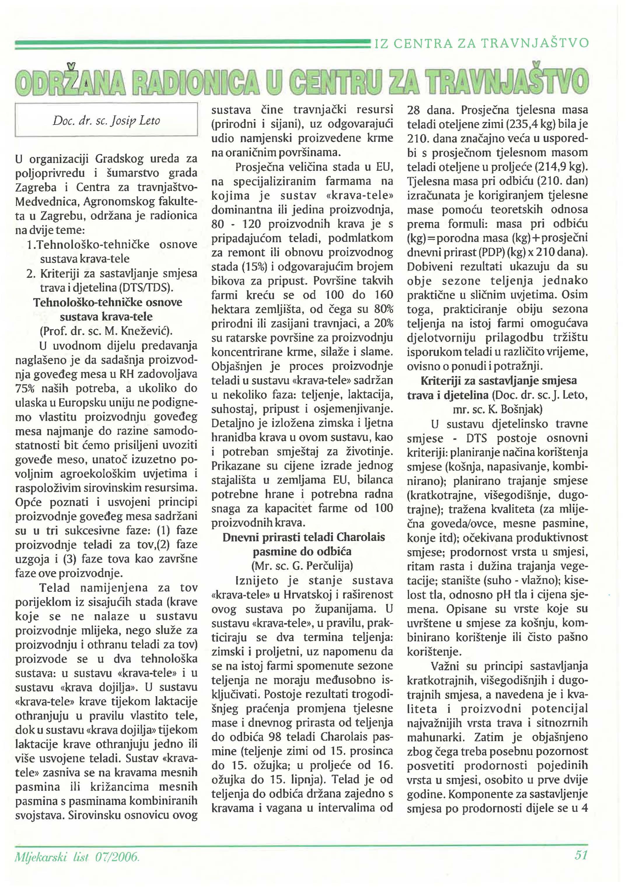 formacije i korisne savjete, ponajprije u segmentu mljekarske proizvodnje. U tu svrhu spremni smo prii dopunjavati koncepciju Lista, ovisno o prilikama i potrebama naših Poseban naglasak dat izgradnji novih i adaptaciji farmi, tehnologiji i upravljanju farmama, zdravlju stada, procesa i rezultata pregovora s Europskom unijom, tržištu stoke, te nezaobilaznoj kvaliteti mlijeka. Molimo vas da i vi aktivno svojim mišljenjima i prijedlozima sudjelujete u radu i pripremi Mljekarskog lista. UREDNIŠTVO