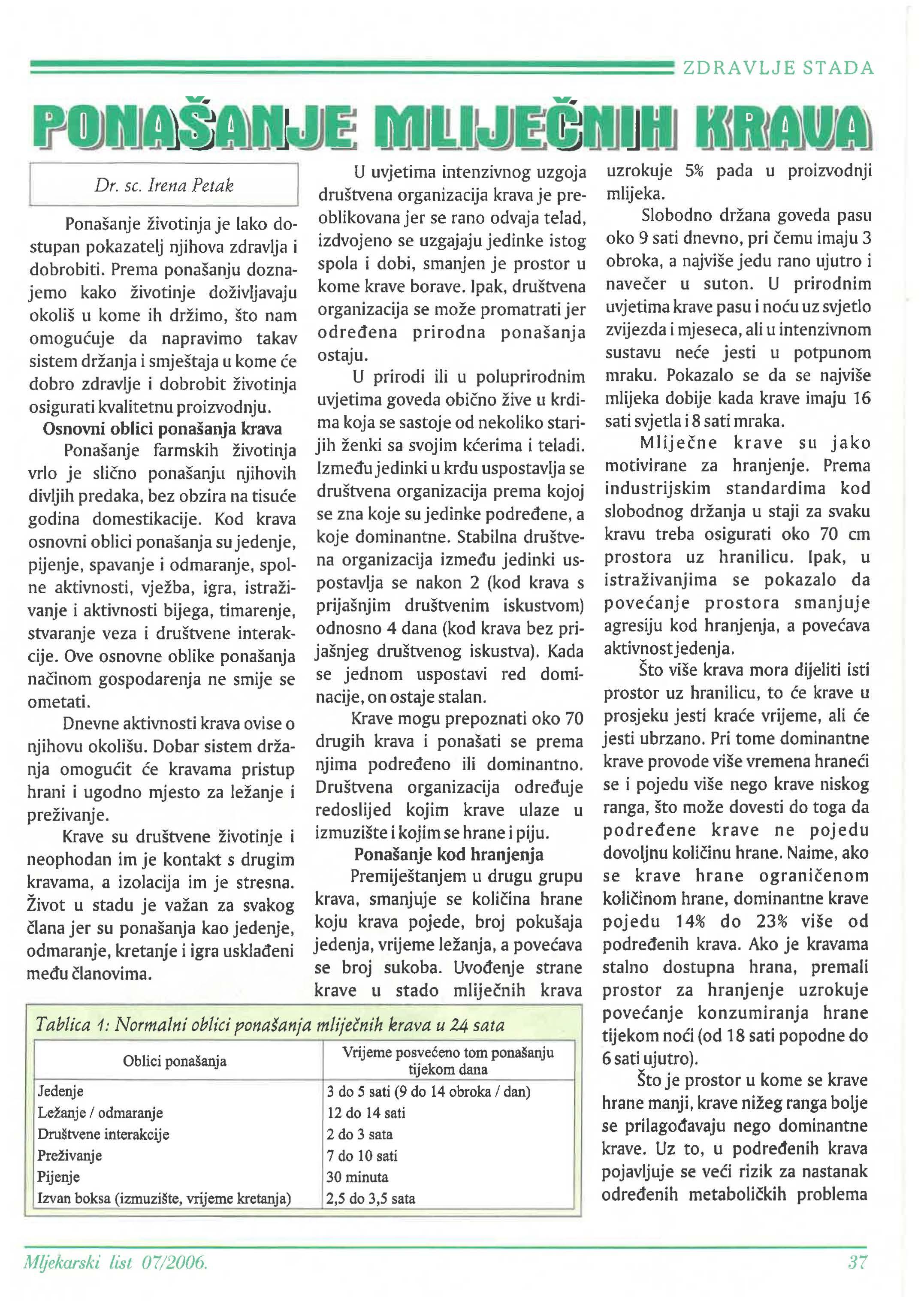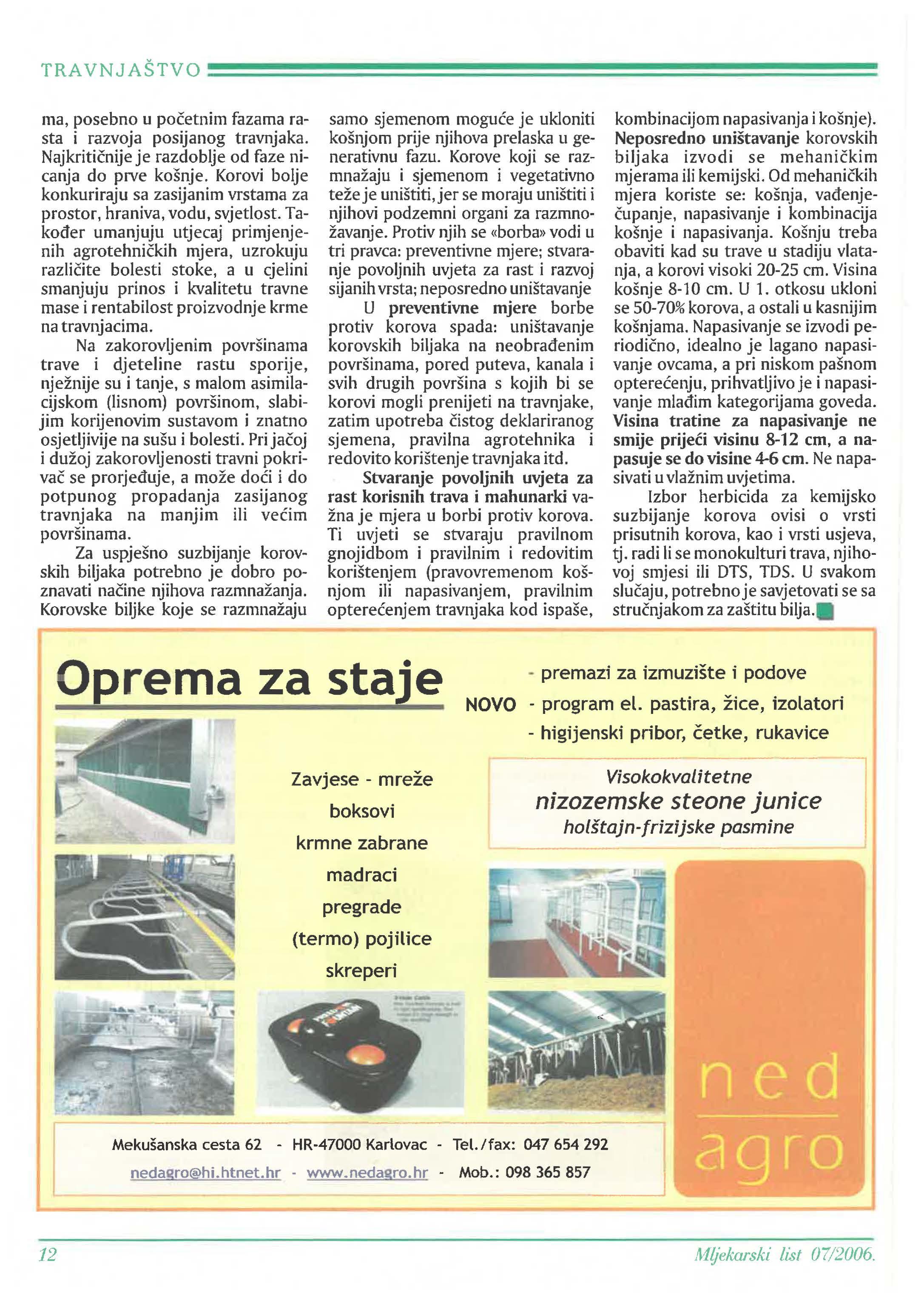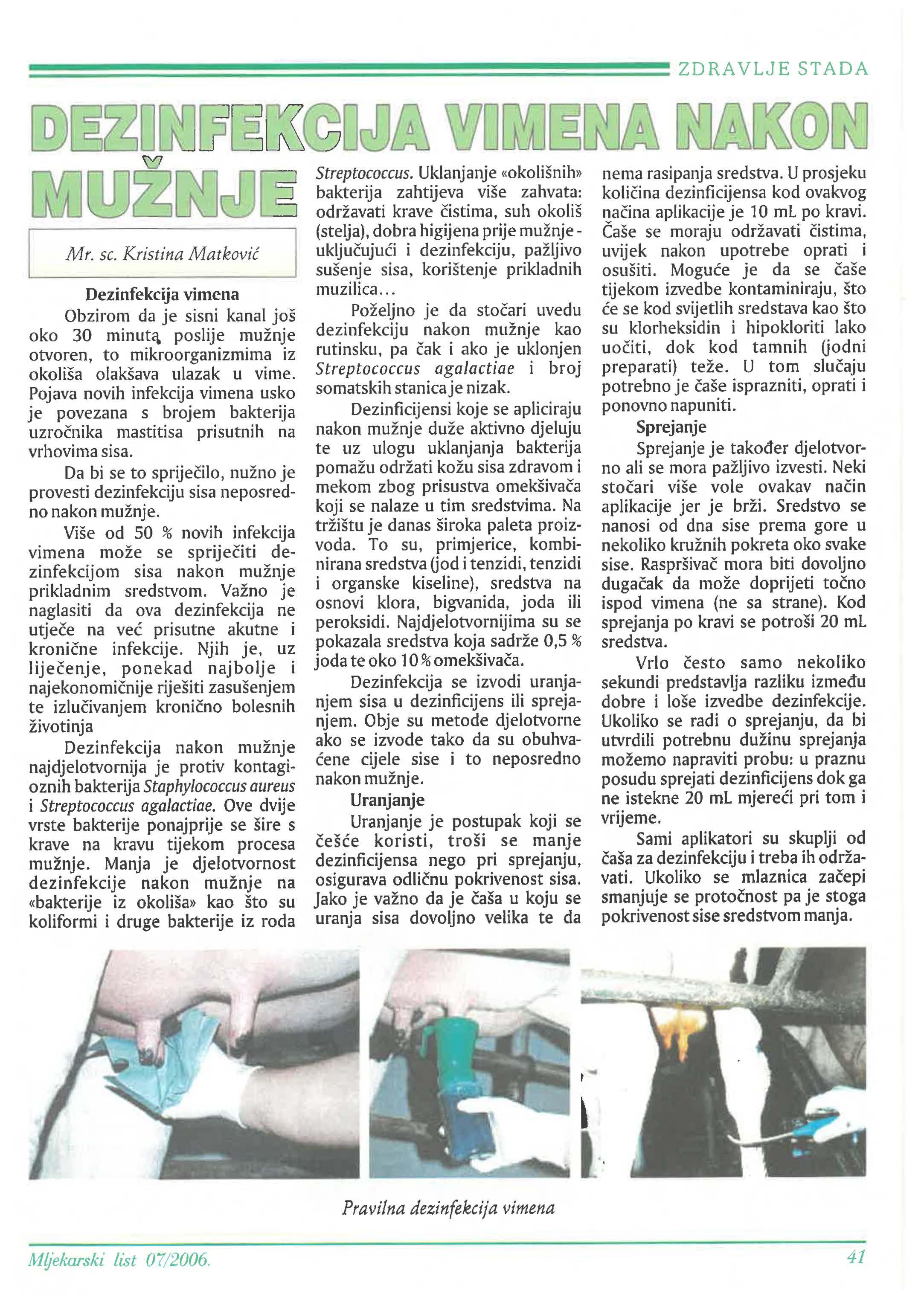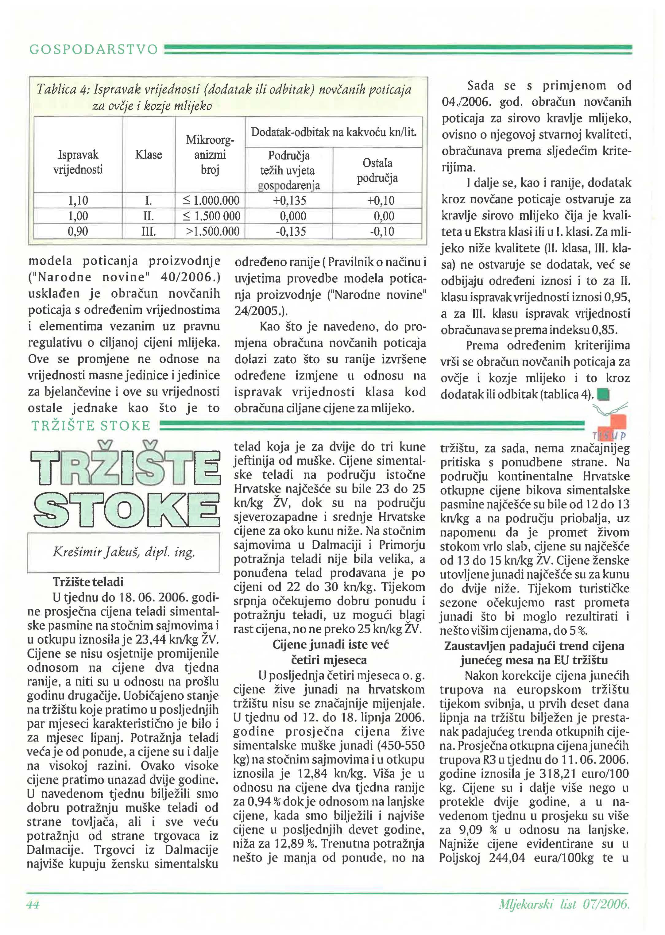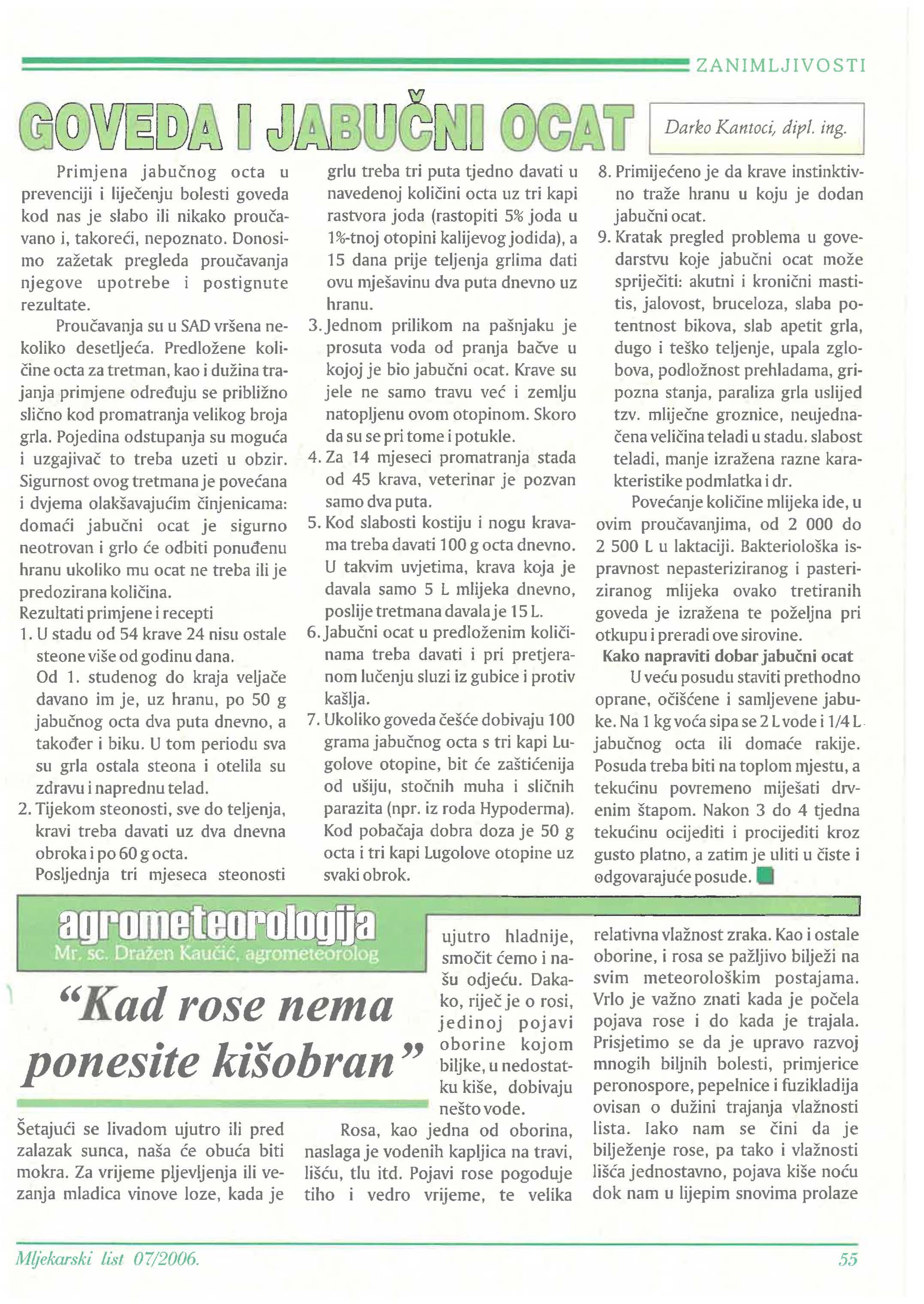 formacije i korisne savjete, ponajprije u segmentu mljekarske proizvodnje. U tu svrhu spremni smo prii dopunjavati koncepciju Lista, ovisno o prilikama i potrebama naših Poseban naglasak dat izgradnji novih i adaptaciji farmi, tehnologiji i upravljanju farmama, zdravlju stada, procesa i rezultata pregovora s Europskom unijom, tržištu stoke, te nezaobilaznoj kvaliteti mlijeka. Molimo vas da i vi aktivno svojim mišljenjima i prijedlozima sudjelujete u radu i pripremi Mljekarskog lista. UREDNIŠTVO