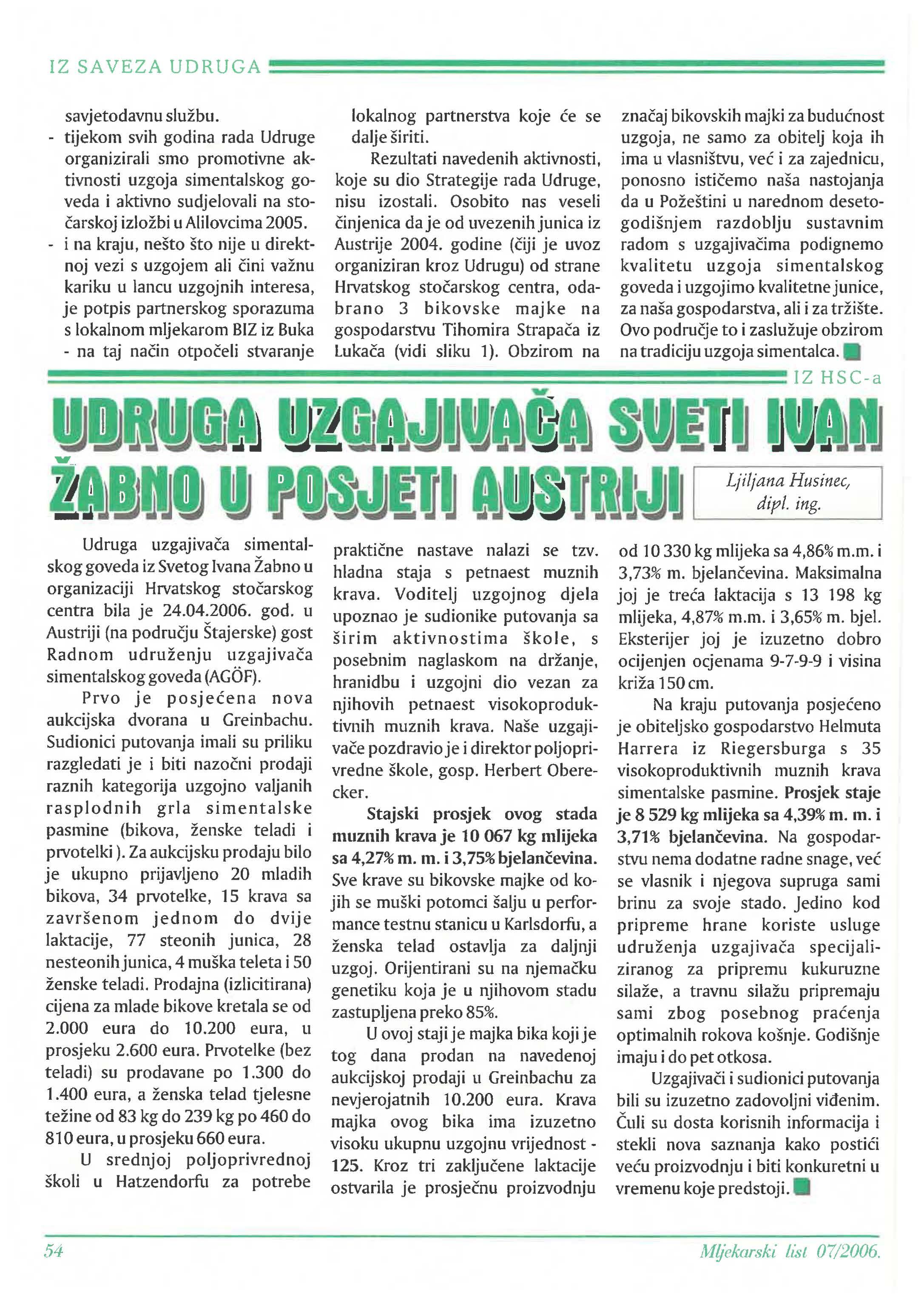 Udruga uzgaJ1vaca simentalskog goveda iz Svetog lvana Žabno u organizaciji Hrvatskog centra bila je 24.04.2006. god. u Austriji (na Štajerske) gost Radnom udruženju simentalskog goveda (AGOF).