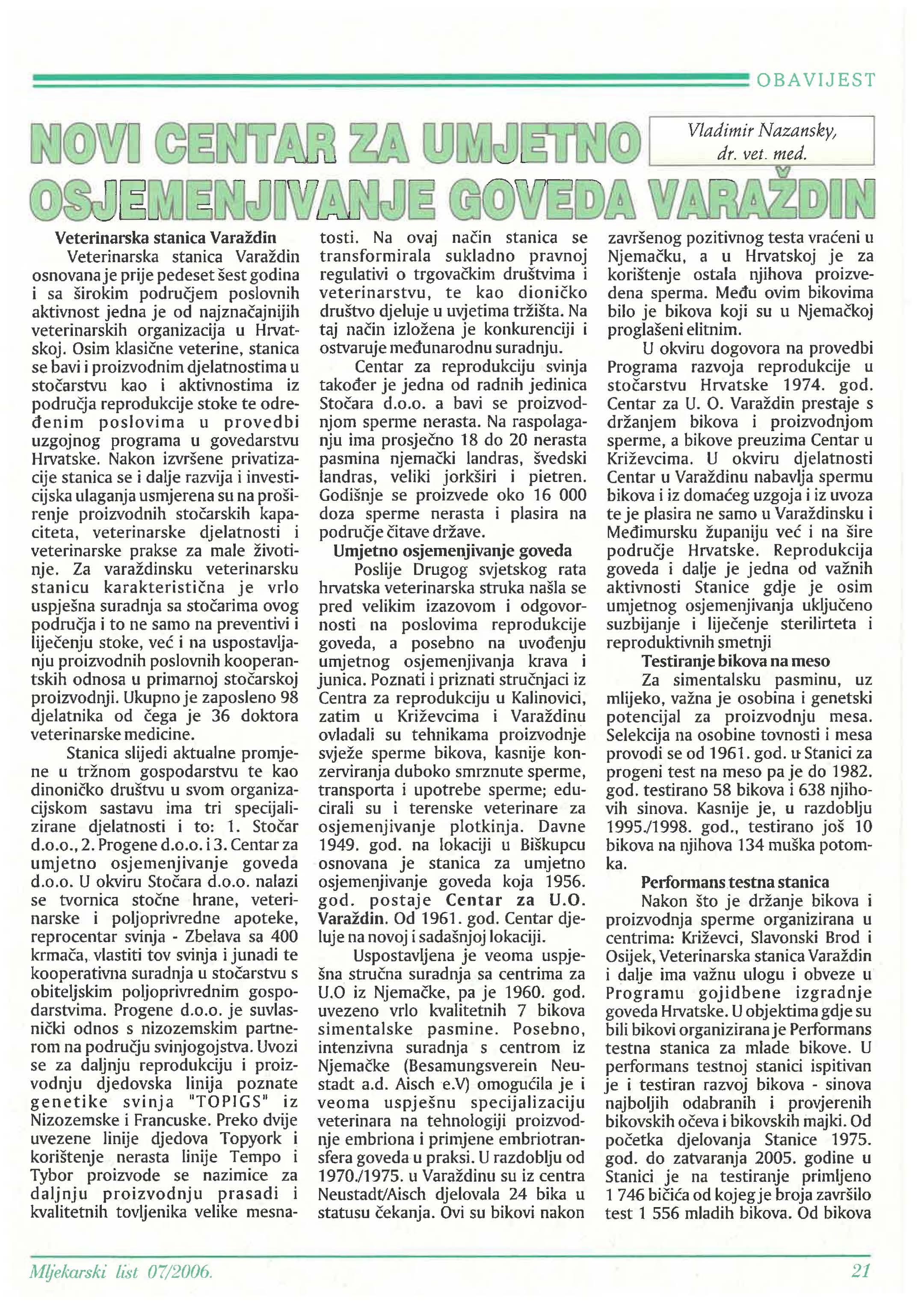 Novi Centar za umjetno osjemenjivanje goveda Varaždin _________________________ 21