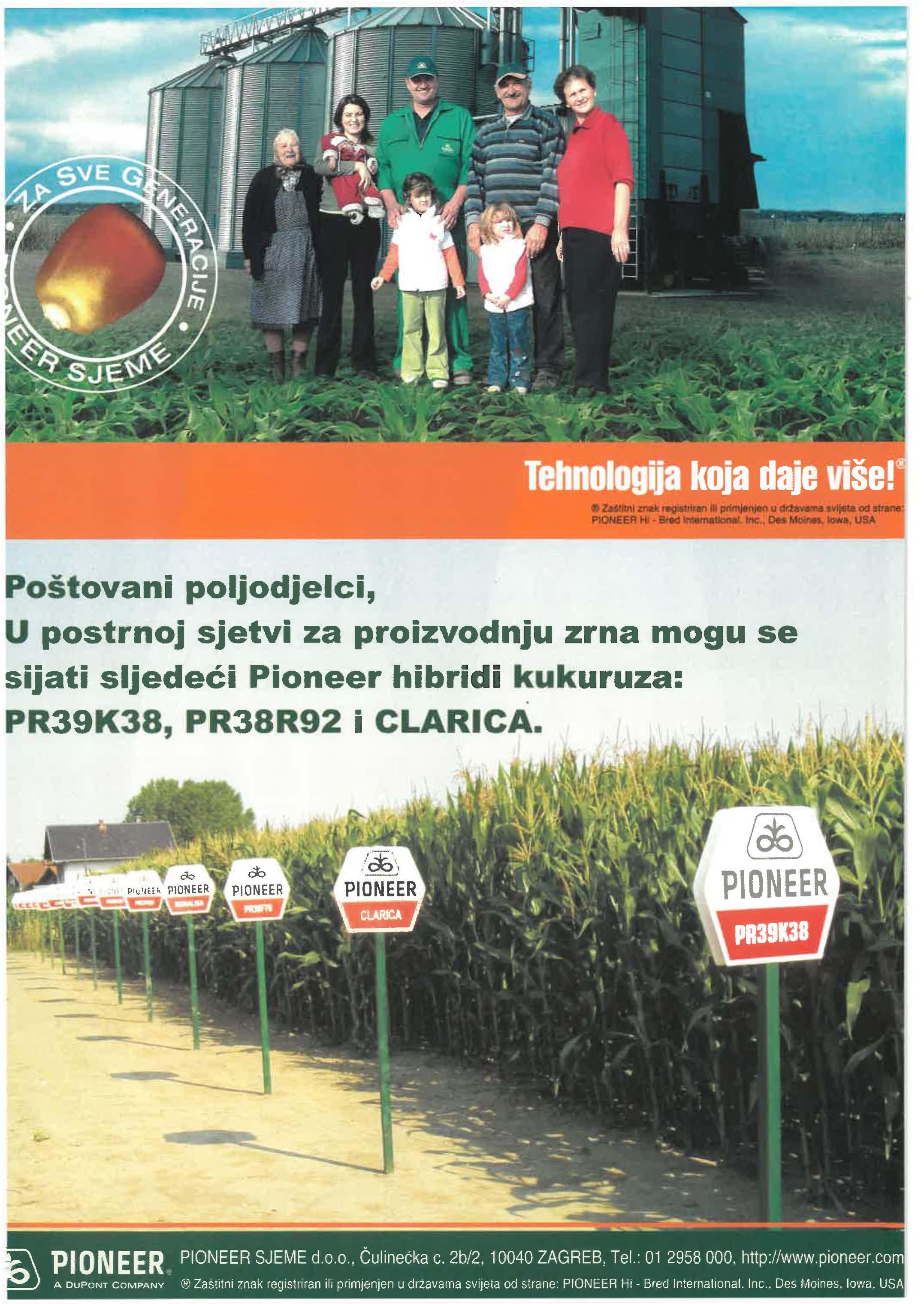 Poštovani poljodjelci, U postrnoj sjetvi za proizvodnju zrna mogu se sijati Pioneer hibridi kukuruza: PR39K38, PR38R92 i CLARICA.