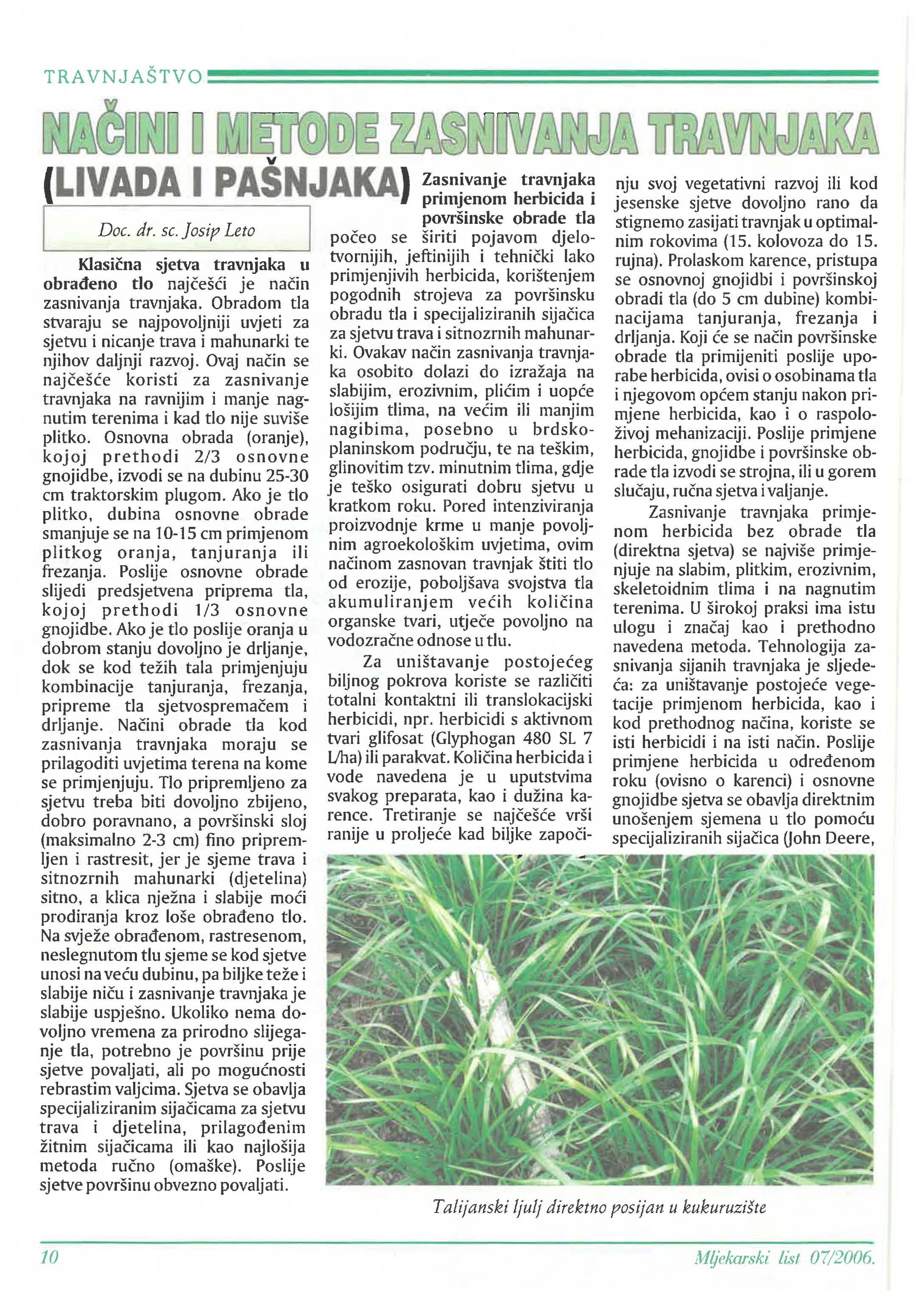 i metode zasnivanja travnjaka 0ivada i pašnjaka) . ______________________________ 1o