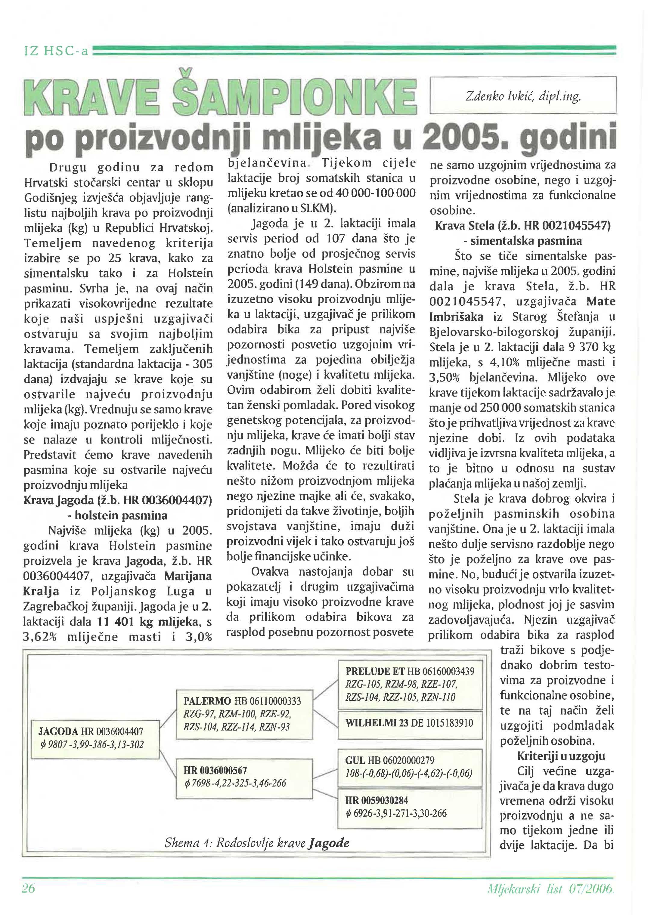 Krave šampionke po proizvodnji mlijeka u 2005. godini _____________________________ 26