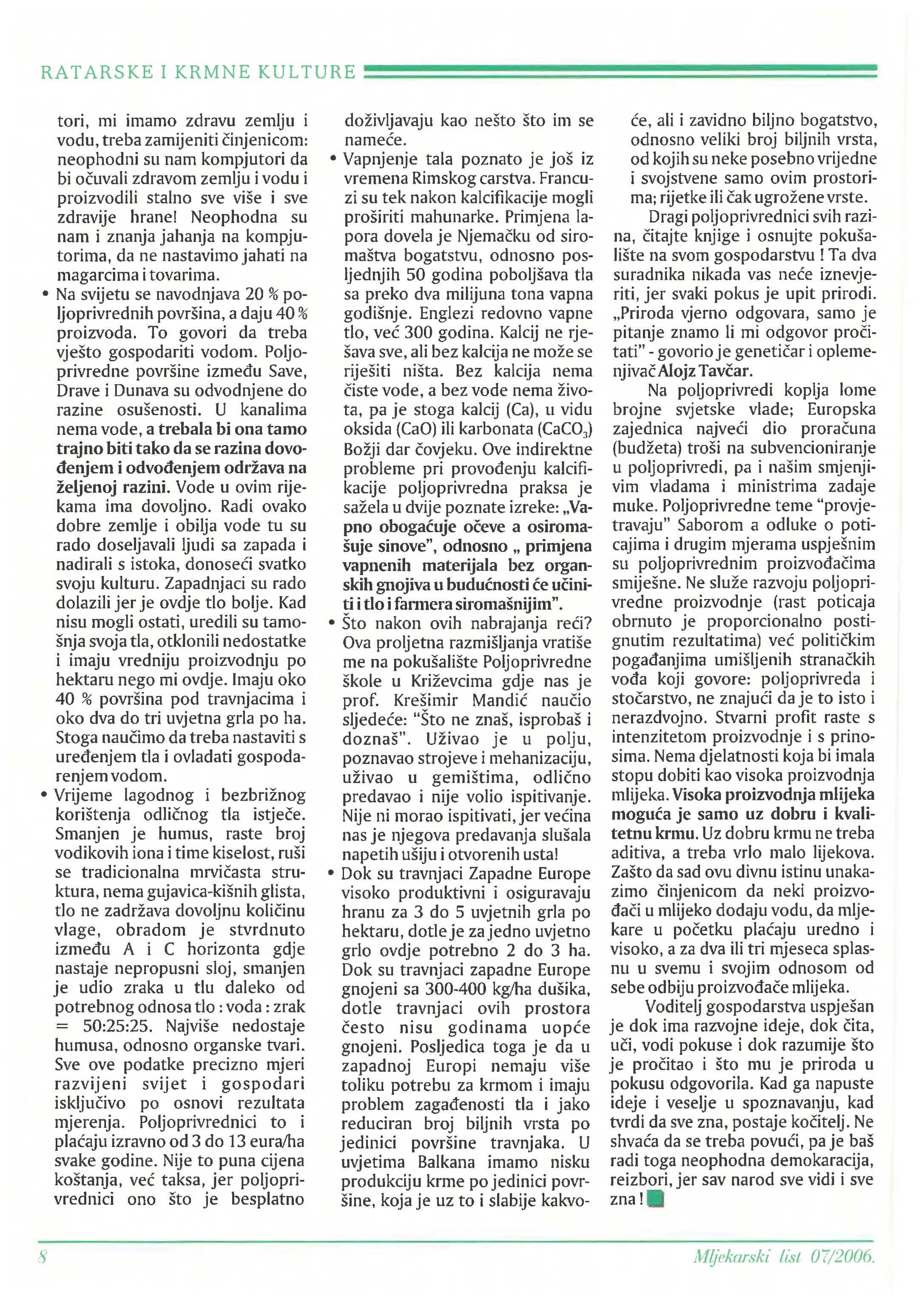u broju Mljekarskog lista. No, to nije razlog da vam ne kažemo nešto o programskoj orijentaciji našeg Lista. Naime, i dalje nastaviti s edukacijom mlijeka. Svjesni smo da je opseg Mljekarskog lista premalen da bi objavili sve priloge i pojasnili problematiku koja svakodnevno tišti naše mlijeka. Radi intenzivnih gospodarskih promjena u poljoprivredi, obveze i zadatci Mljekarskog lista sve su složeniji jer svojim i