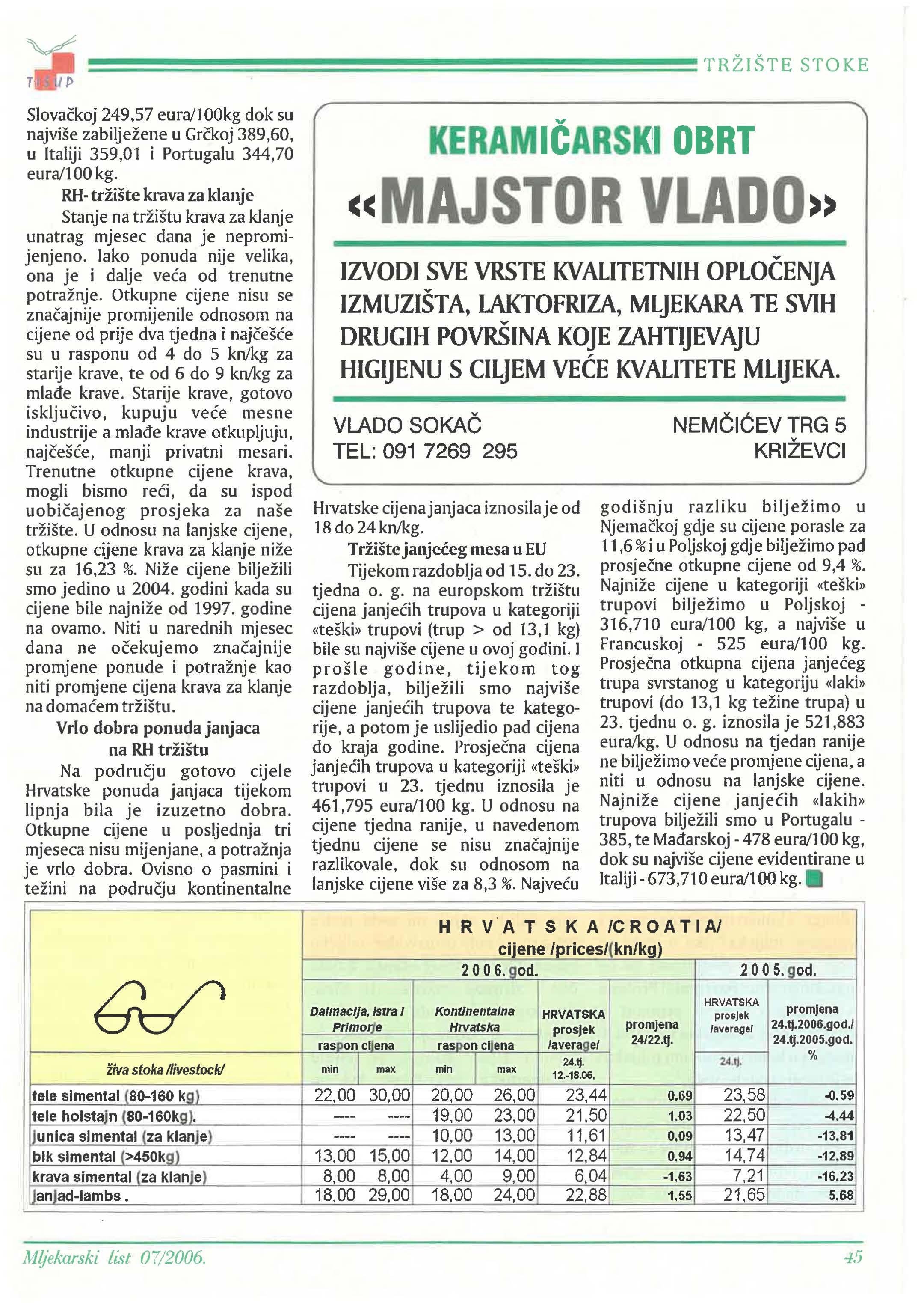 Glavna I odgovorna urednica: Vera dipl. ing., urednica: ing. Mirna Lektorica: Nada prof. Vlasnik I Hrvatska mljekarska udruga, Zagreb, Uprava I uredništvo: Zagreb, llica