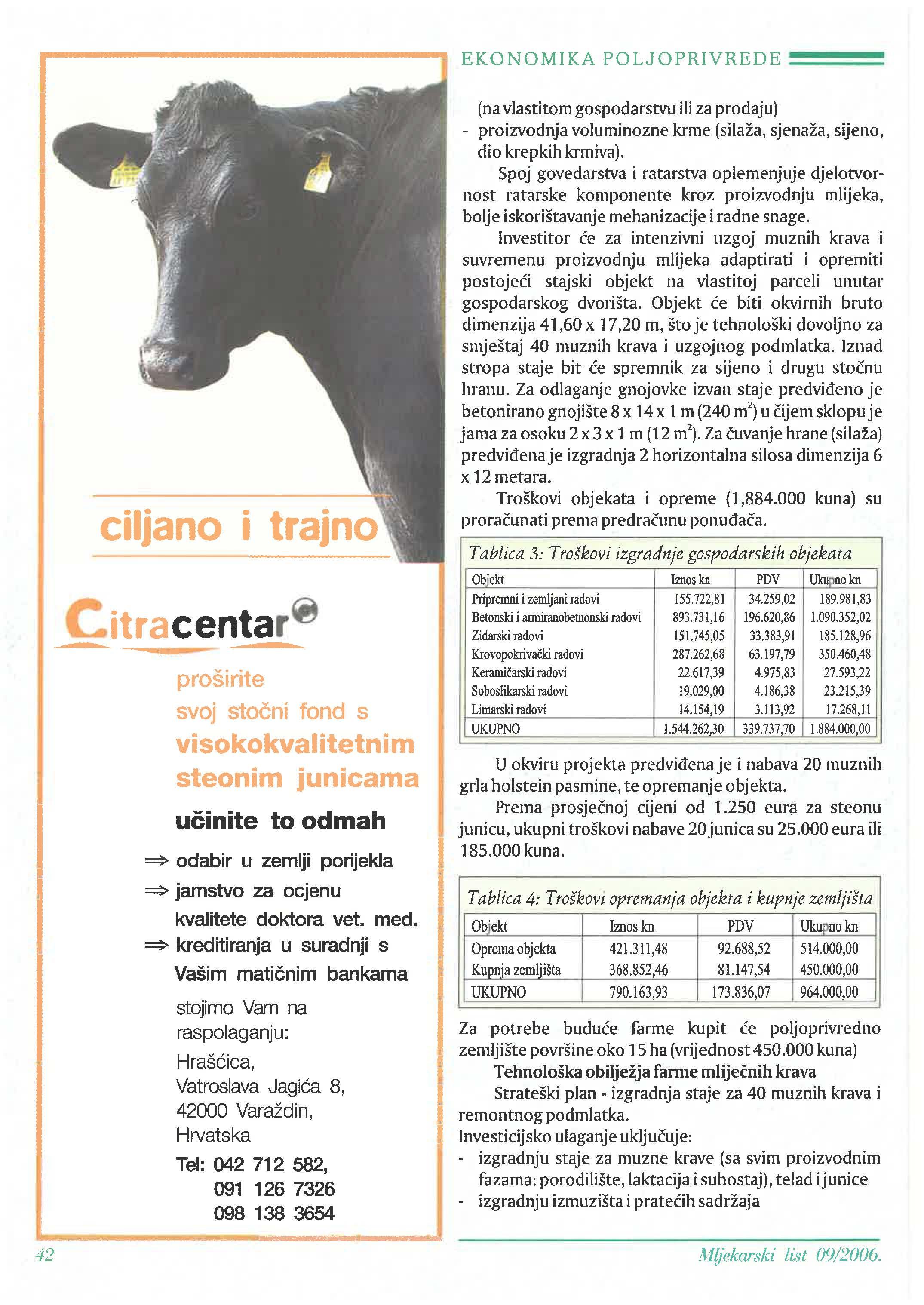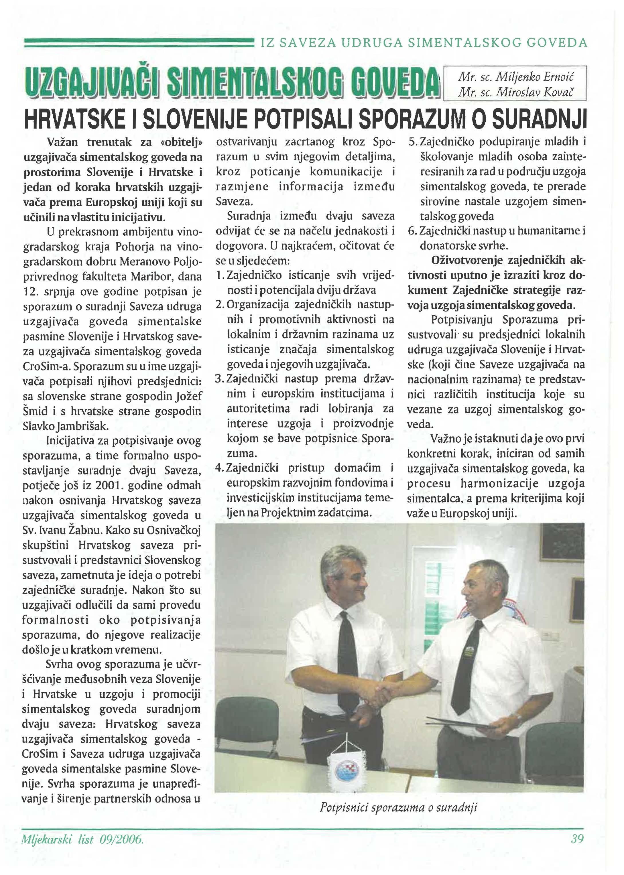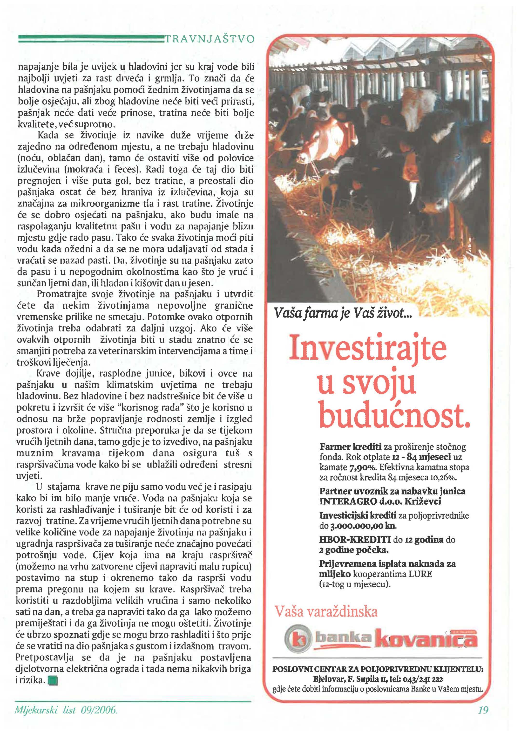 U organizaciji Hrvatske mljekarske udruge na Sljemenu 12. srpnja 2006. g. održana su tematska predavanja u sklopu Škole nastave. Odziv je bio velik, što i ne zbog aktualnosti tema koje su izložene. Predavanja su održali struHrvatskog zavoda za poljoprivrednu savjetodavnu službu pod vodstvom dr. se. lvana koji je bio teme «Izgradnja suvremenih farmi». Na ovo uvodno predavanje nadovezao se mr. se. s primjerima iz prakse (velikim farmama s 31 do 150 krava). Slijedilo je predavanje Josipa dipl. ing.