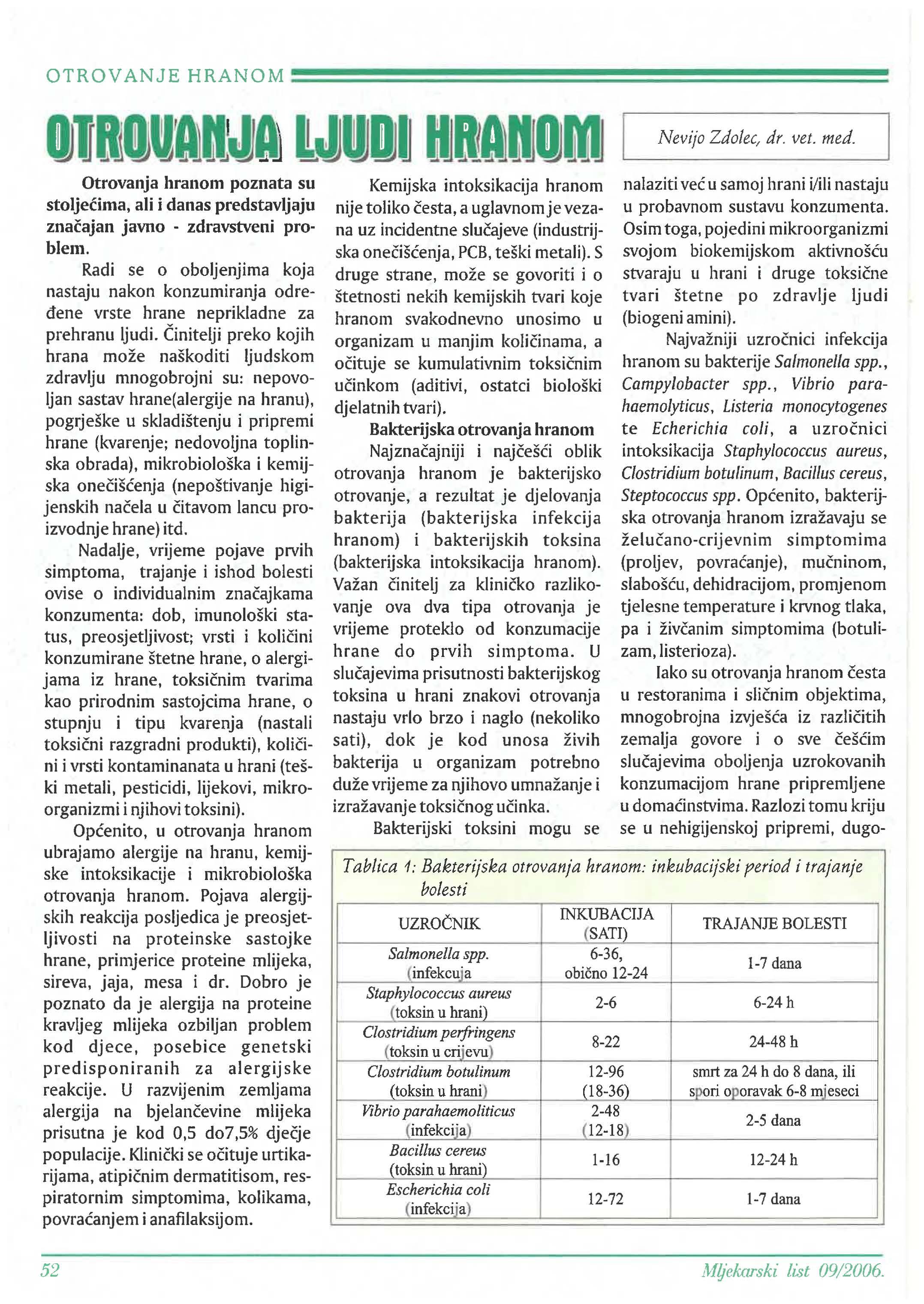 Tablica1: Bakterijskaotrovanjahranom:inkubacijskiperiodi trajanje bolesti