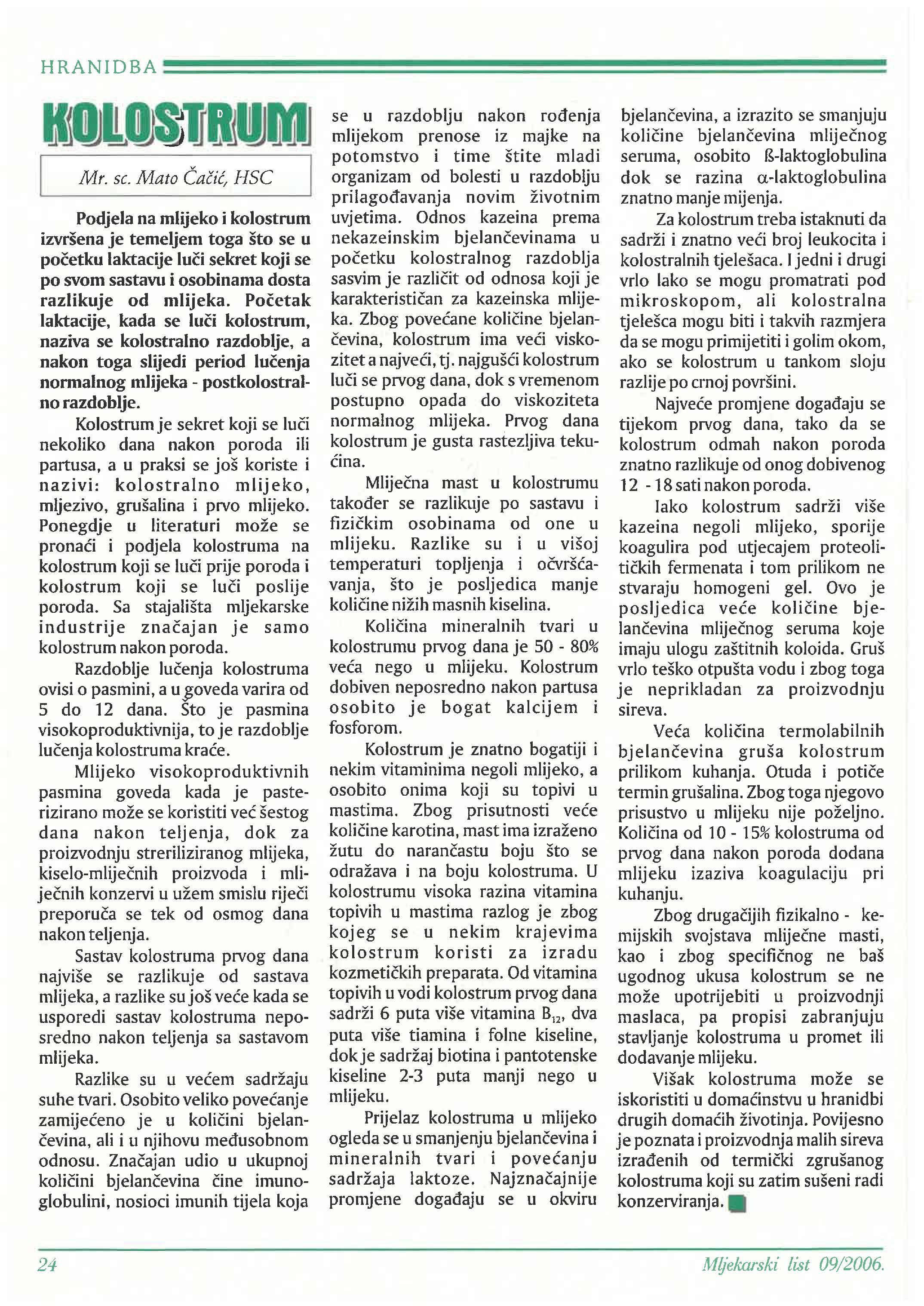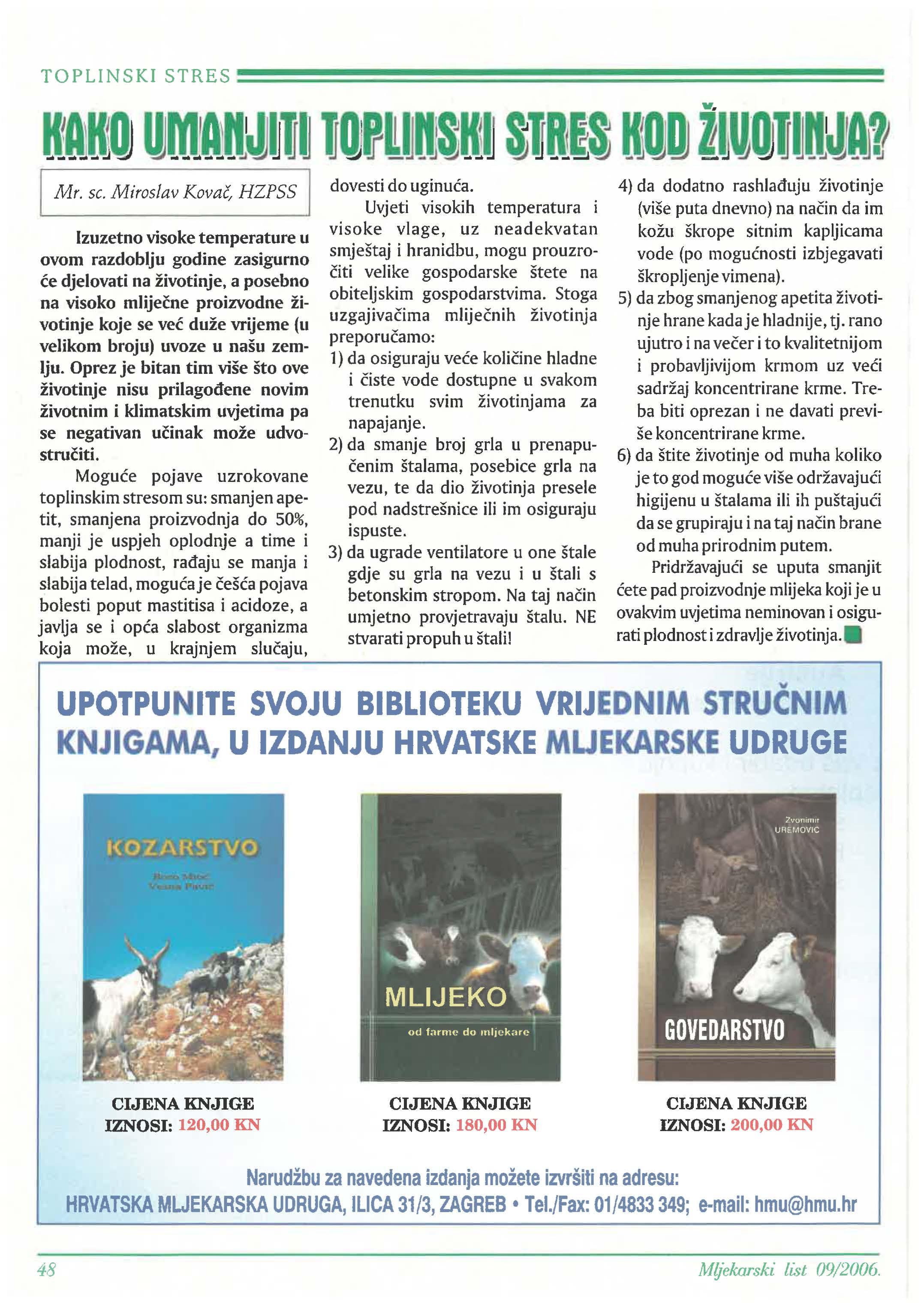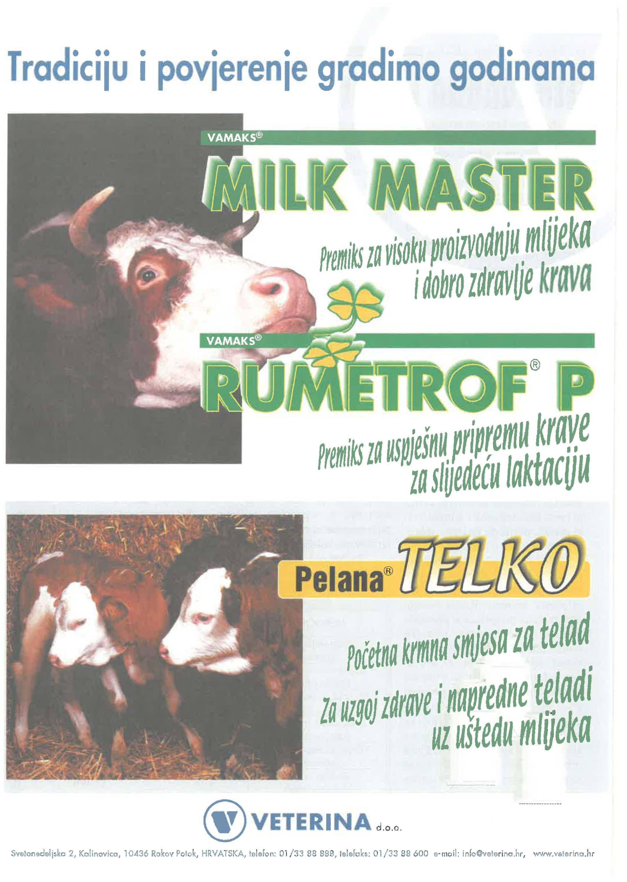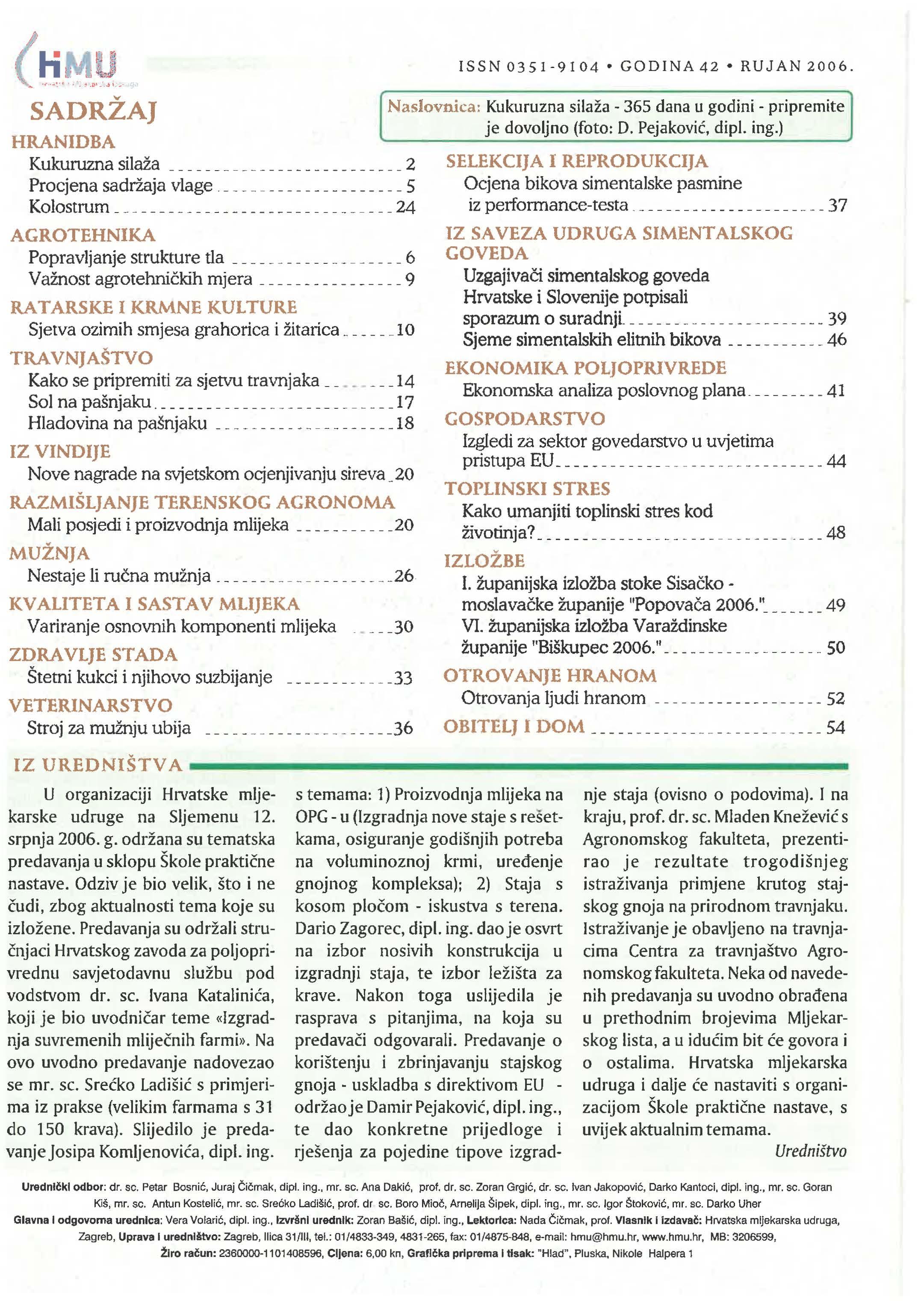 Glavna I odgovorna urednica: Vera dipl. ing., Izvršni urednik: Zoran dipl. ing., Lektorica: Nada prof. Vlasnik I Hrvatska mljekarska udruga, Zagreb, Uprava I urednlitvo: Zagreb, llica