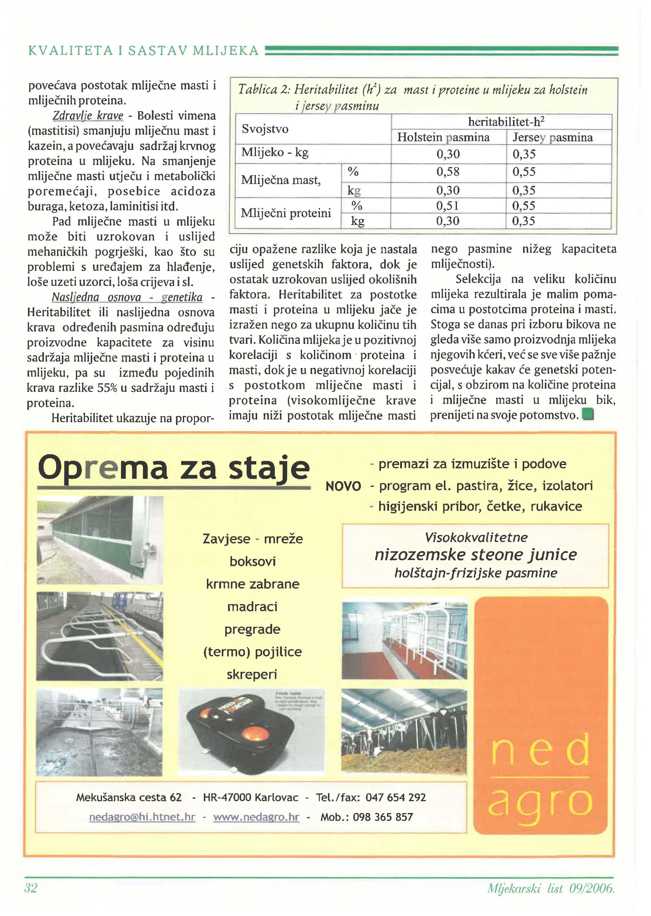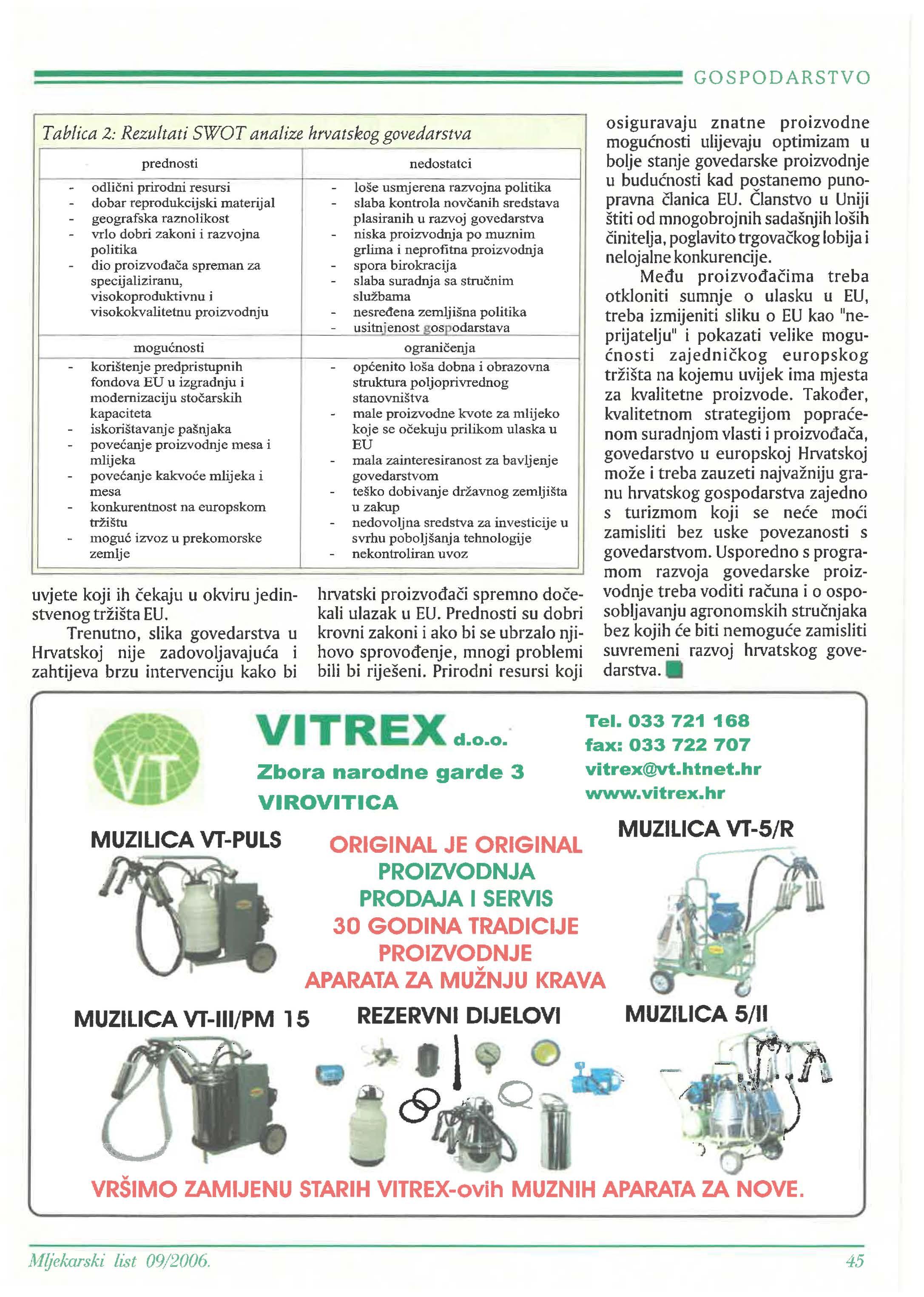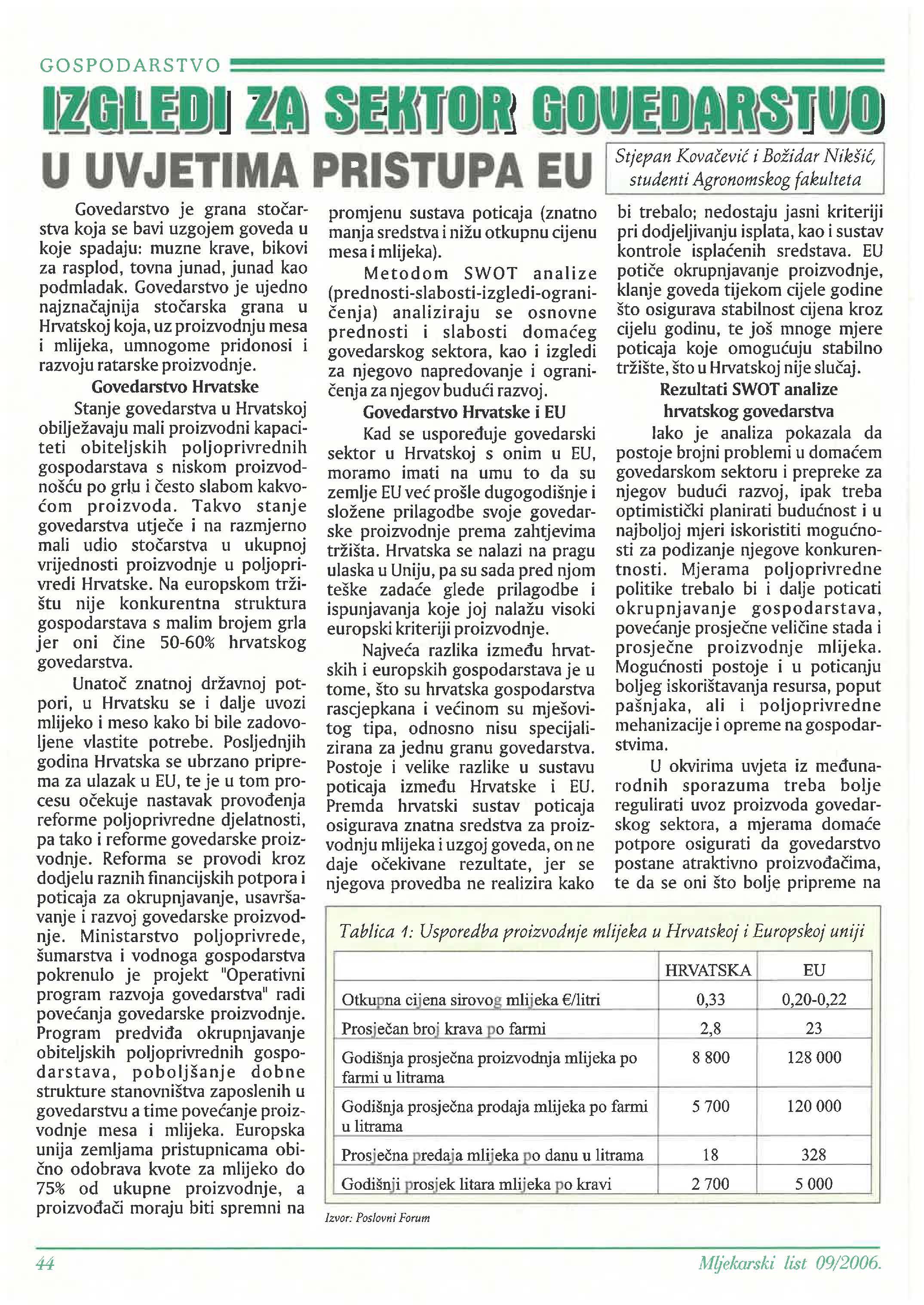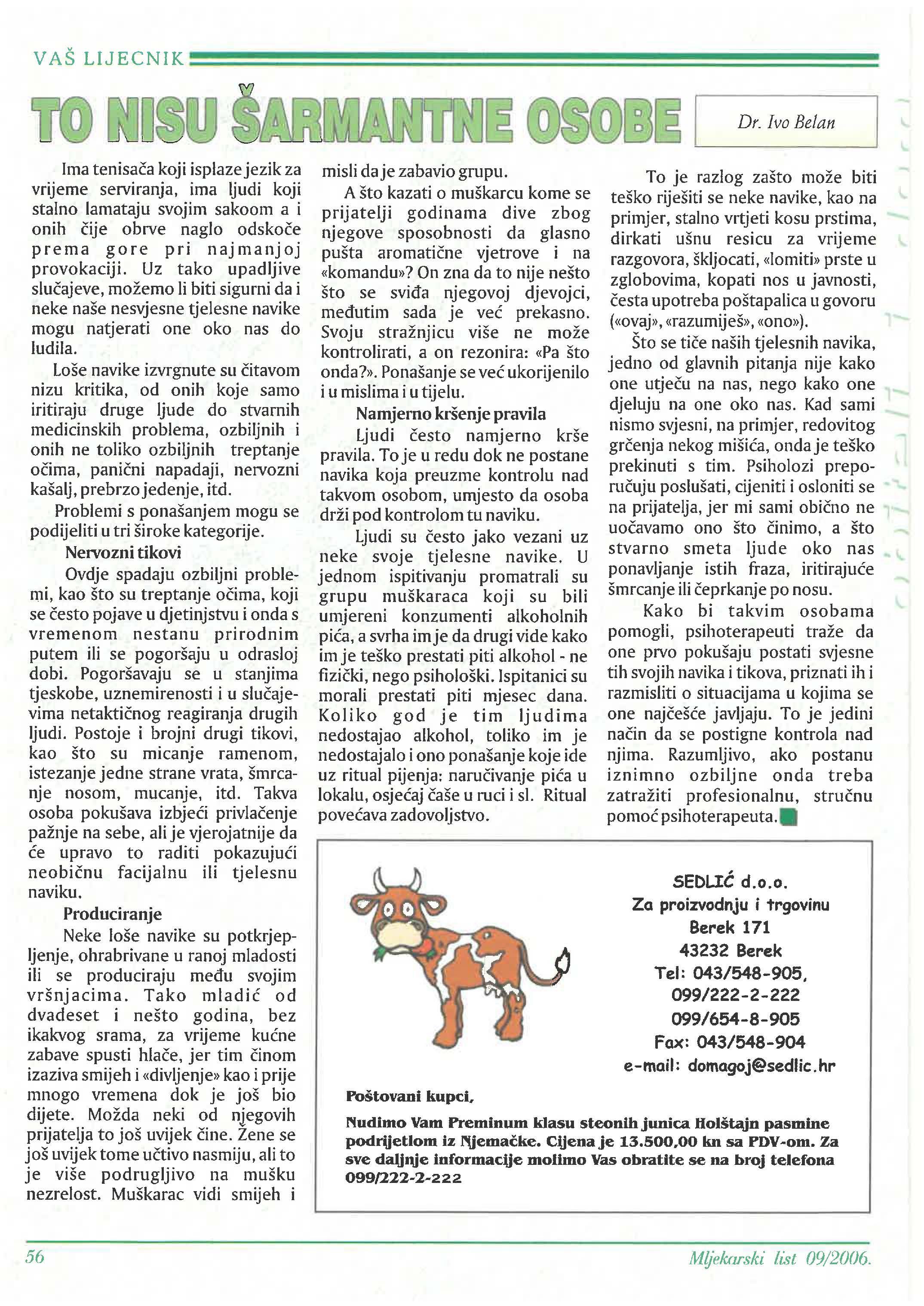 Glavna I odgovorna urednica: Vera dipl. ing., Izvršni urednik: Zoran dipl. ing., Lektorica: Nada prof. Vlasnik I Hrvatska mljekarska udruga, Zagreb, Uprava I urednlitvo: Zagreb, llica