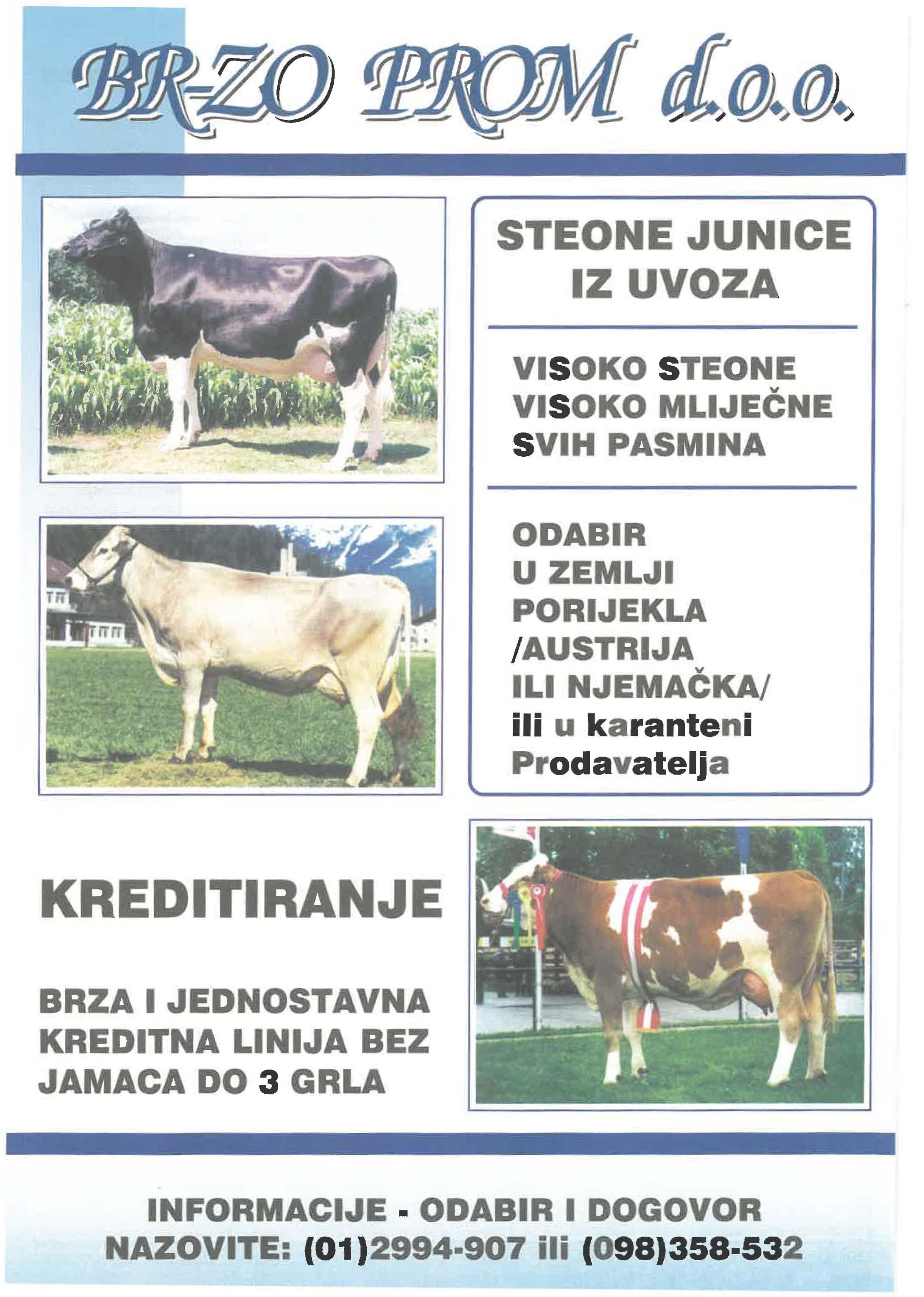Nudimo Vam Preminum klasu steonih junica Holštajn pasmine podrijetlom iz Cijena je 13.500,00 kn sa PDVAom. Za sve daljltje informacije molimo Vas obratite se na broj telefona 099/222A2A222