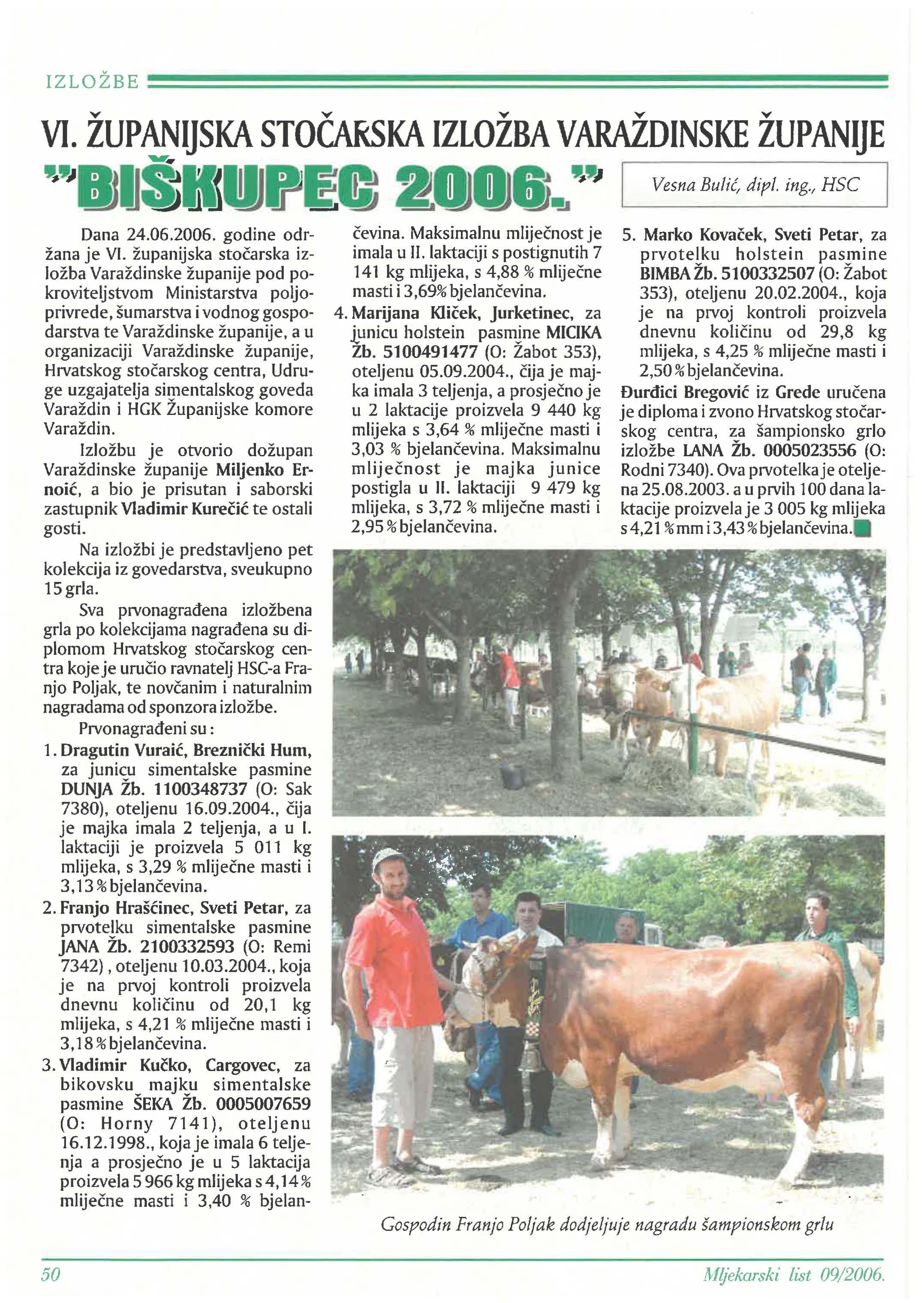 Dana 24.06.2006. godine održana je VI. županijska izložba Varaždinske županije pod pokroviteljstvom Ministarstva poljoprivrede, šumarstva i vodnog gospodarstva te Varaždinske županije, a u organizaciji Varaždinske županije, Hrvatskog centra, Udruge uzgajatelja simentalskog goveda Varaždin i HGK Županijske komore Varaždin.