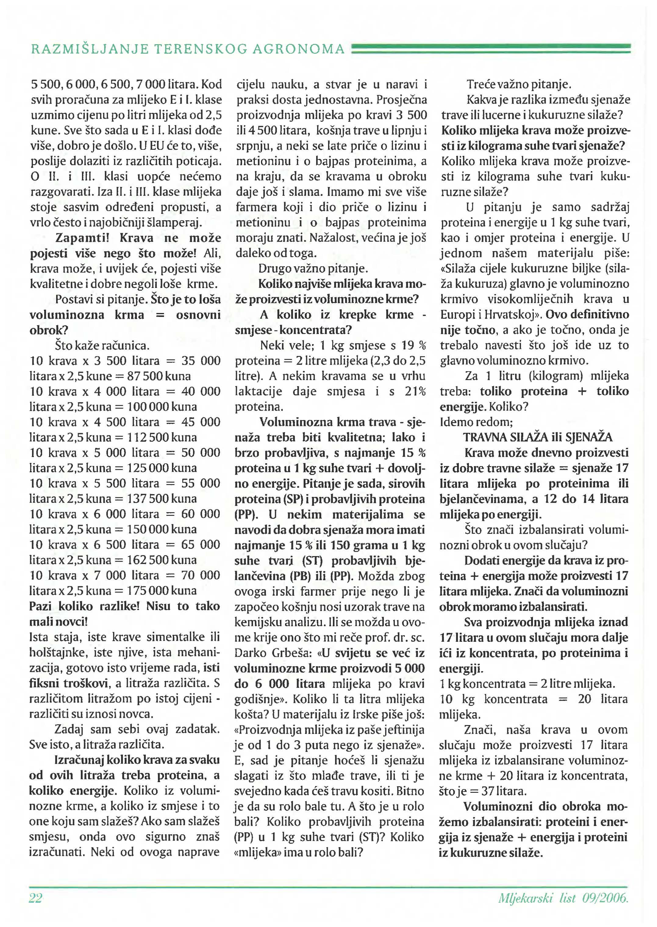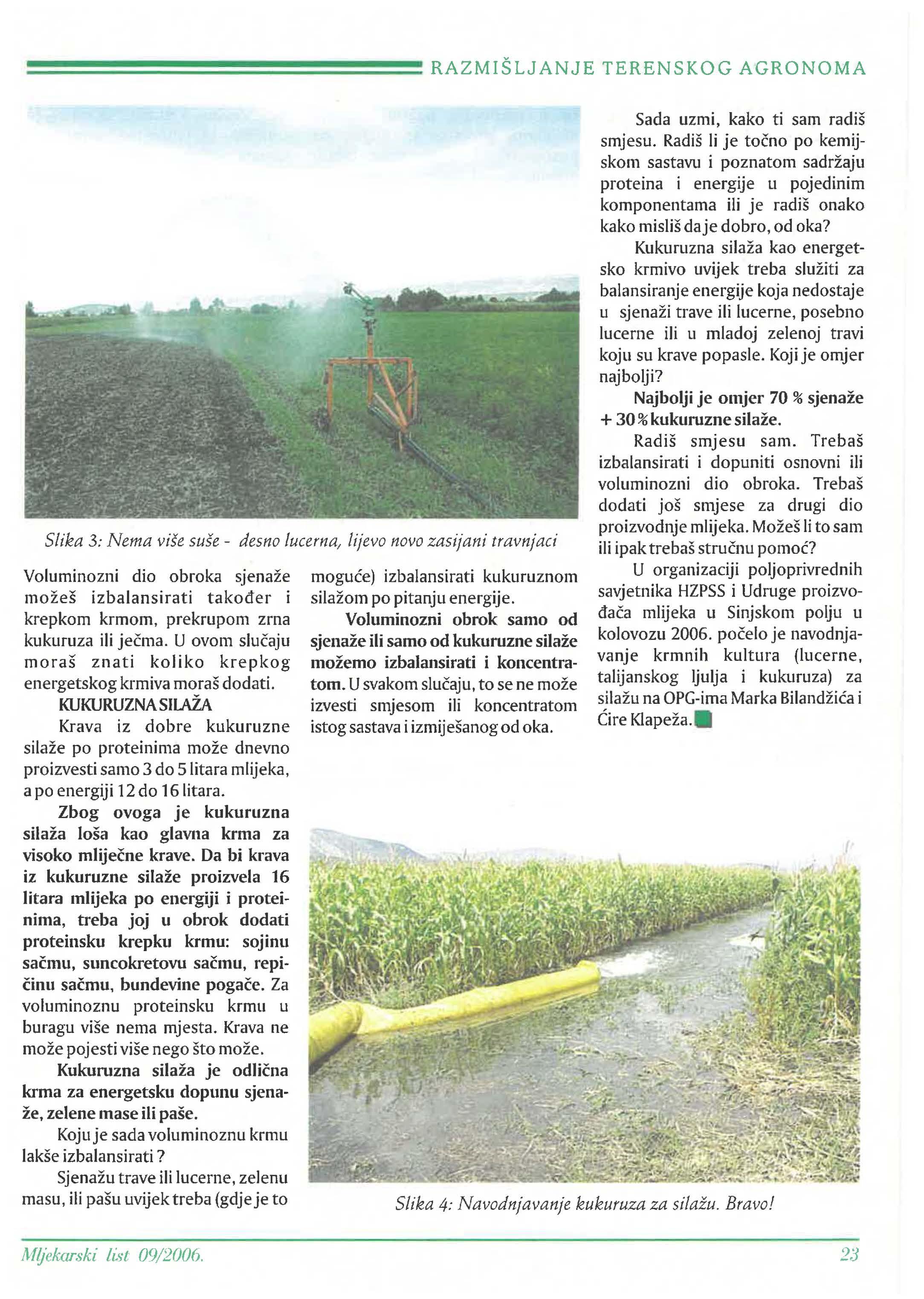 Ako bi ovaj primjer prenijeli u naše prilike, mogli bi da bi puno bolje morali iskorištavati naše prirodne pogodnosti za proizvodnju kukuruza i u proizvodnji mlijeka. U našim je uvjetima realno puno jednostavnije proizvesti velike kvalitetne kukuruzne silaže nego trave i krme. No praksa, nažalost, pokazuje - rijetke su krave koje imaju na raspolaganju dovoljne kukuruzne silaže a posebno je to rijetkost u toplijem dijelu godine.