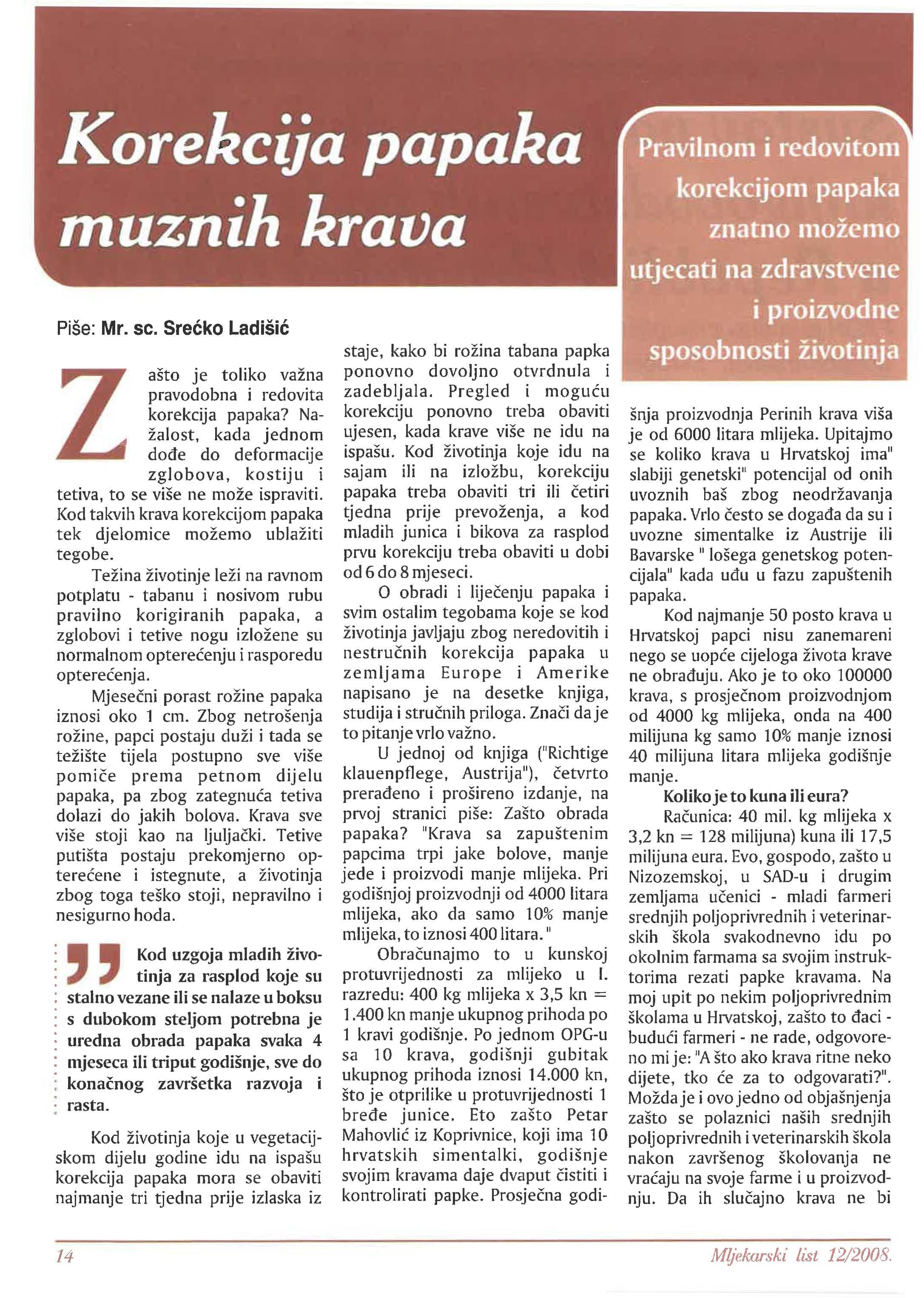 A svima onima koji u proizvodnju mlijeka ne vjeruju ili se kolebaju, da ne gase jedan nedovršen posao, a pritom ne spoznavši kako prvi razred mlijeka i proizvodnju po grlu. Težak je to cilj, ali ipak ostvariv, samim tim što je plasman mlijeka EU osiguran a mljekarska industrija zahtjevan ali ipak siguran partner.