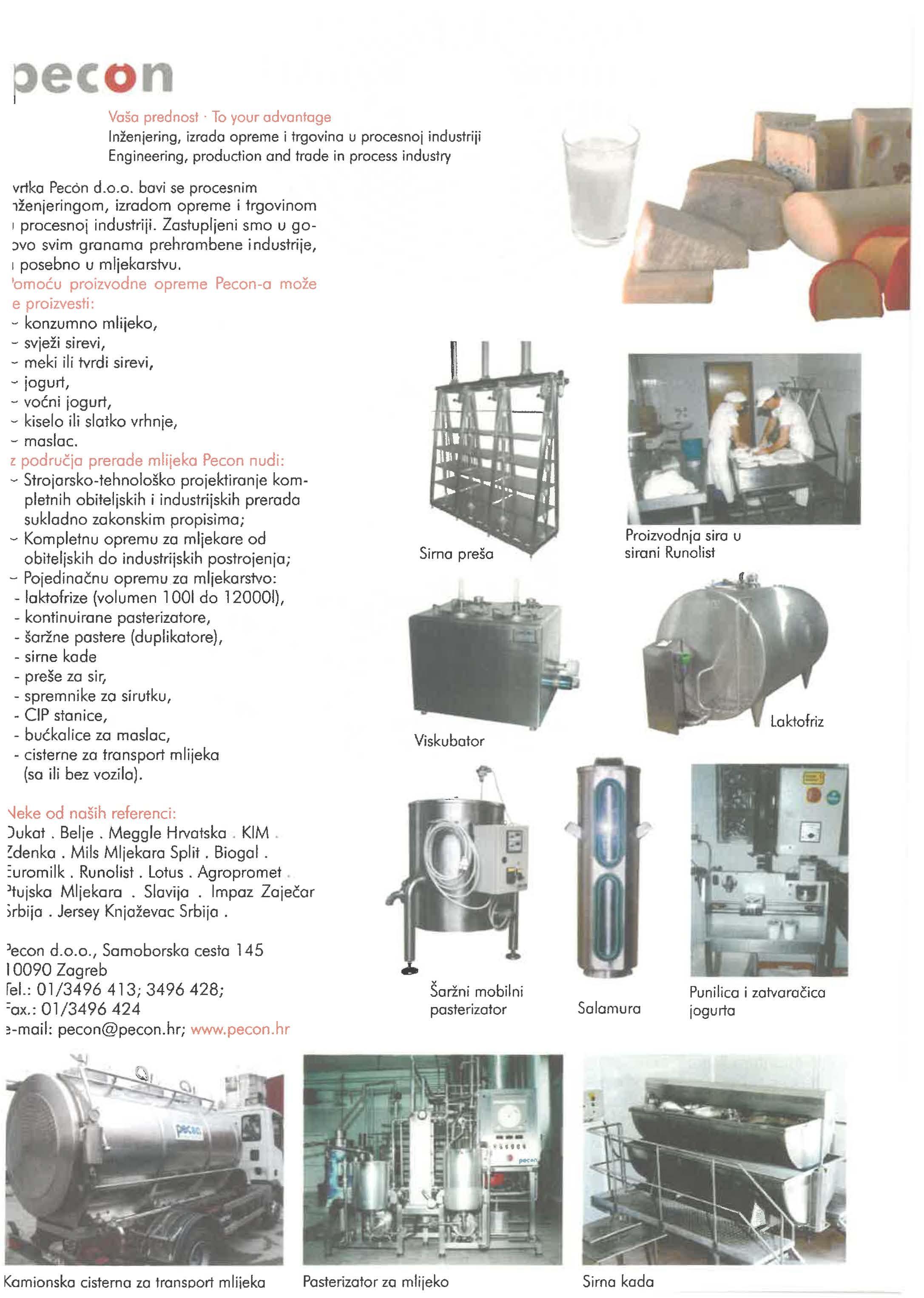 - Oprema za proizvodnju, pakiranje i ambalažiranje sira
