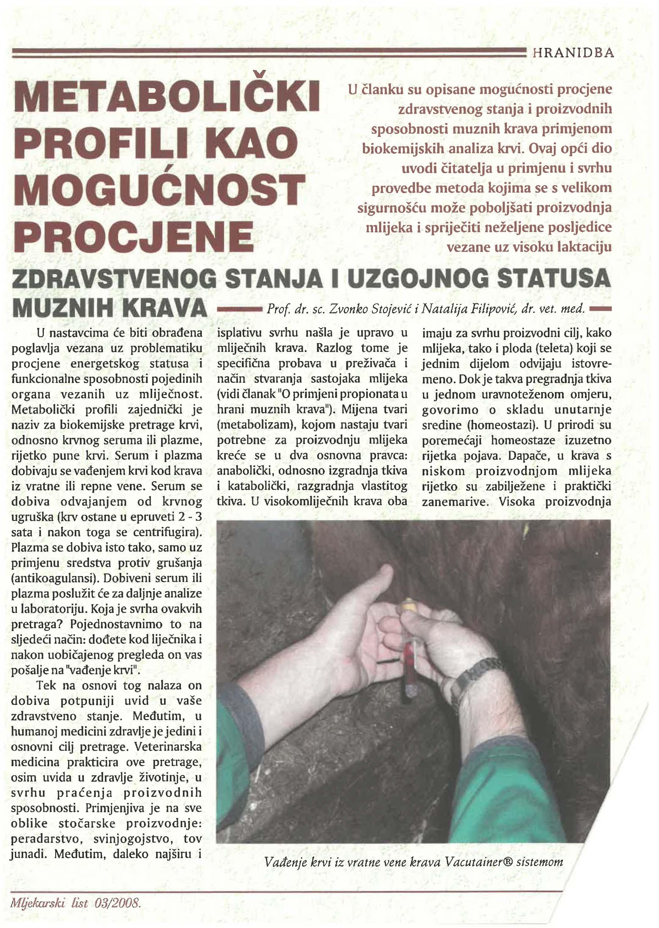 iskorištavanje proteina u hranidbi krava __________.. 6 profili kao procjene zdravstvenog stanja 9
