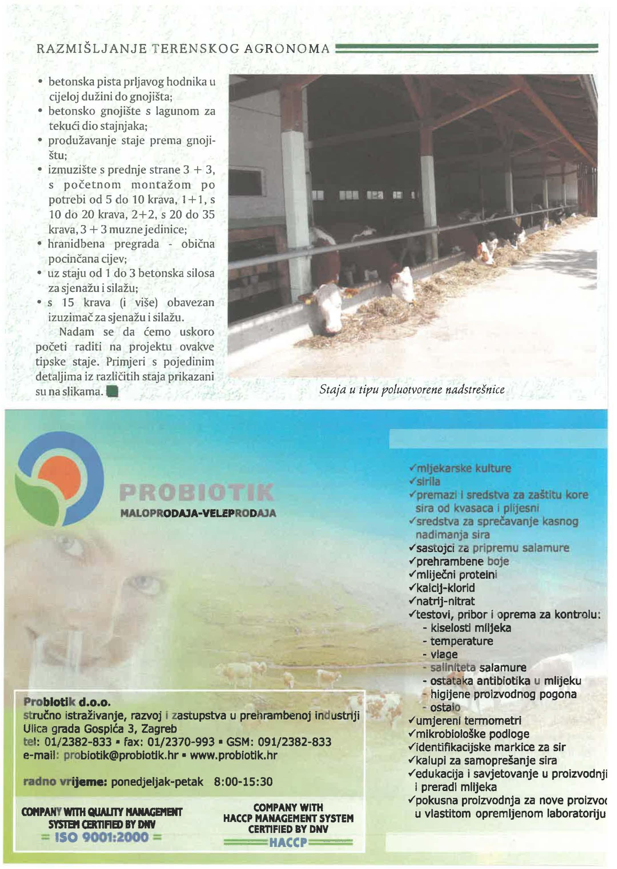 • suvremeno opremljenu farma po linijama: mužnja, hranjenje, izgnojavanje
