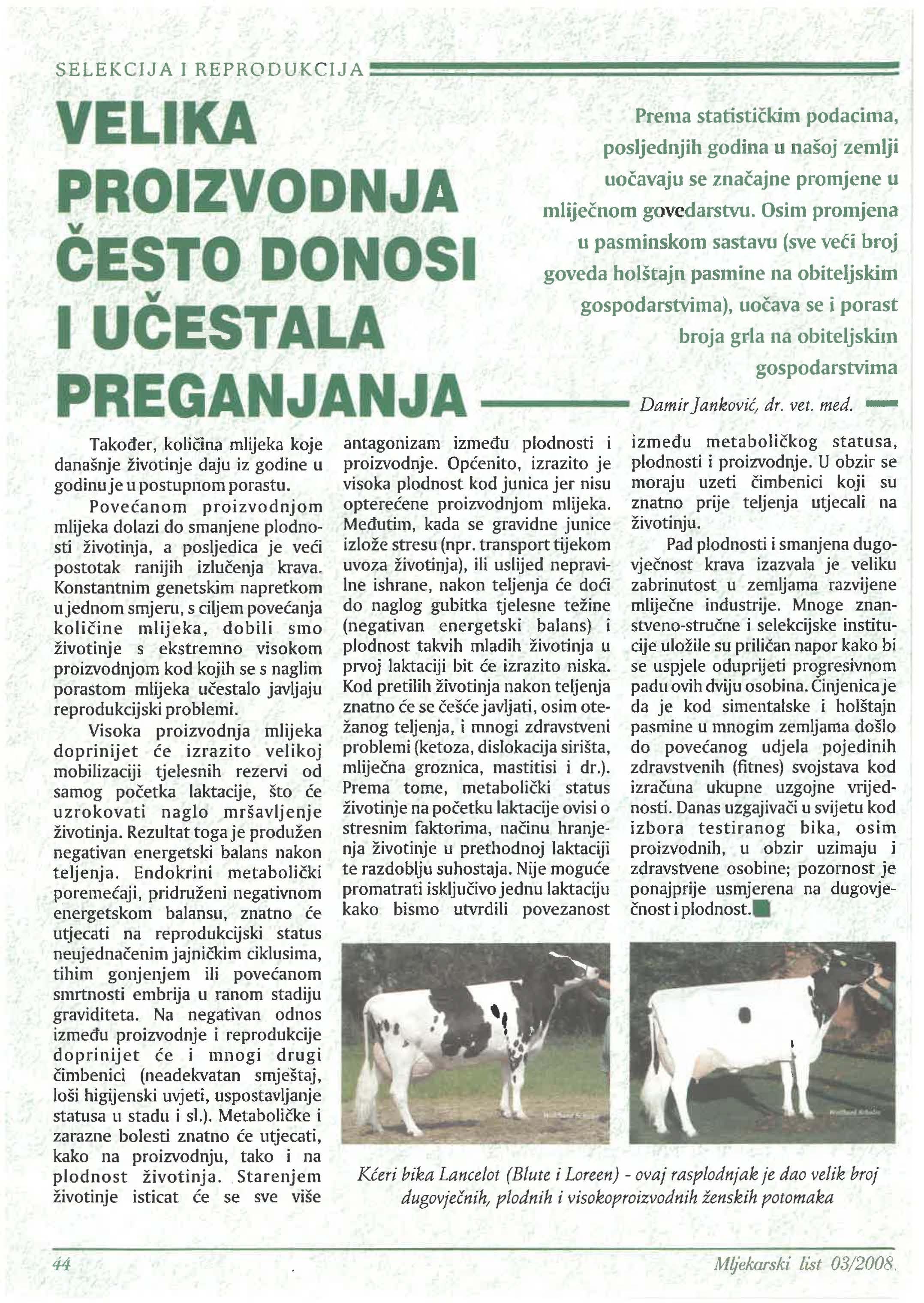 • vlastitom proizvodnjom junica osigurali smo stabilnost proizvodnje mlijeka