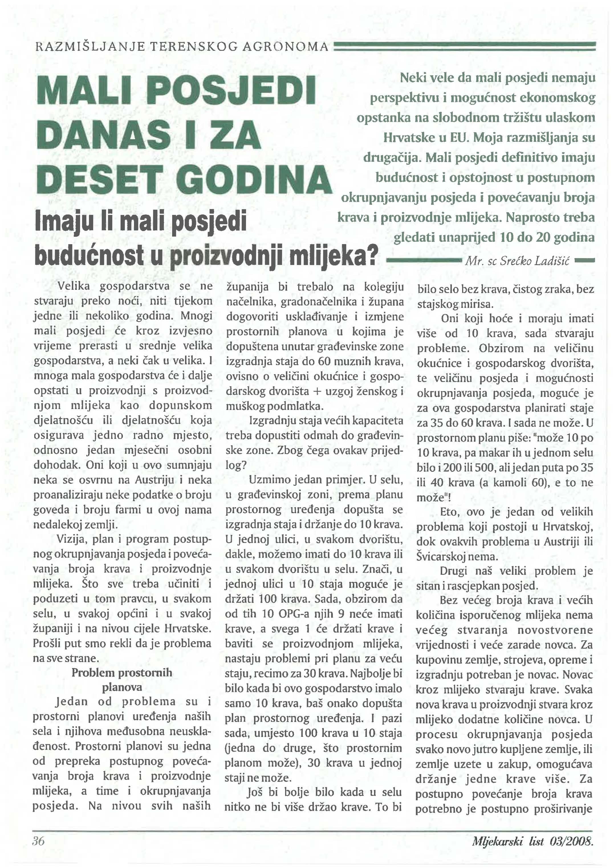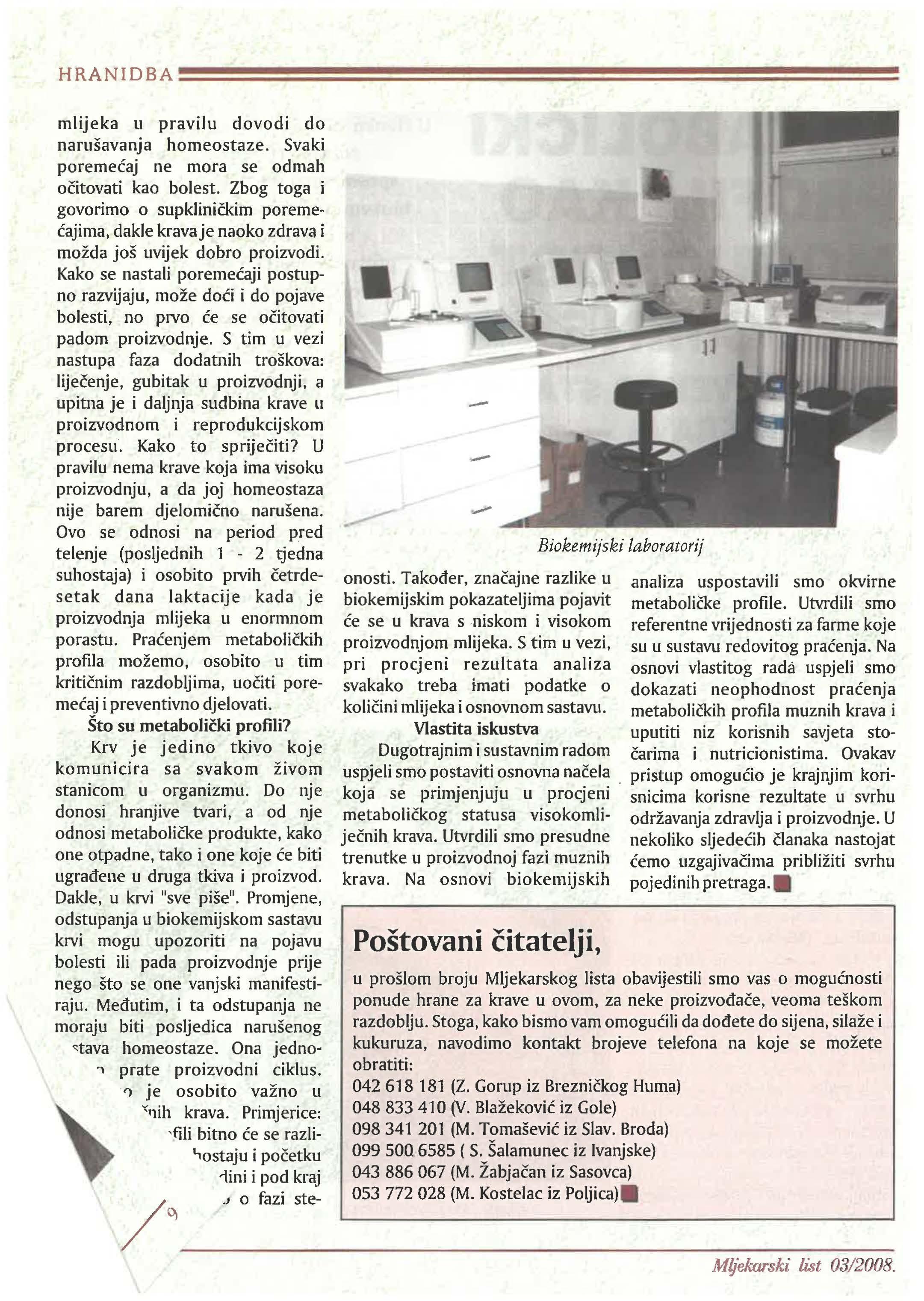 Obzirom na prošlogodišnju sušu koja je pogodila pojedine dijelove Hrvatske, sve je više mlijeka zainteresirano za kupnju/prodaju voluminozne krme za svoje muzne krave i ostale kategorije goveda. Molimo sve zainteresirane koji planiraju prodati. odnosno kupiti sijeno. sjenaŽll i silažu da se jave u Uredništvo Mljekarskog lista kako bi im olakšali tu Dodatne informacije na str. 1O. Naš broj telefonaje: 014833349.