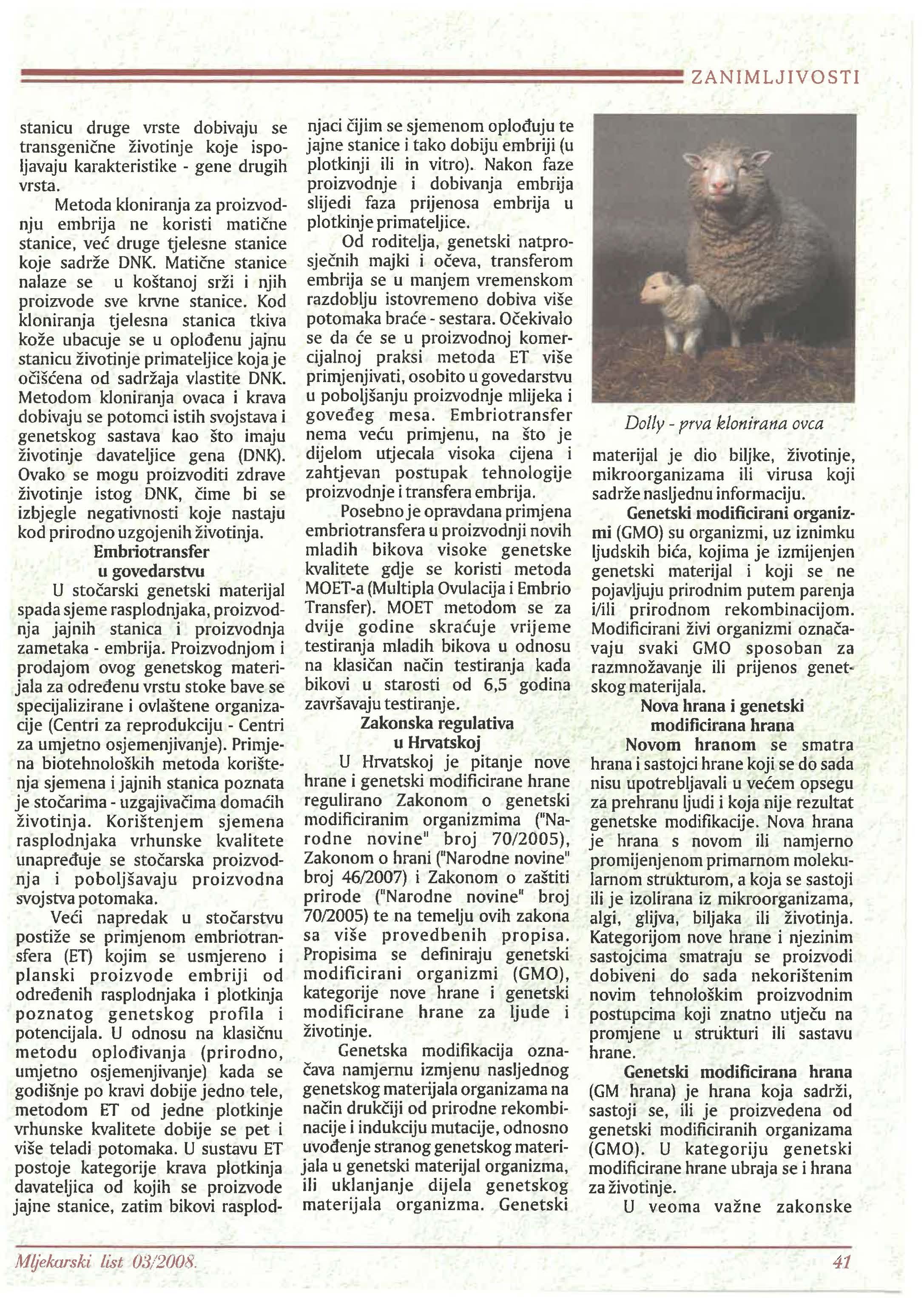 Proizvodnja mlijeka i mesa genetske modificiranih i kloniranih životinja __..,___ 40