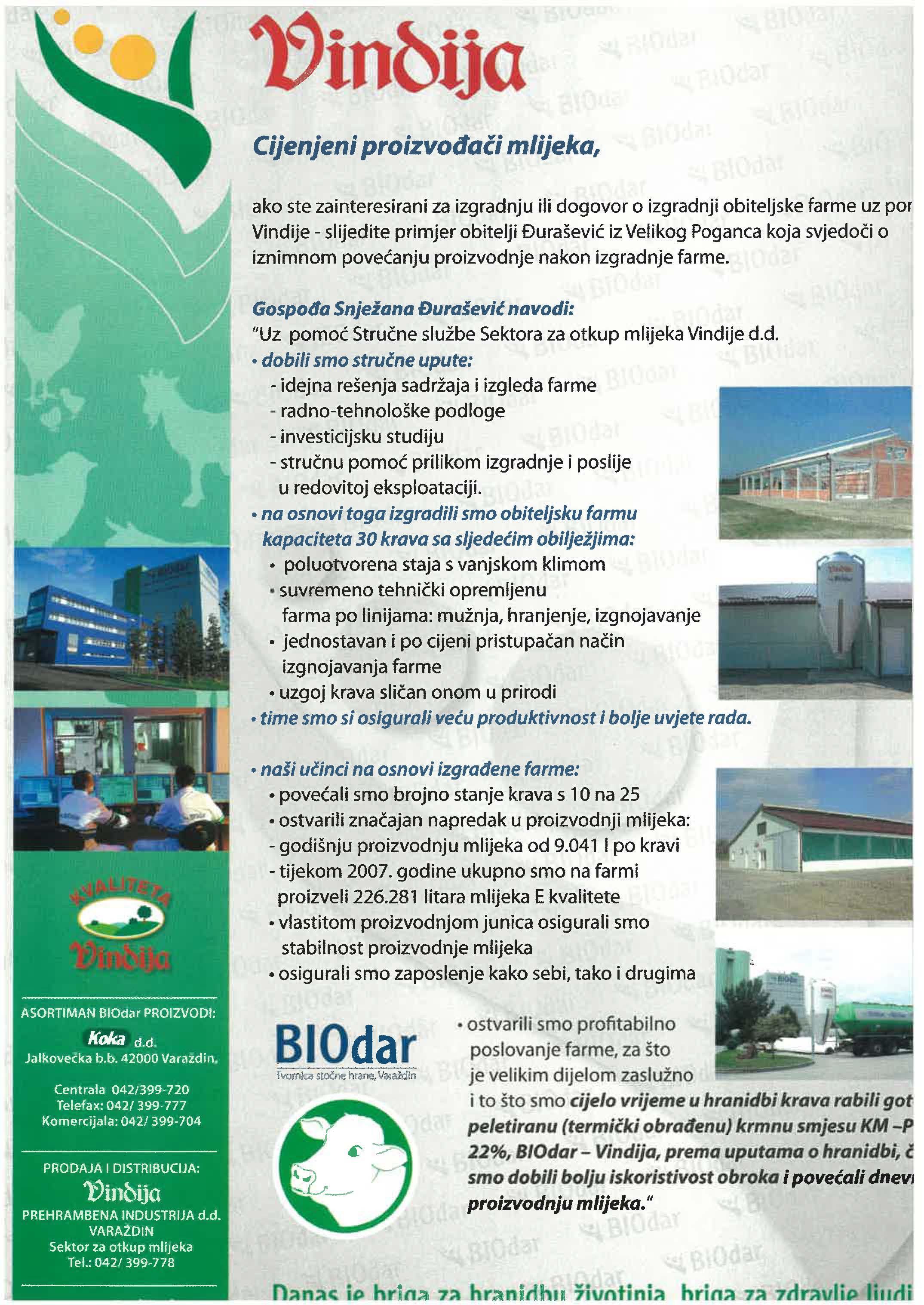 i to što smo cijelo vrijeme u hranidbi krava rabili got peletlranu krmnu smjesuKM -P 22%, BIOdar- Vindija,prema uputama o hranidbi, l smo dobili bolju iskoristivostobroka i dnevi proizvodnju mlijeka."
