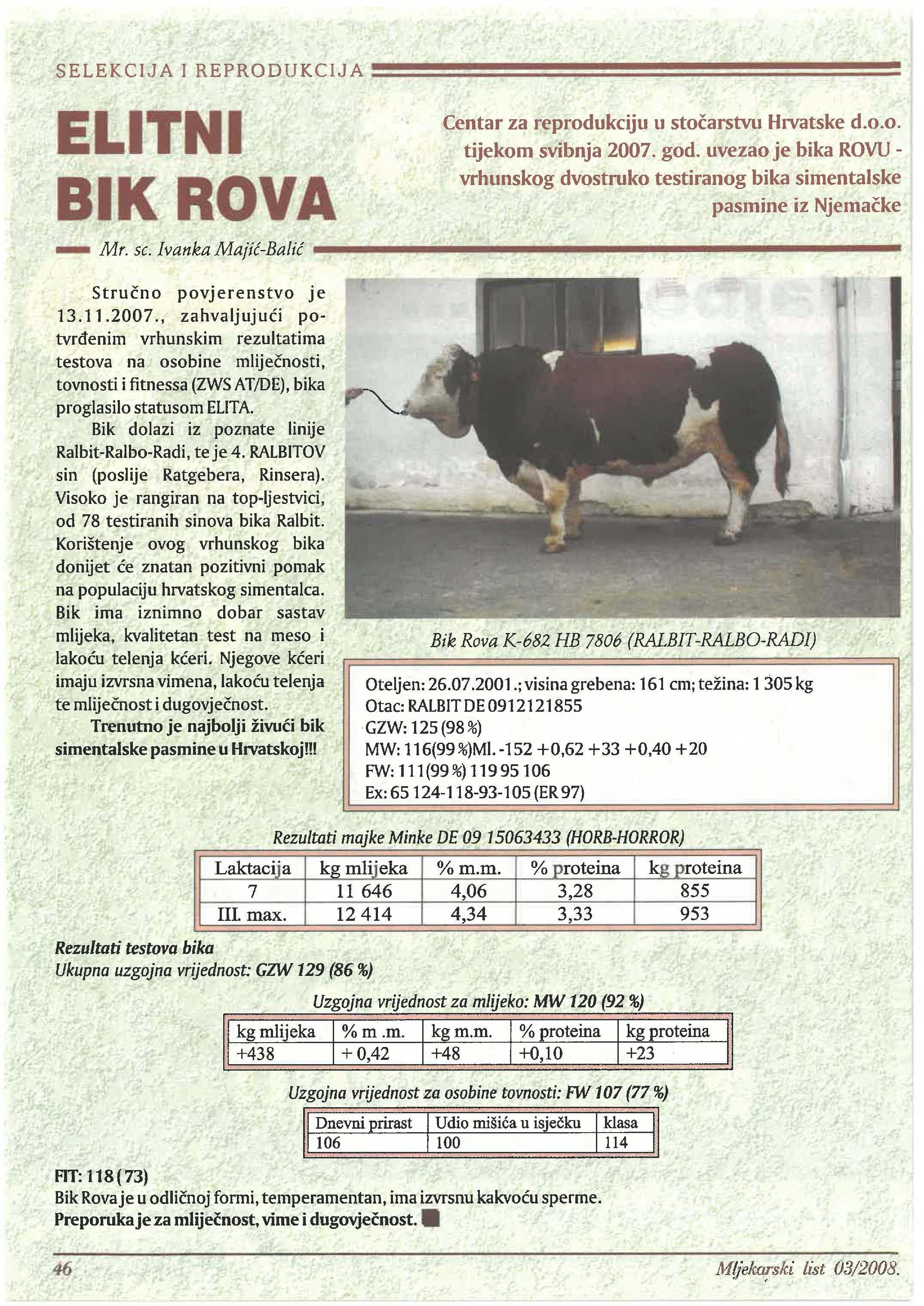 - tijekom 2007. godine ukupno smo na farmi proizveli 226.281 litara mlijeka E kvalitete