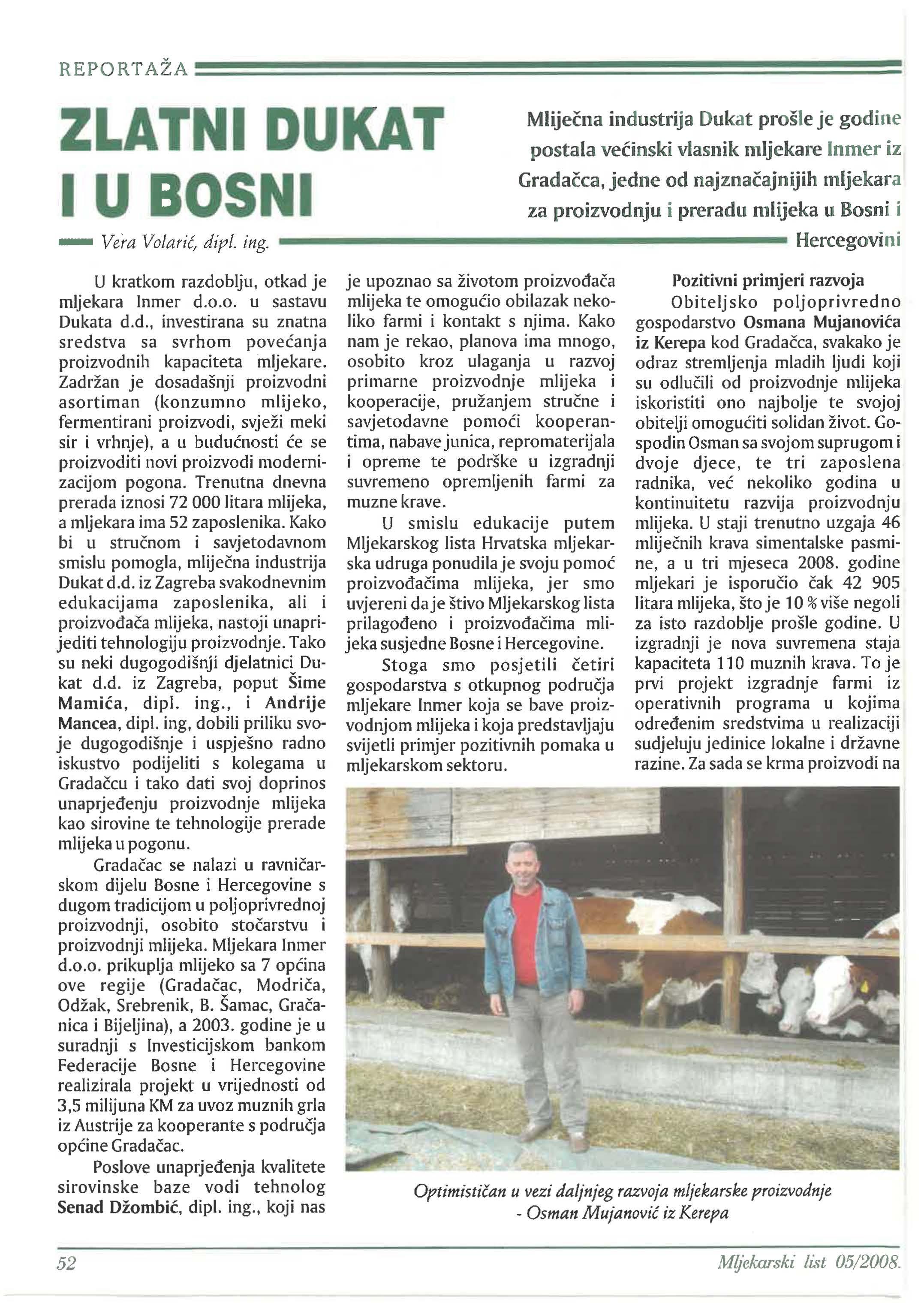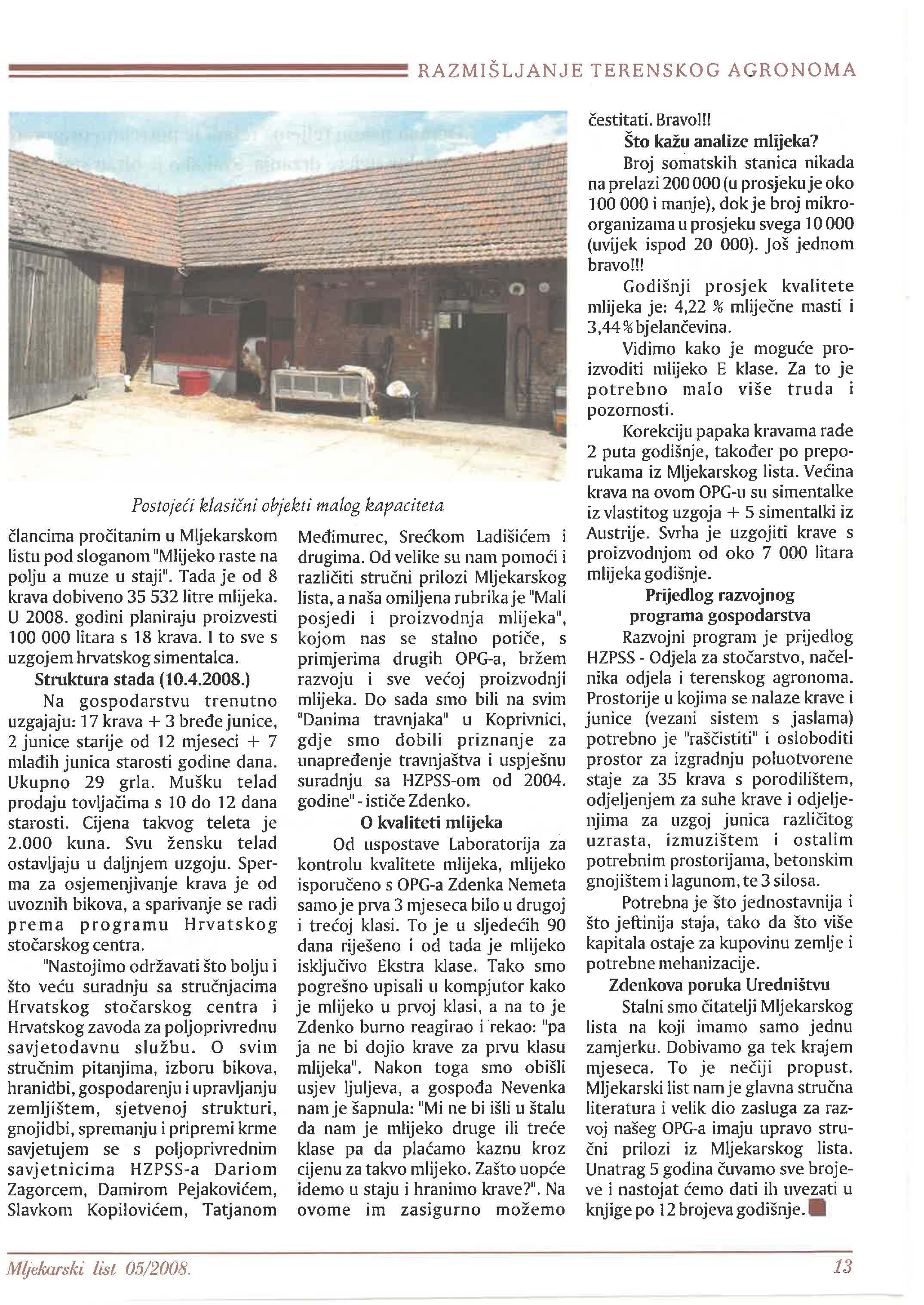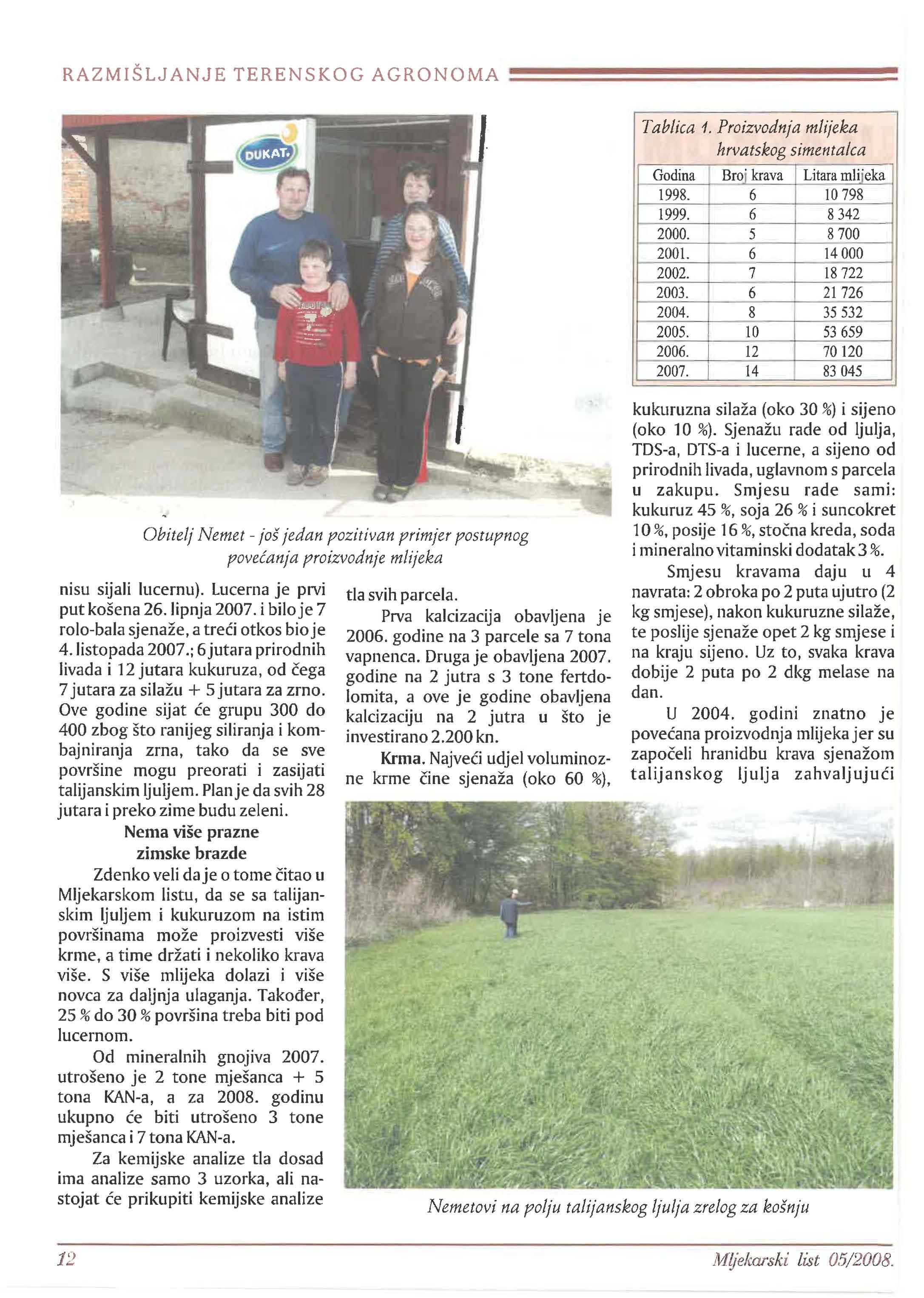 - tijekom 2007. godine ukupno smo na farmi proizveli 226.281 litara mlijeka E kvalitete
