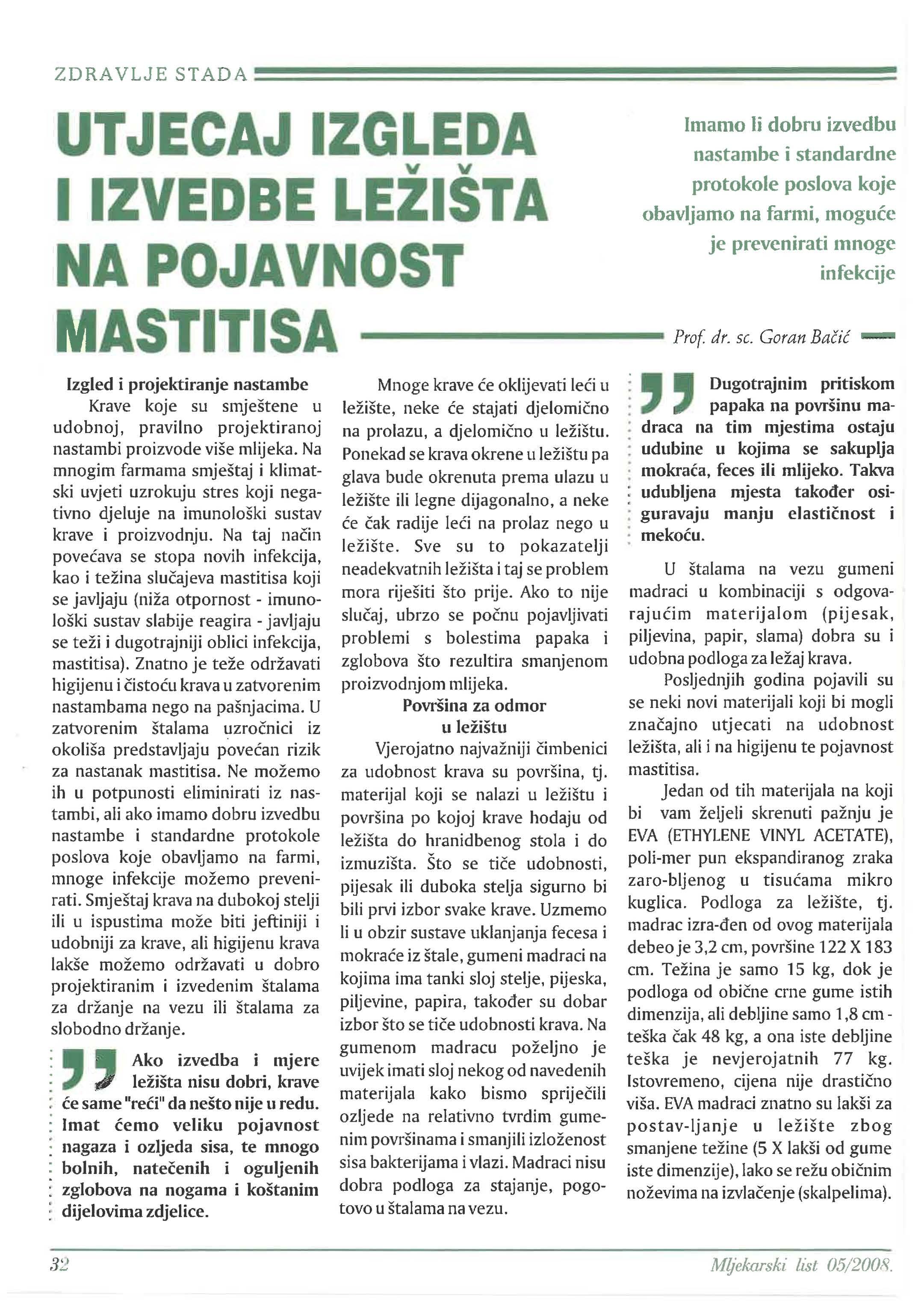 Utjecaj izgleda i izvedbe ležišta na pojavnostmastitisa _____________ 32 Higijena i držanje muznih krava ______ 35