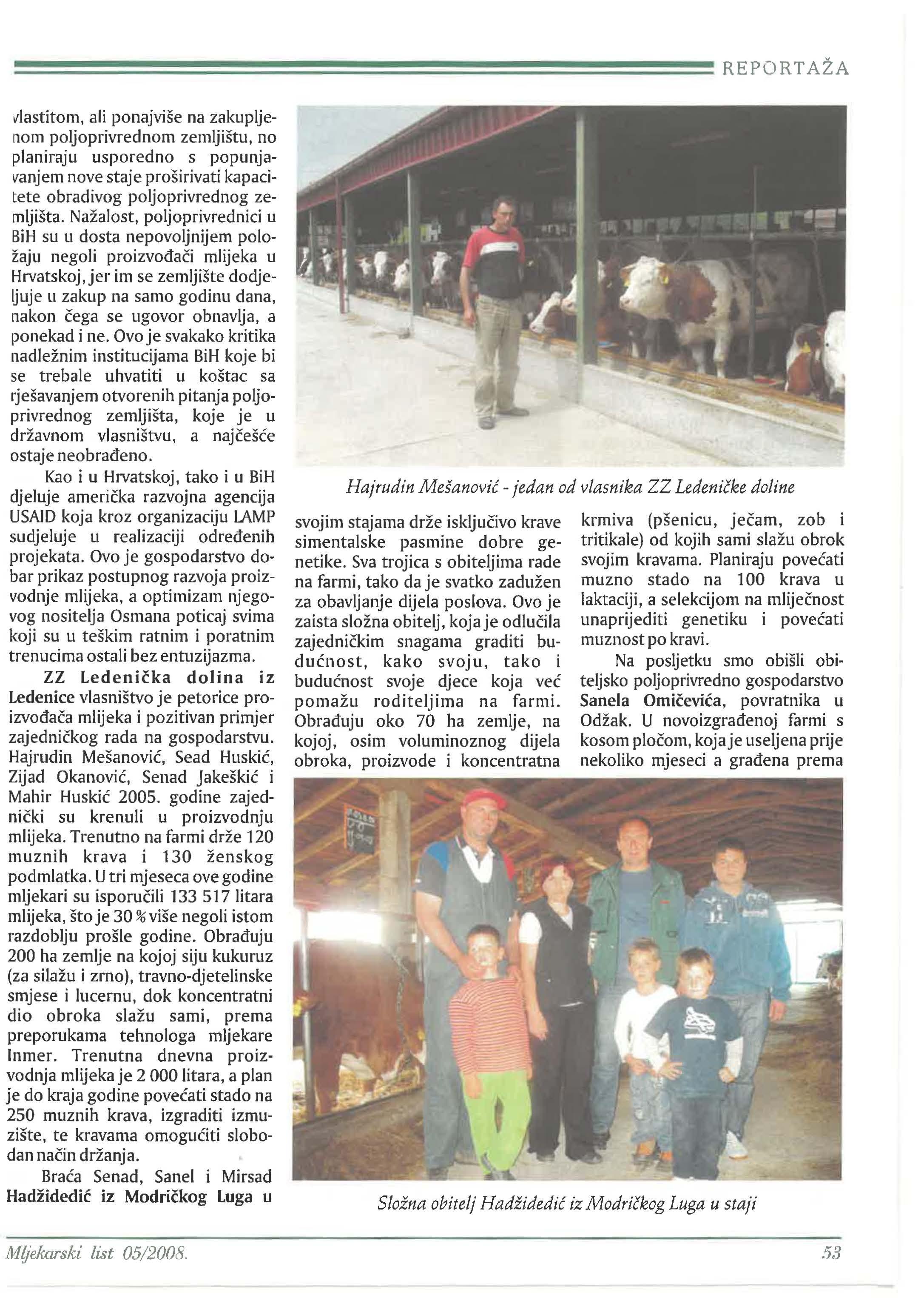 • vlastitom proizvodnjom junica osigurali smo stabilnost proizvodnje mlijeka