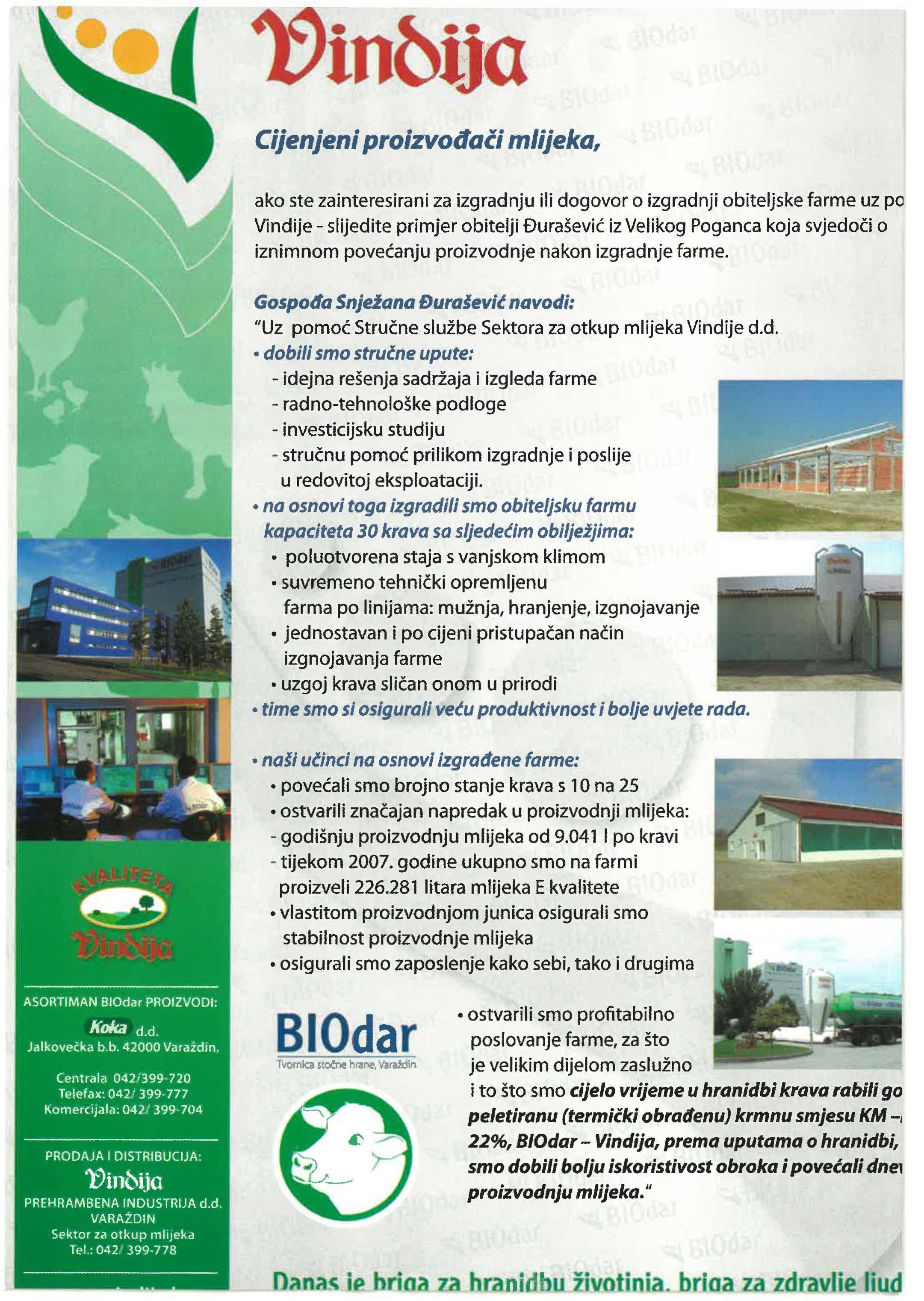 i to što smo cijelovrijeme u hranidbi krava rabili go peletiranu krmnu smjesuKM -1 22%, 8/0dar- Vindija,prema uputama o hranidbi, smo dobili bolju iskoristivostobroka i dne1 proizvodnjumlijeka."