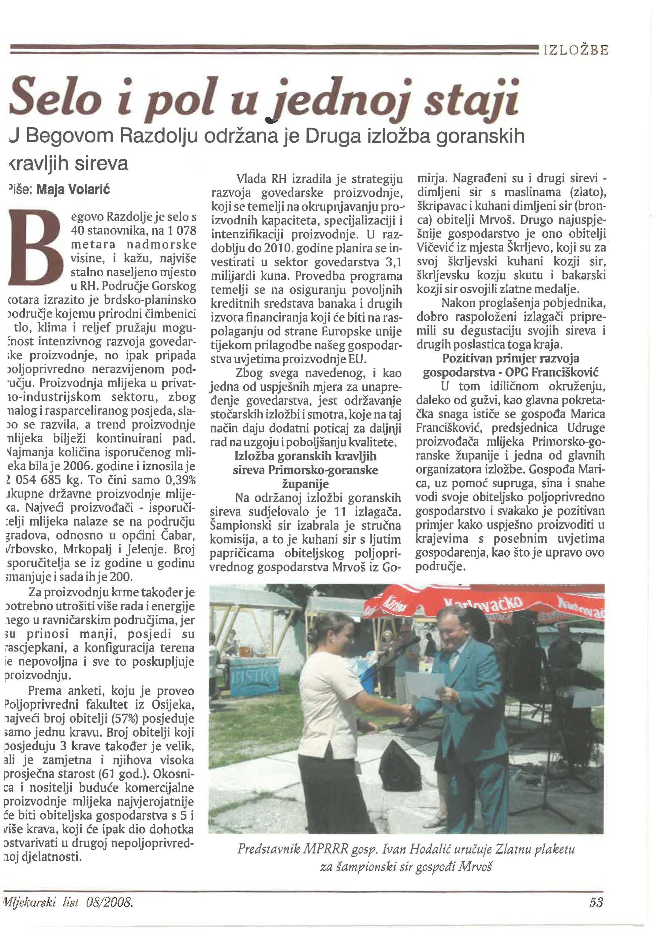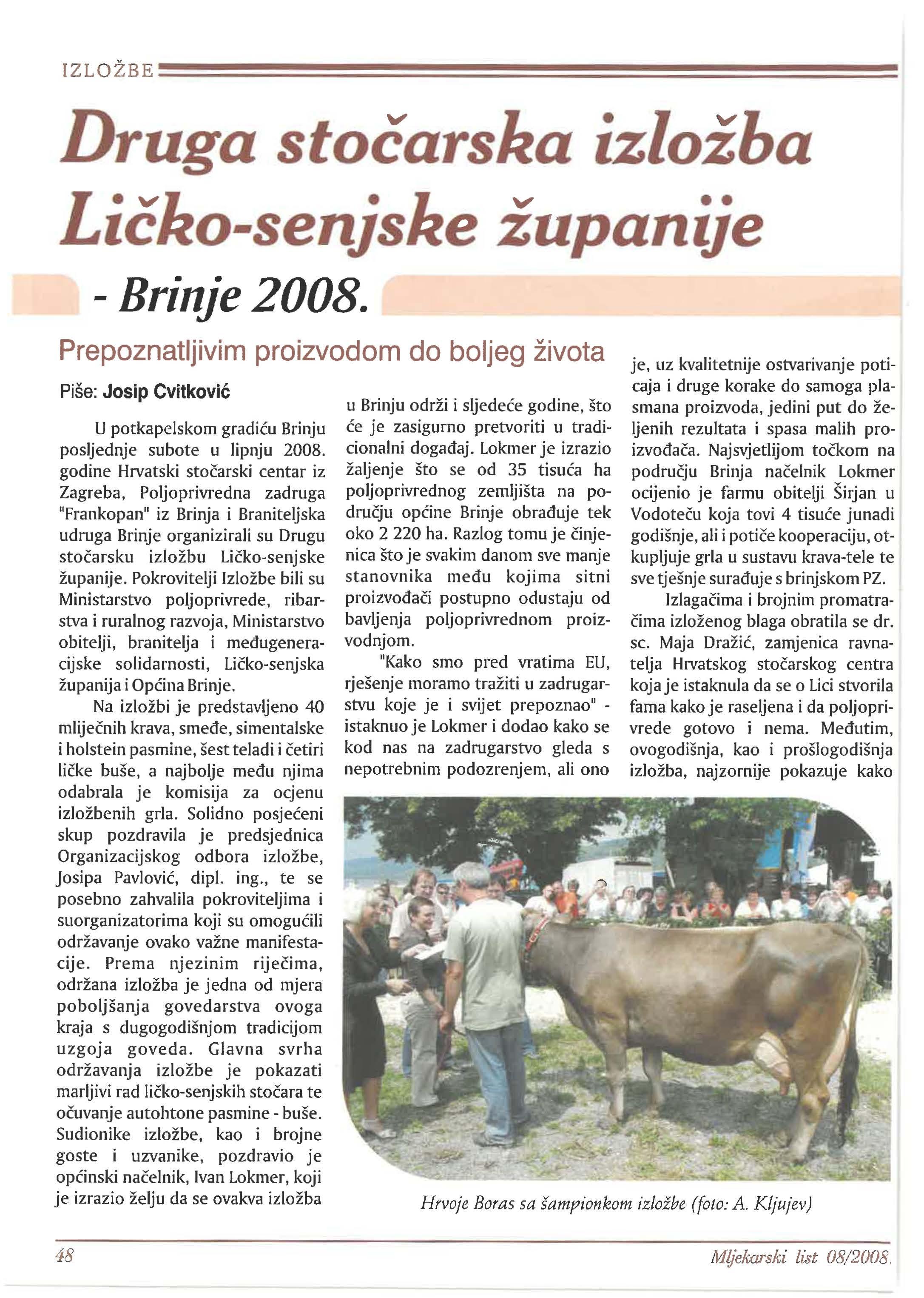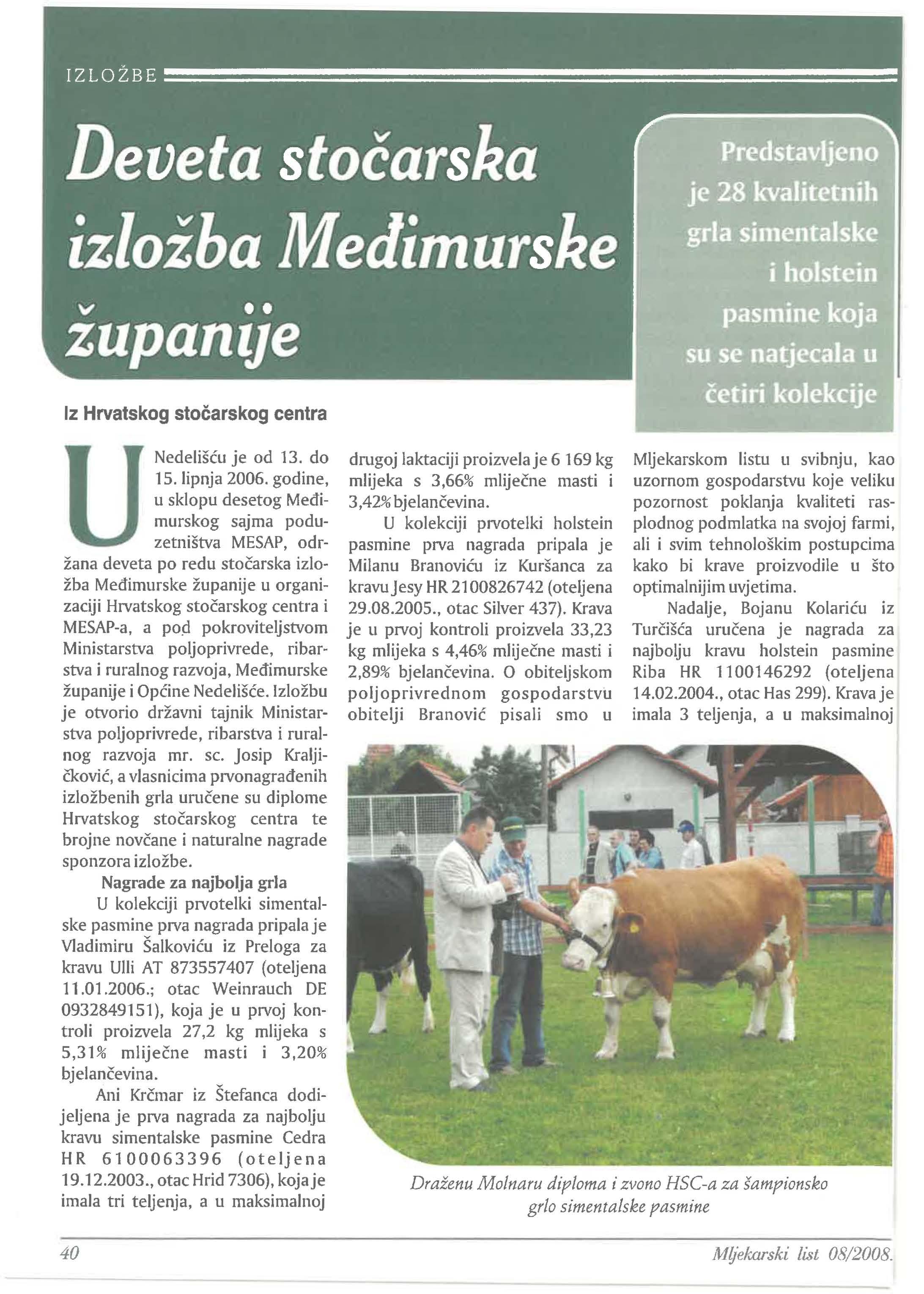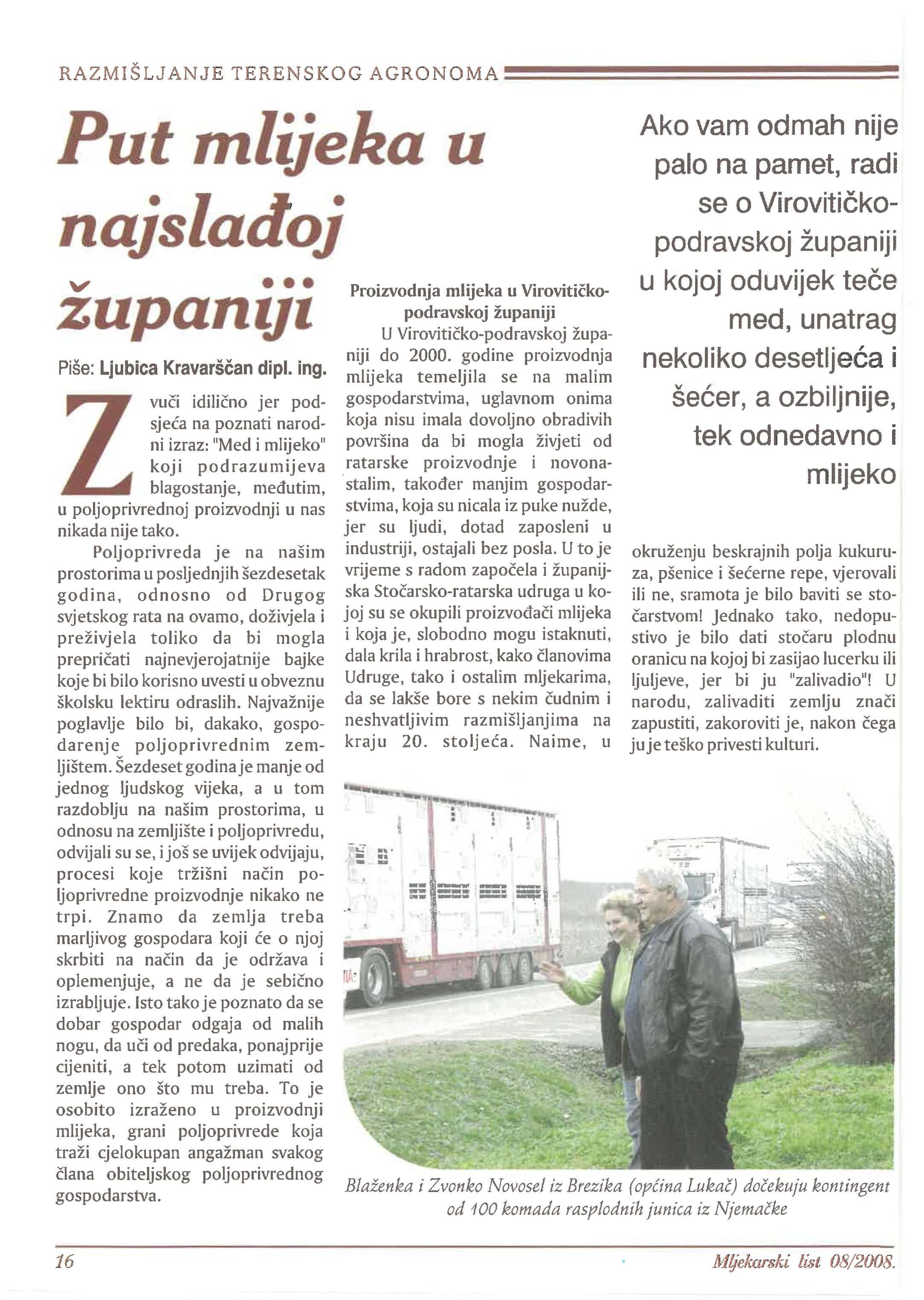 - tijekom 2007. godine ukupno smo na farmi proizveli 226.281 litara mlijeka E kvalitete