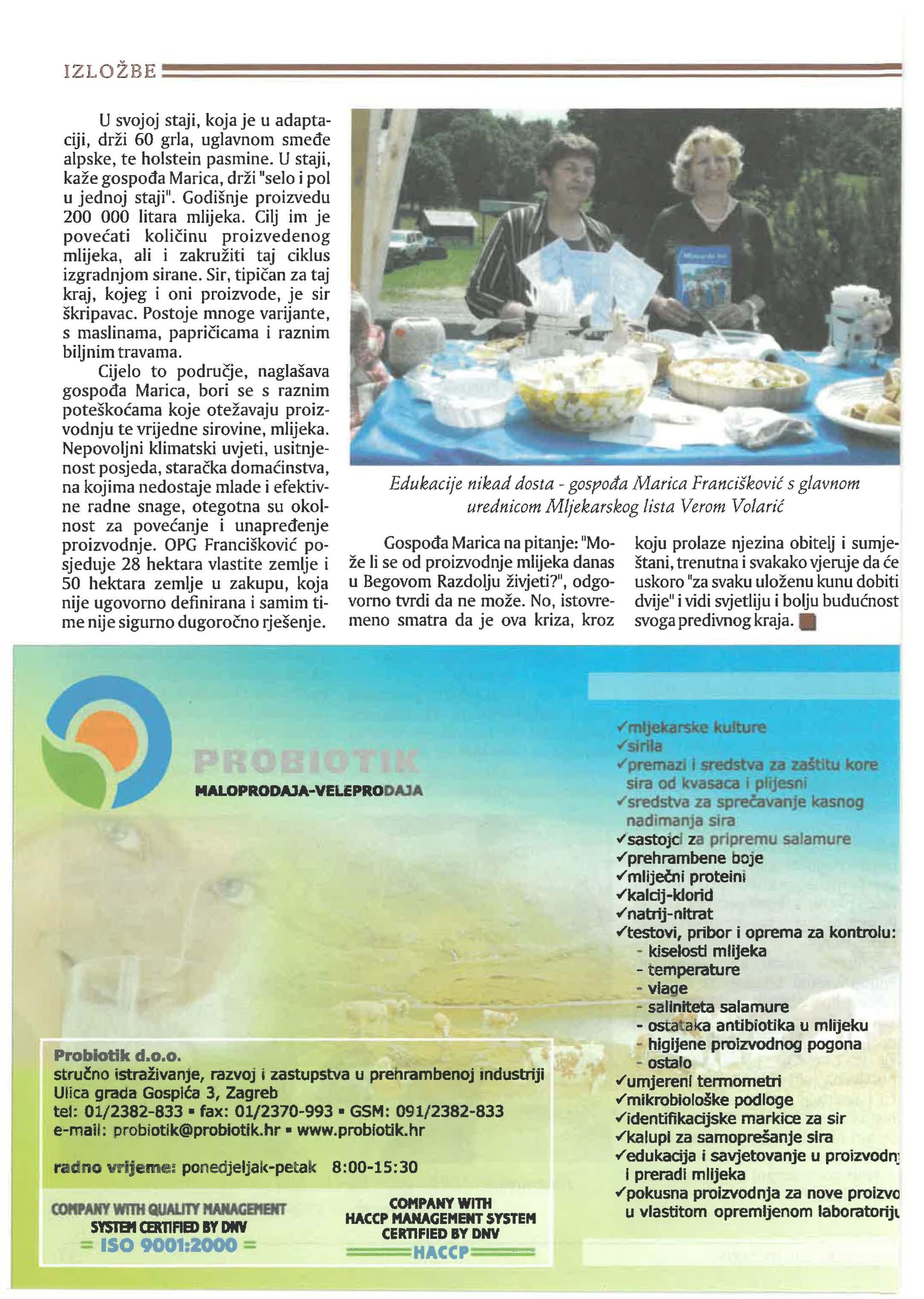 vreve, ali nikako manje vrijedno ii dostupno bilo kome tko· u svojirr mislima za nepreglednirr šumama i zelenim proplancima m kojima dan-danas, ne biste vjerovali pasu krave. sve to skupa se u jednom trenutku pojav kojeg nekome opisujemo: "Tamo ti je tako je lijepe da imaš kao da je vrijemE stalo prije sto godina". I tako, ope1 o polju, kravi i mlijekt ima sretan kraj, a to je svakakc proizvodnja kvalitetnog vrhunskoE