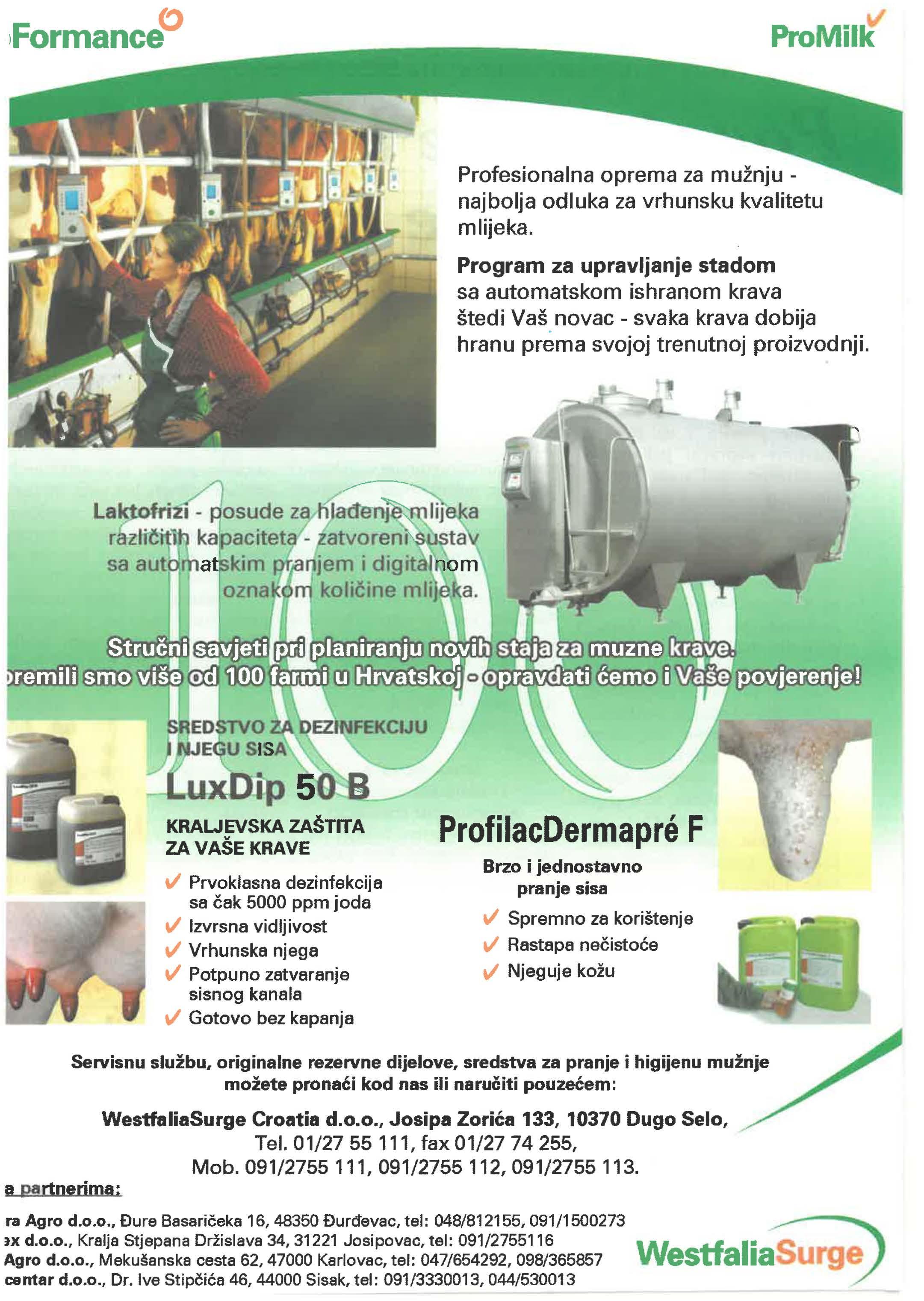 Bilo što da se propusti od 1avedenoga nosi od 1 do 1O kg nanje u vrhu laktacije, i naravno :roz cijelu laktaciju.