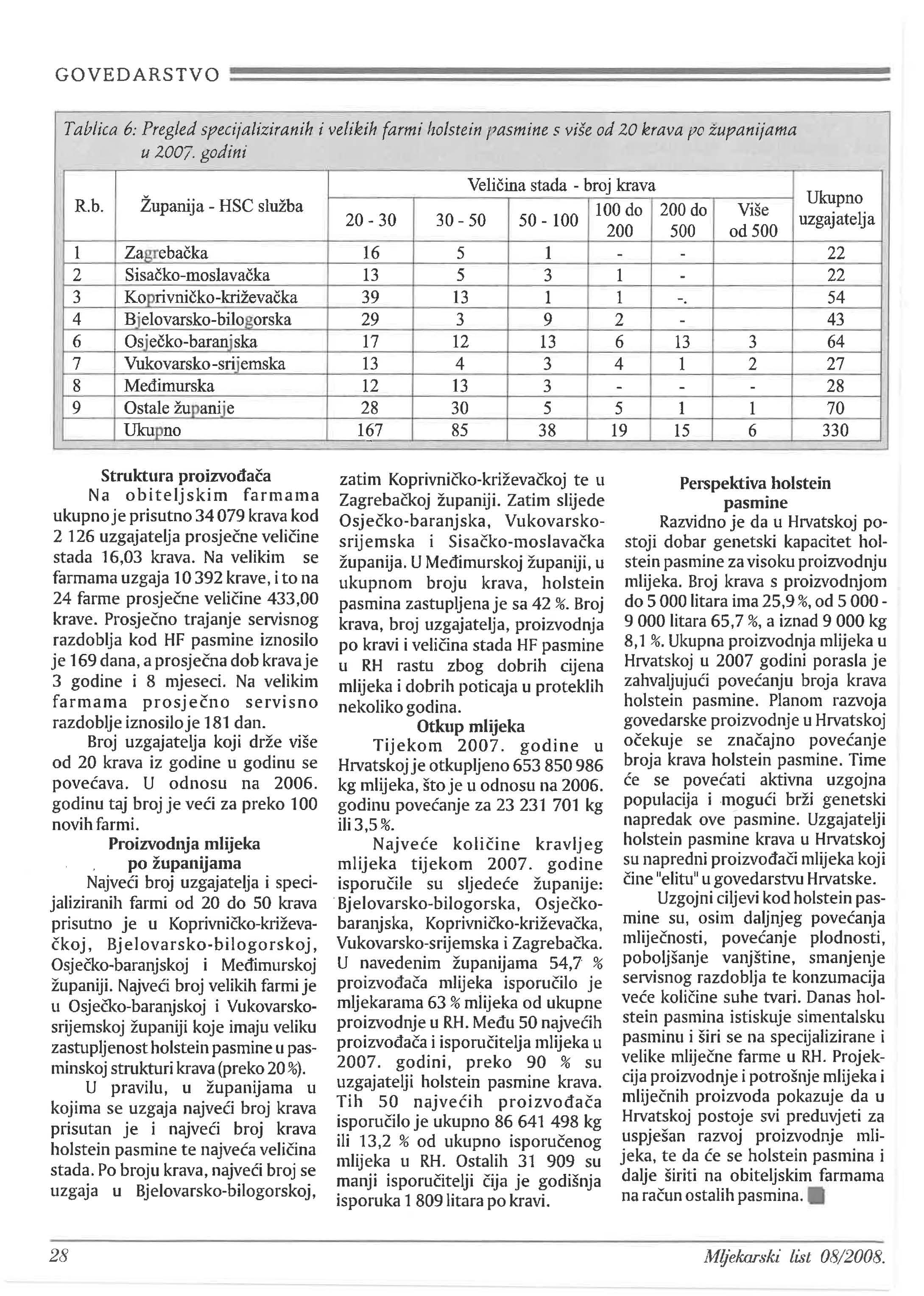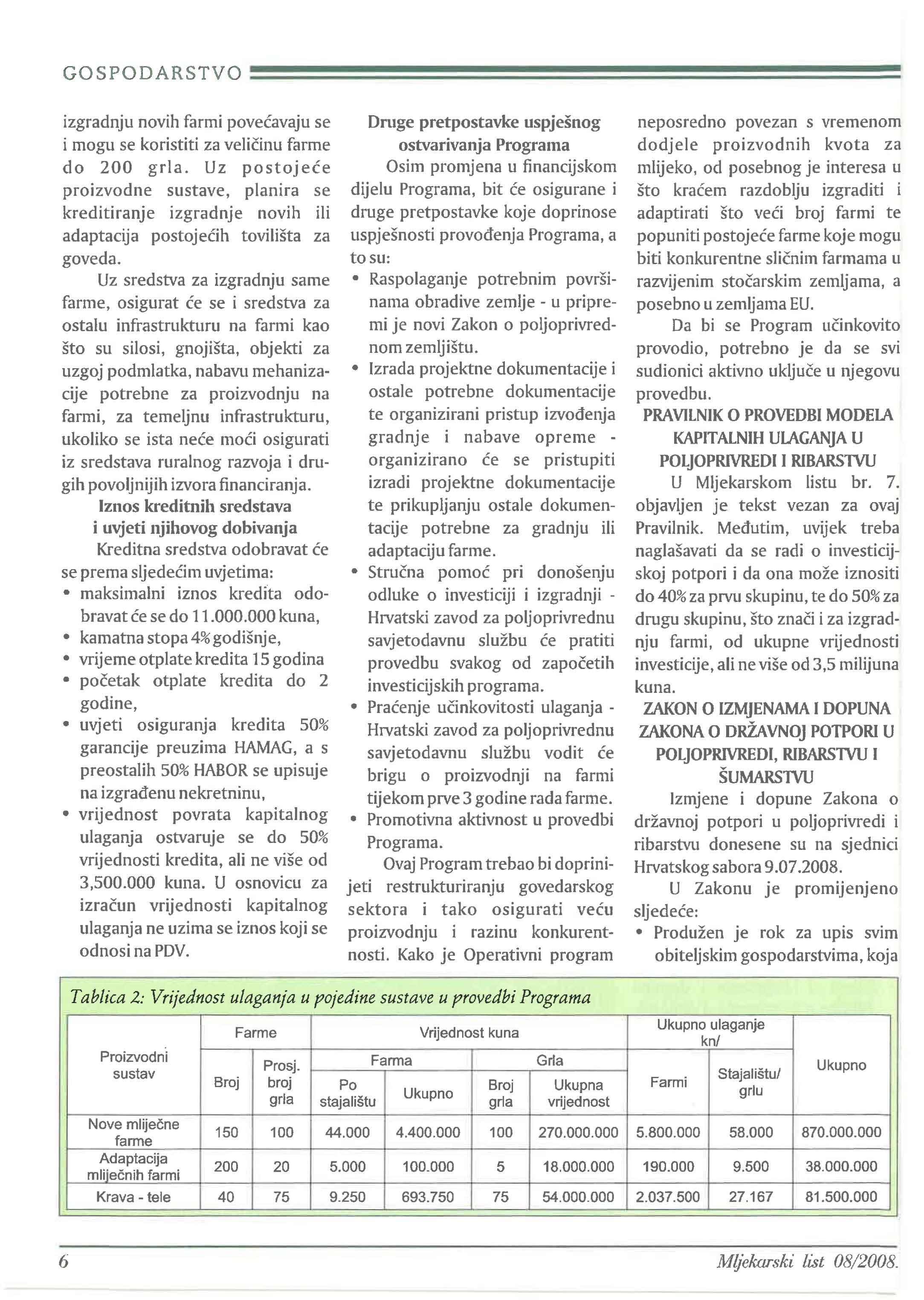 kada u odnosu na 1991. godinu, farme s 1Ogrla (a imamo ih svega 4,8 ili 17,8% ukupnog broja moraju proizvodnju za 62%, odnosno imati 4 649 litara otkupljenog mlijeka po kravi.
