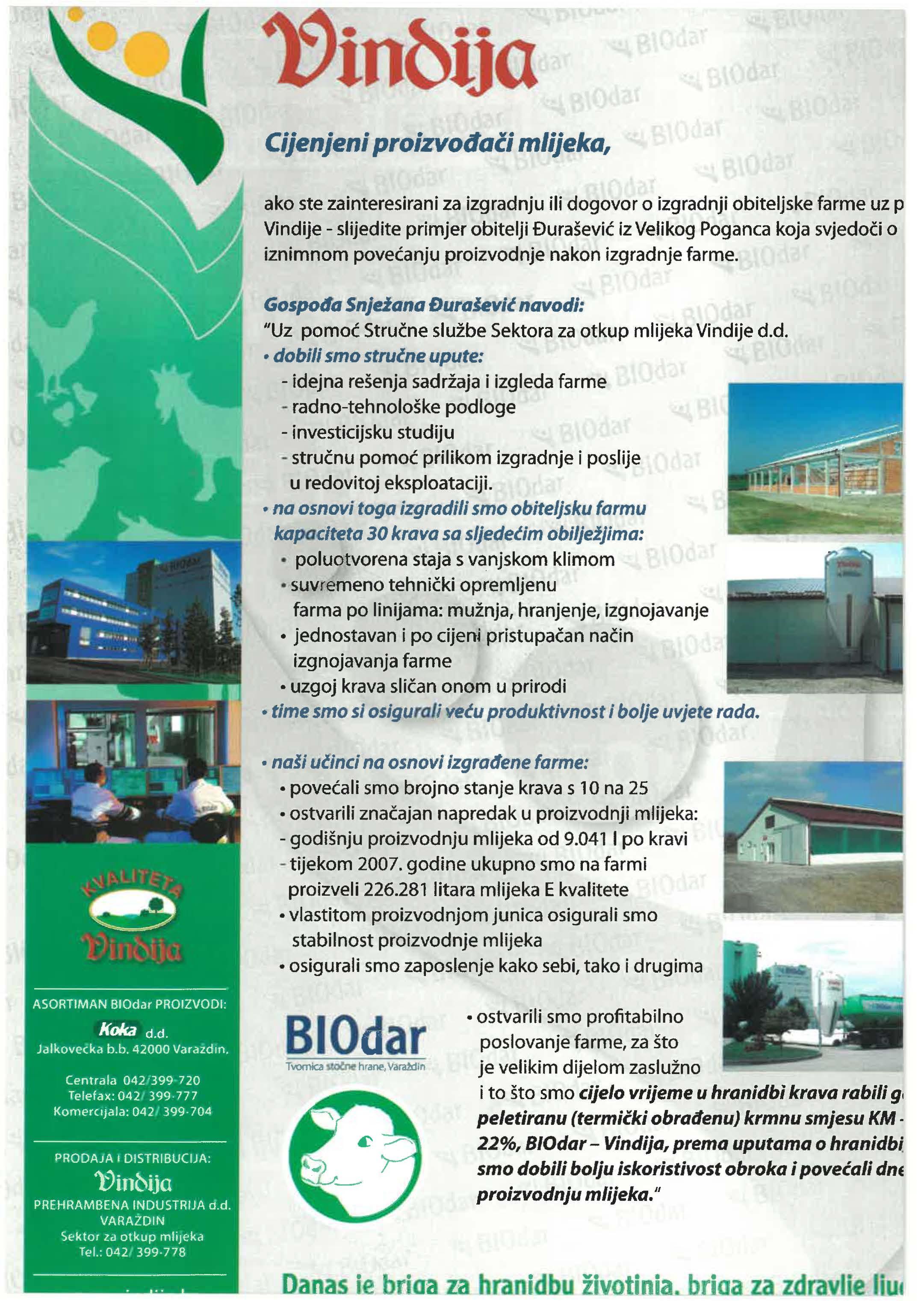 • ostvarili smo profitabilna poslovanje farme, za što je velikim dijelom zaslužno i to što smo cijelo vrijeme u hranidbi krava rabili g, peletiranu krmnu smjesuKM22%, 8/0dar- Vindija,prema uputama o hranidbi smo dobili bolju iskoristivostobroka i dm proizvodnju mlijeka."