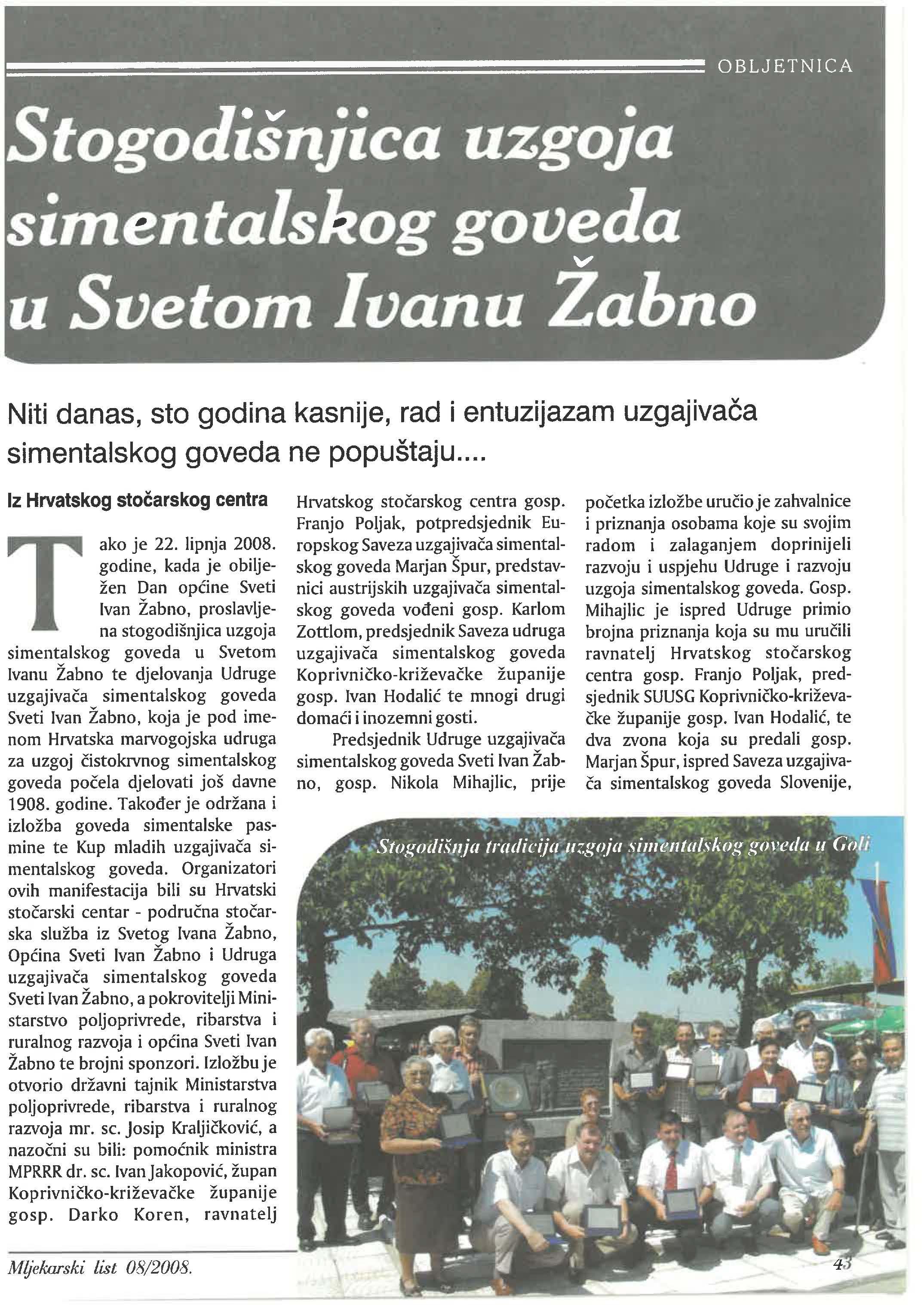 Stogodišnjica uz&oja simentalskog goveda u Svetom Ivanu Zabno ___ _