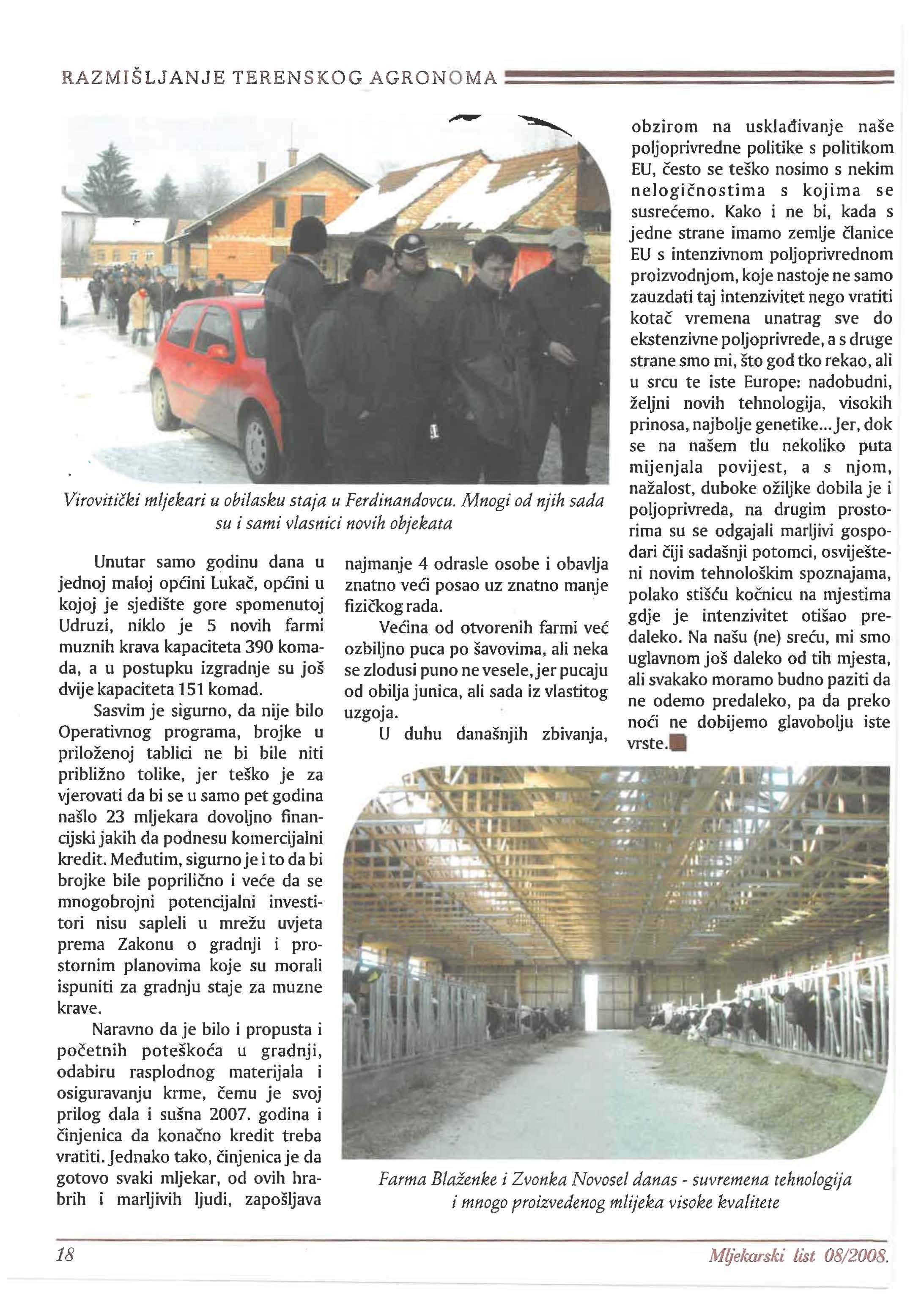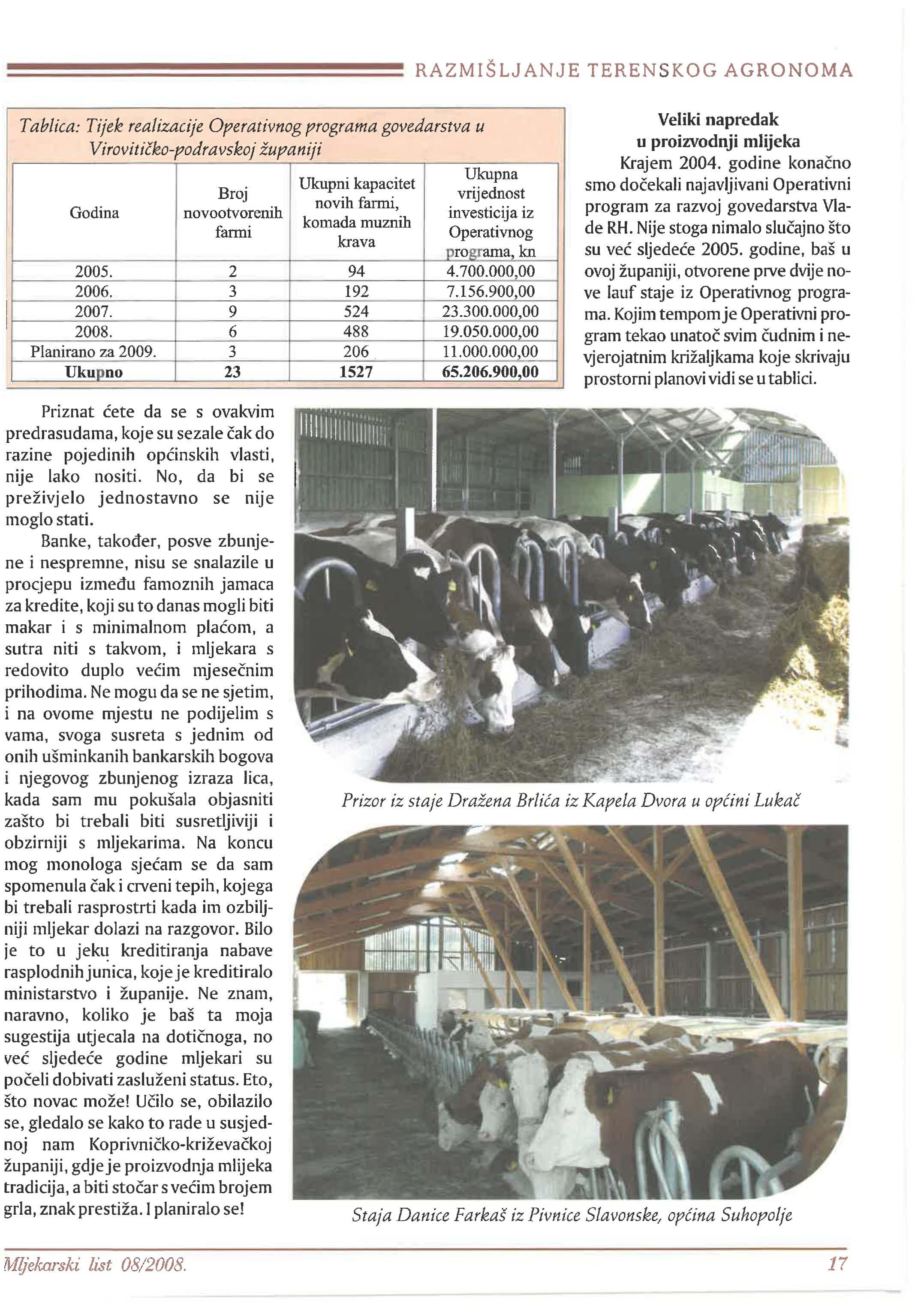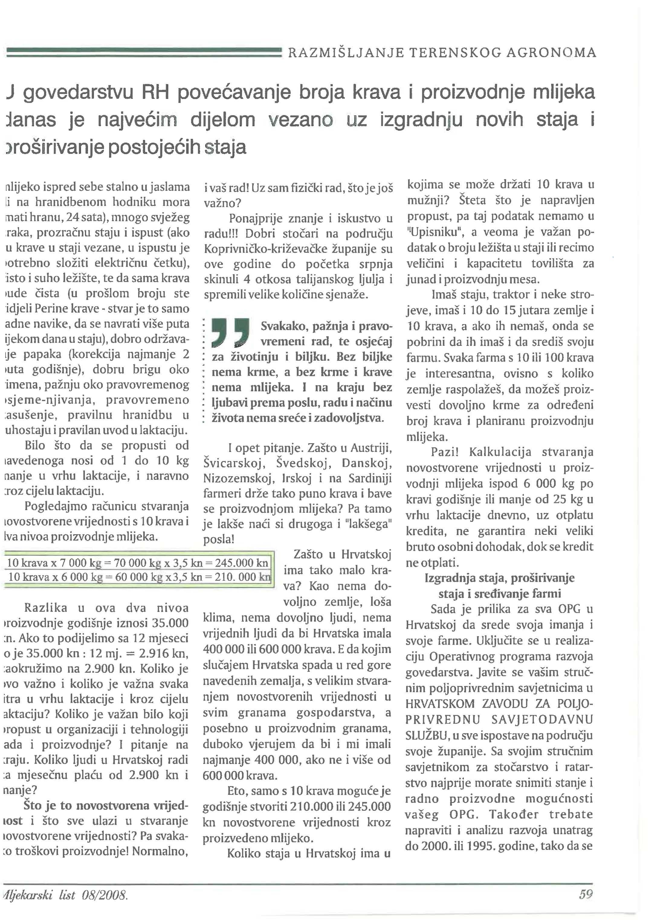 Imaš staju, traktor i neke strojeve, imaš i 1O do 15 jutara zemlje i 10 krava, a ako ih nemaš, onda se pobrini da ih imaš i da središ svoju farmu. Svaka farma s 1O ili 100 krava je interesantna, ovisno s koliko zemlje raspolažeš, da možeš proizvesti dovoljno krme za broj krava i planiranu proizvodnju mlijeka.