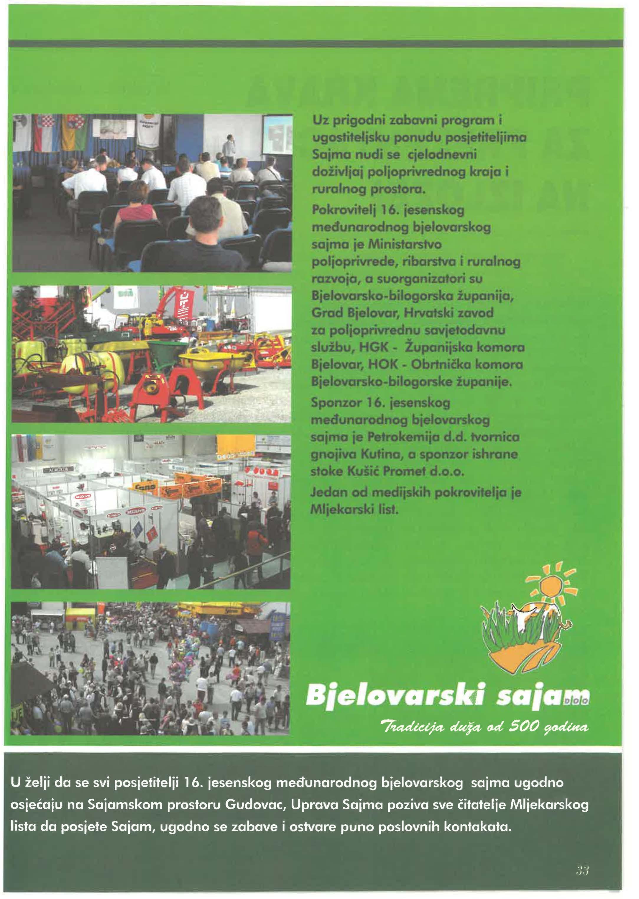 POSJETITENAS od 5.-7. IX. 2008. na jesenskompoljoprivrednomsajmu u Gudovcu- u bliziniglavnogulaza KREDITI do 10 odina