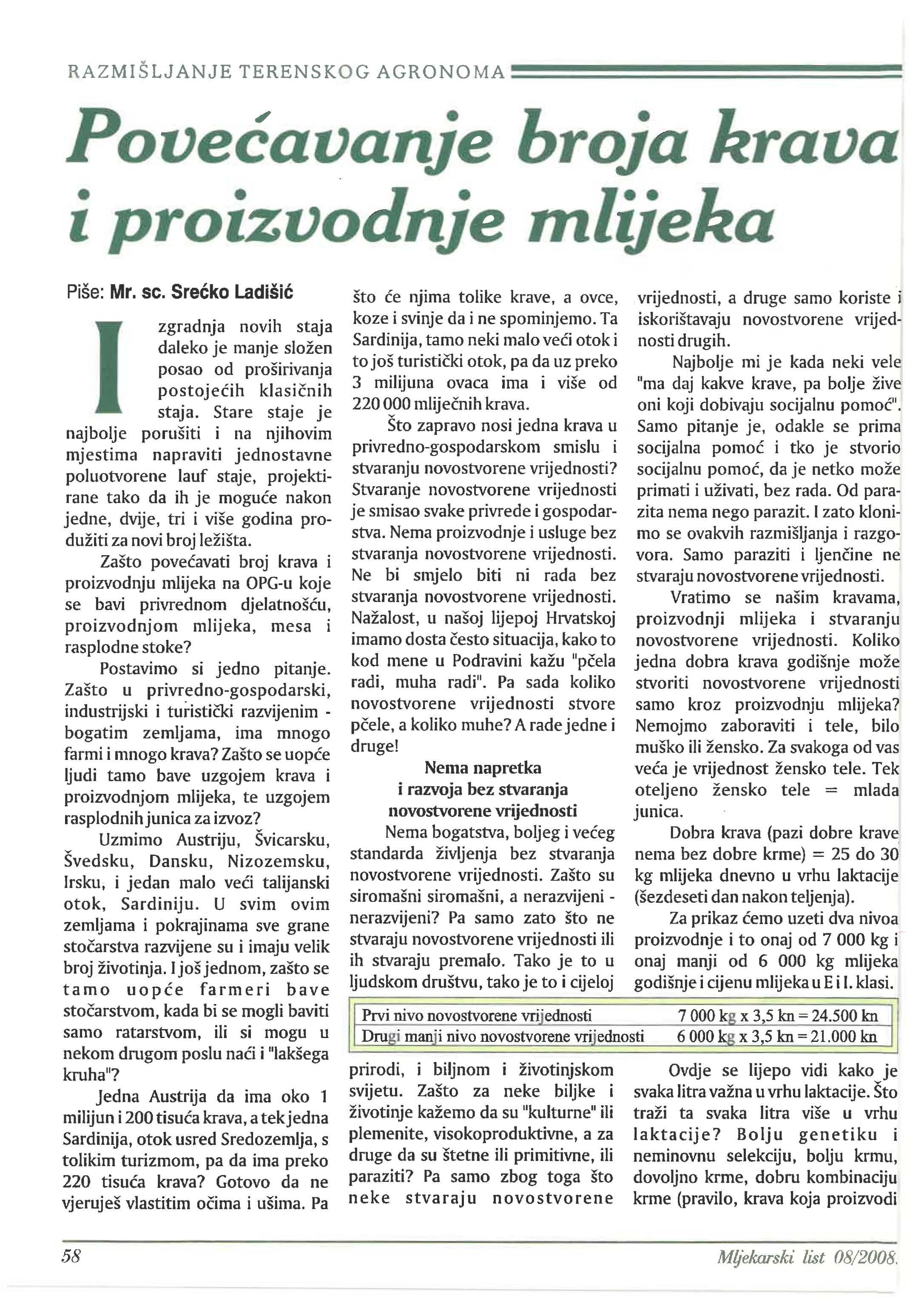voljno zemlje, loša klima, nema dovoljno ljudi, nema vrijednih ljudi da bi Hrvatska imala 400 000 ili 600 000 krava. E da kojim Hrvatska spada u red gore navedenih zemalja, s velikim stvaranjem novostvorenih vrijednosti u svim granama gospodarstva, a posebno u proizvodnim granama, duboko vjerujem da bi i mi imali najmanje 400 000, ako ne i više od 600 000 krava.