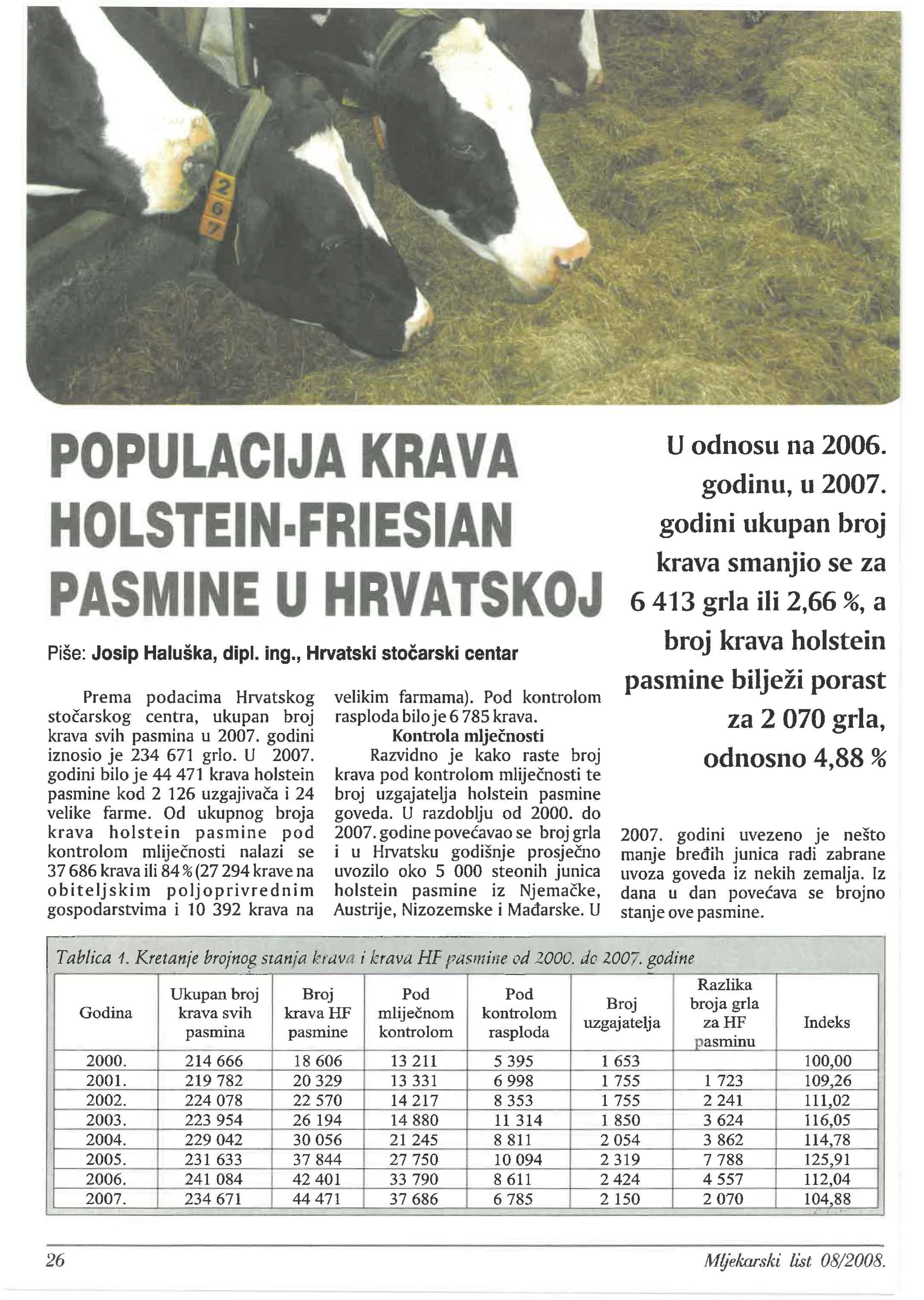 Populacija krava holstein-friesian pasmine u Hrvatskoj __