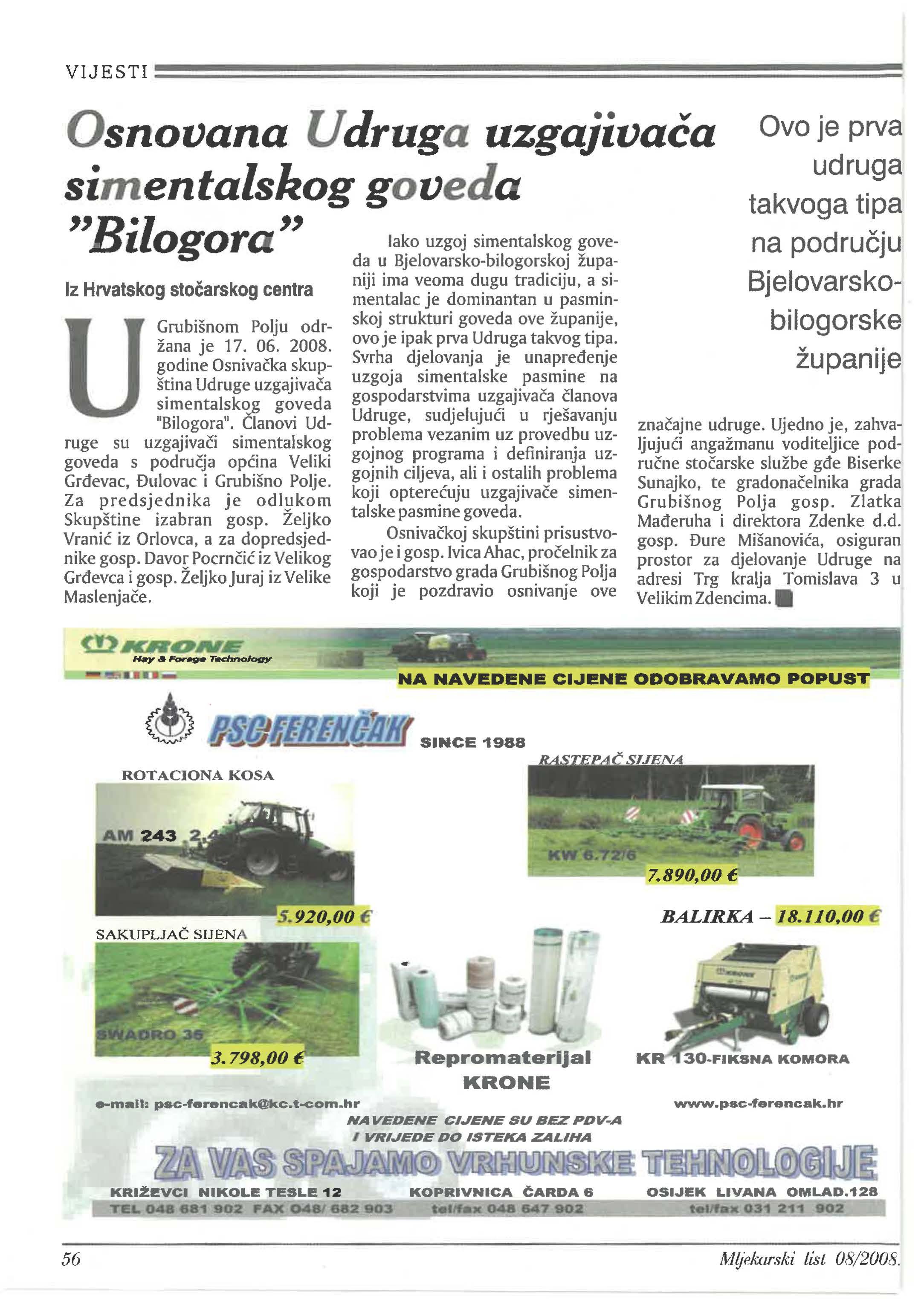 Osnovana Udruga simentalskog goveda "Bilogora"